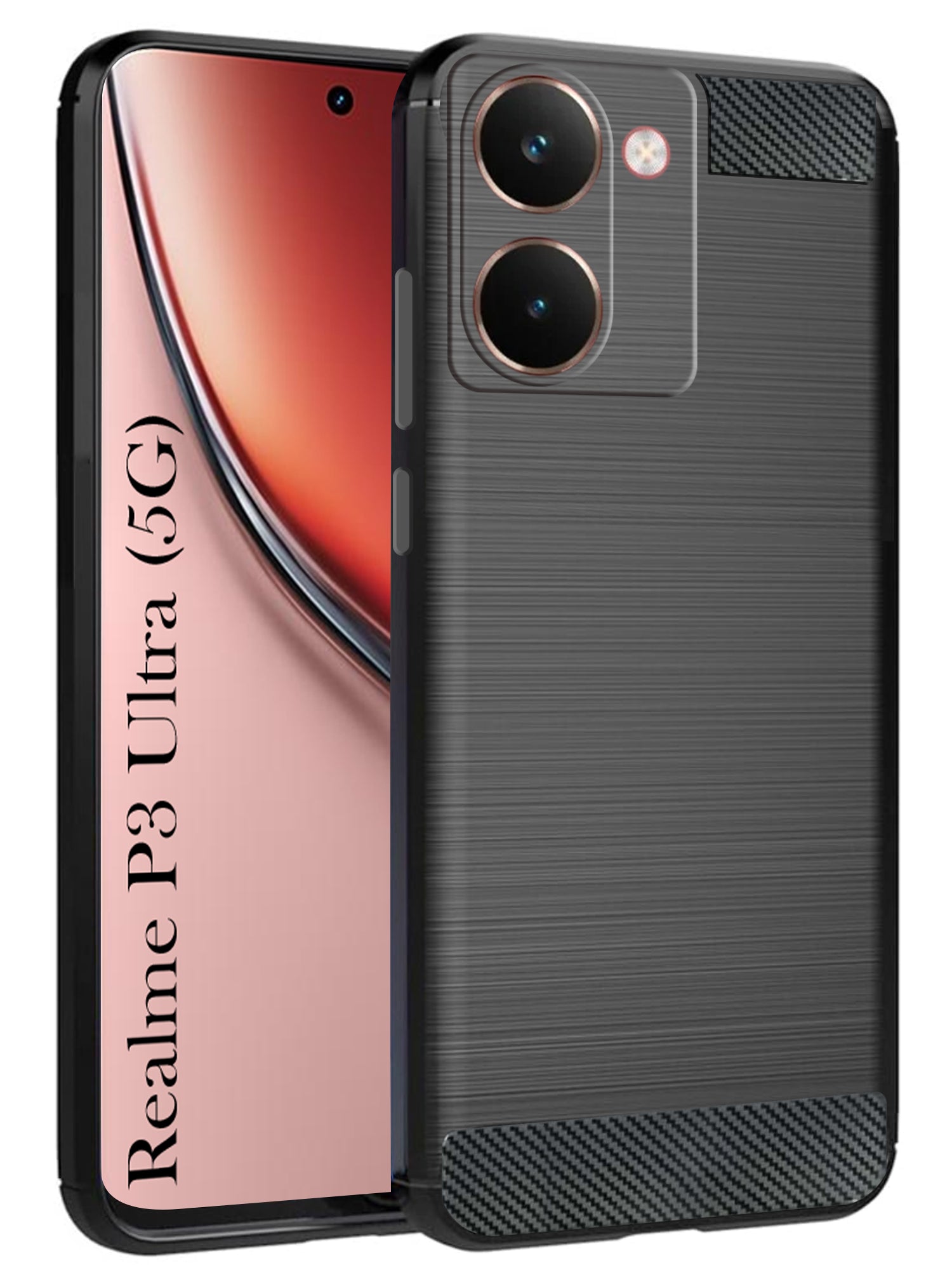 For Realme P3 Ultra Back Cover Case ( Hybrid Armor Case | Carbon Fiber Shockproof | Soft and Flexible | Black )