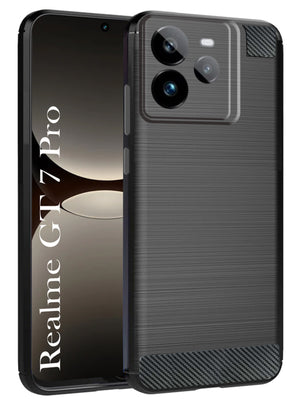 For Realme GT 7 Pro Back Cover Case ( Hybrid Armor Case | Carbon Fiber Shockproof | Soft and Flexible | Black )