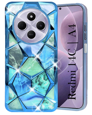 For Redmi A4 5G | Xiaomi Redmi 14C Back Cover Case ( Dual Design Glitter Sparkle and Detachable Diamond Print Case | Soft and Flexible)