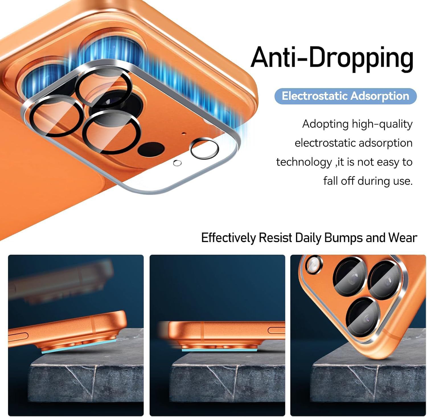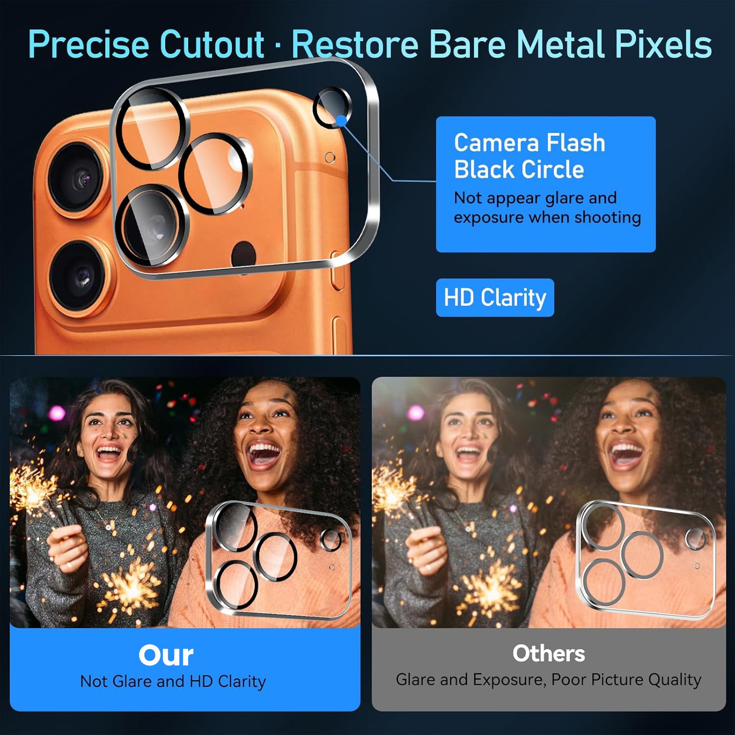Ultra clear adhesive and electrostatic adsorption makes the protector stick to the camera Lens well.