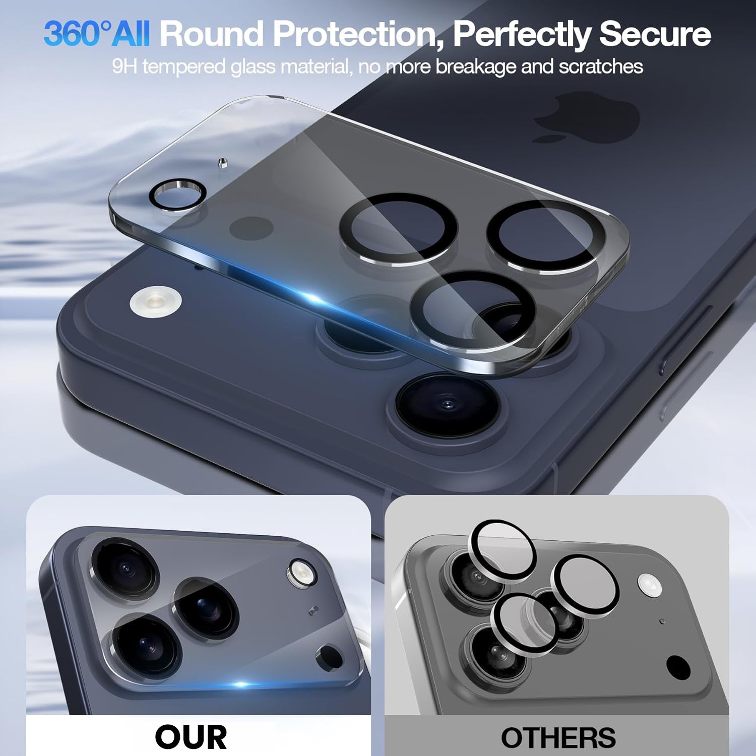 Ultra clear adhesive and electrostatic adsorption makes the protector stick to the camera Lens well.