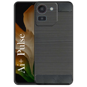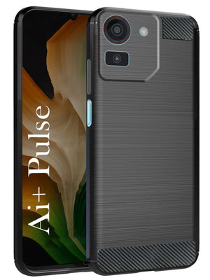 For Ai+ Pulse Back Cover Case( Hybrid Armor Case | Carbon Fiber Shockproof | Soft and Flexible | Black )