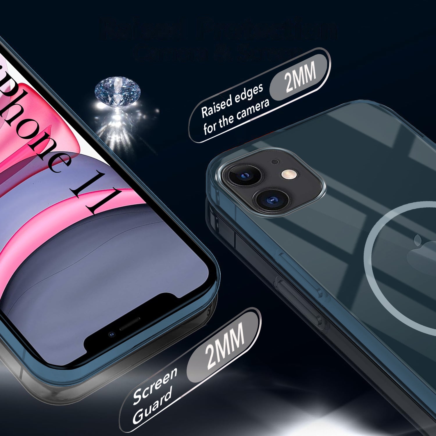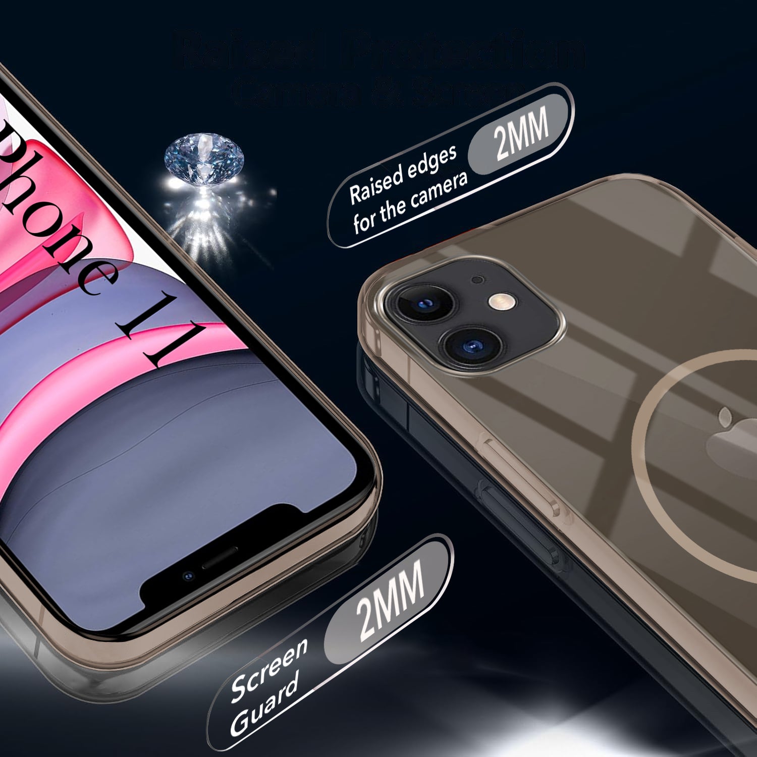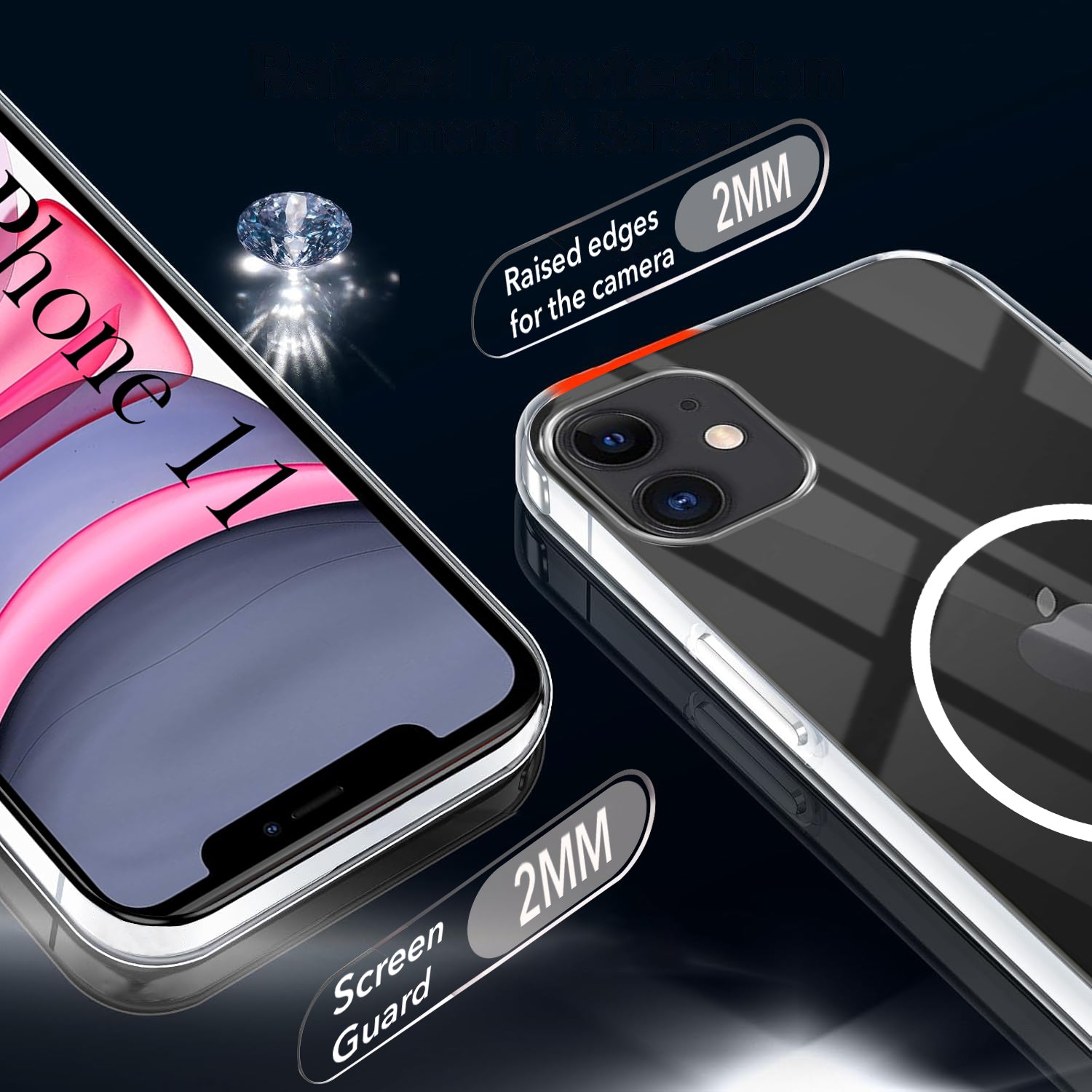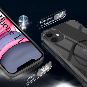 For Apple iPhone 11 Back Cover Case (Crystal Clear Case | MagSafe Wireless Charging Support | Hard Anti Yellow | Camera Protection Bump)