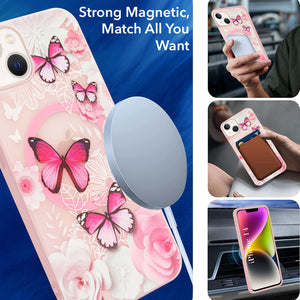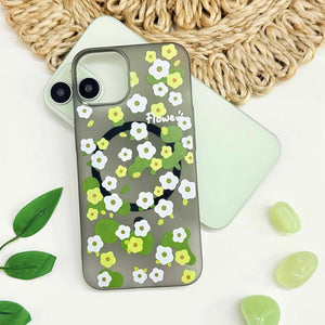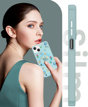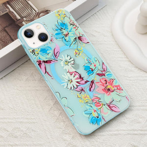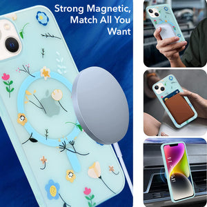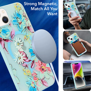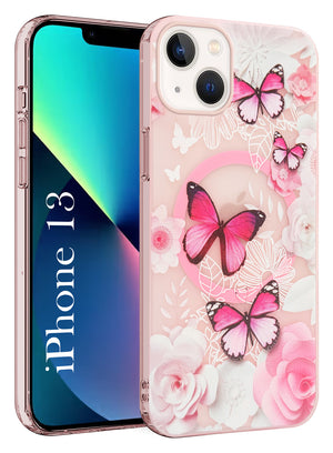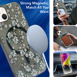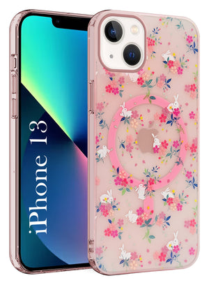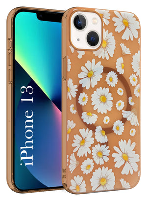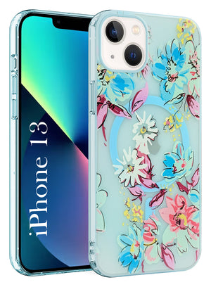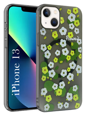 For Apple iPhone 13 Back Cover Case (Cute Floral Design | Flower Print for Girls | MagSafe Compatible Wireless Charging)