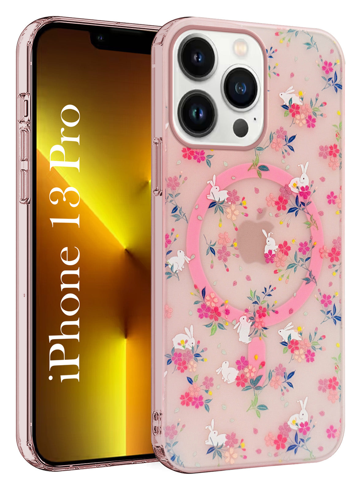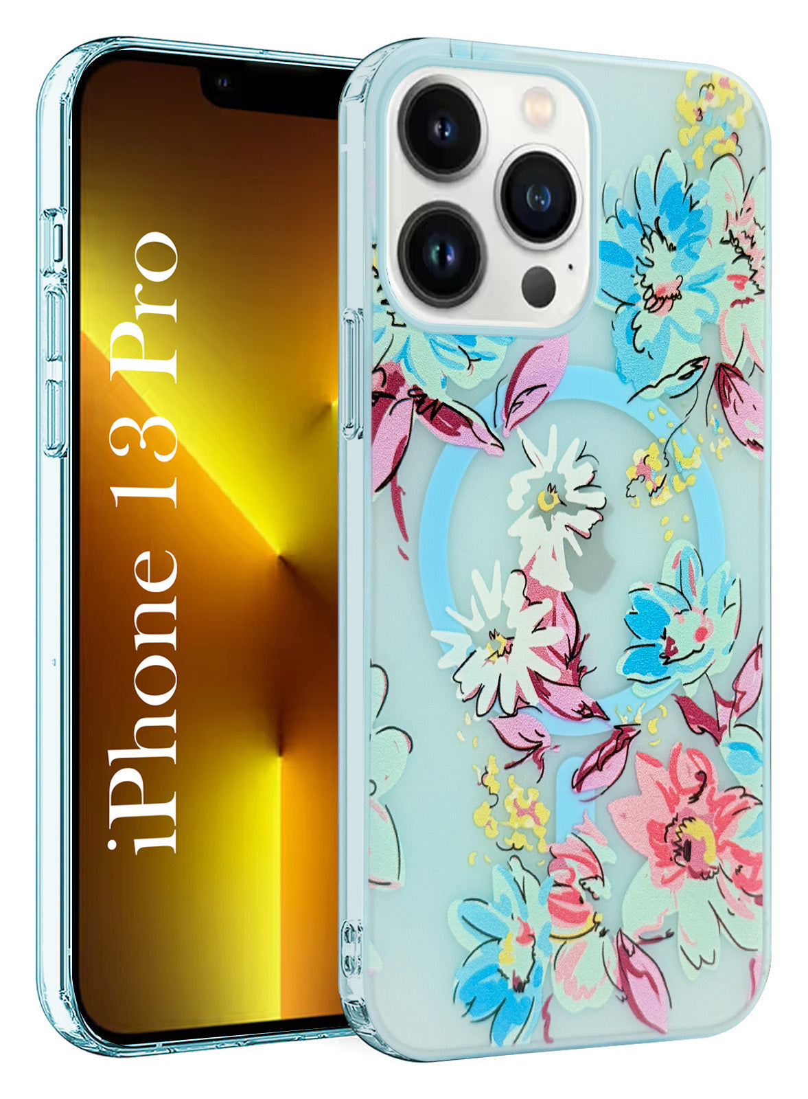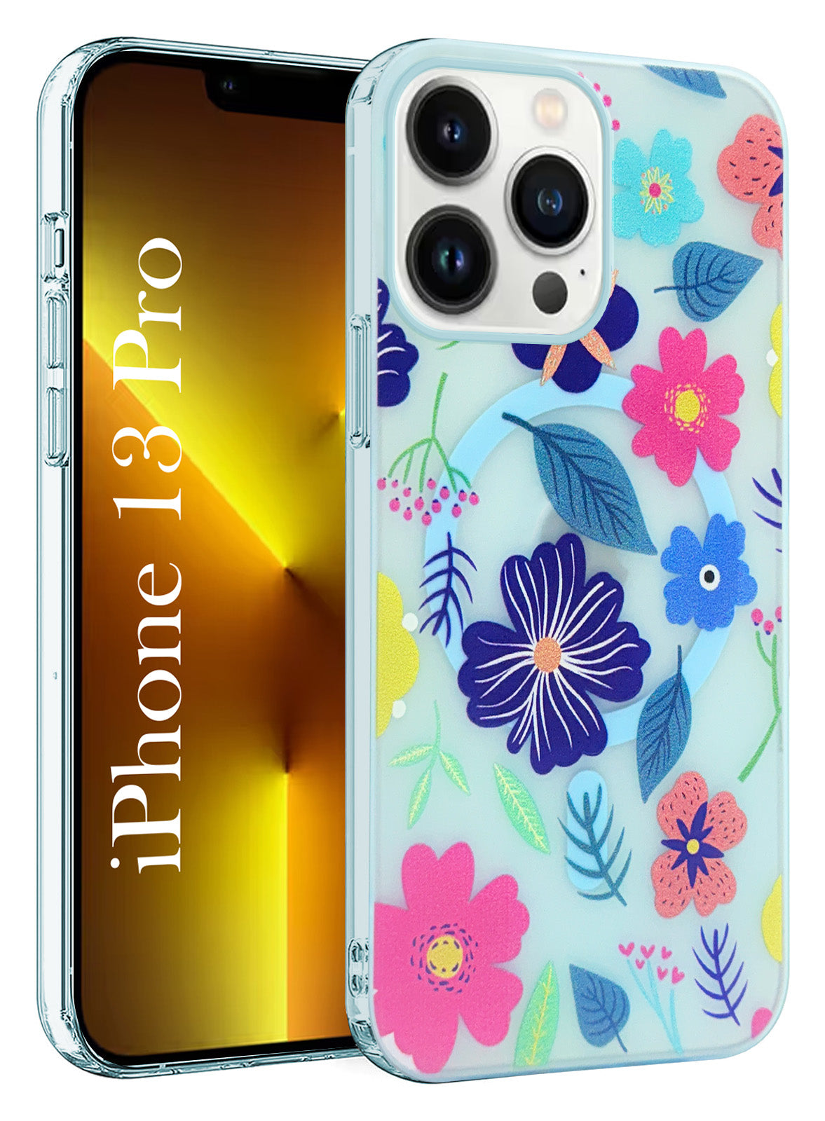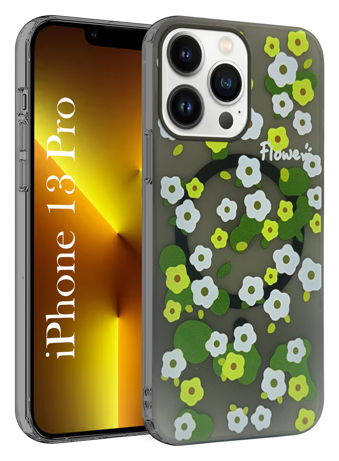 For Apple iPhone 13 Pro Back Cover Case (Cute Floral Design | Flower Print for Girls | MagSafe Compatible Wireless Charging)