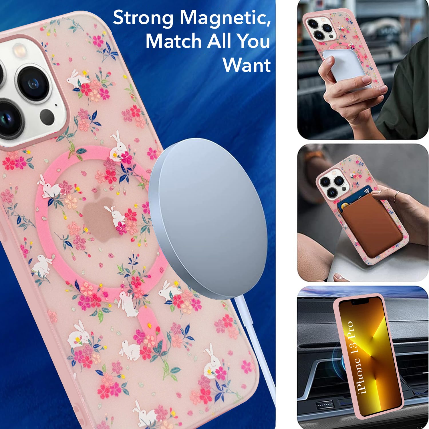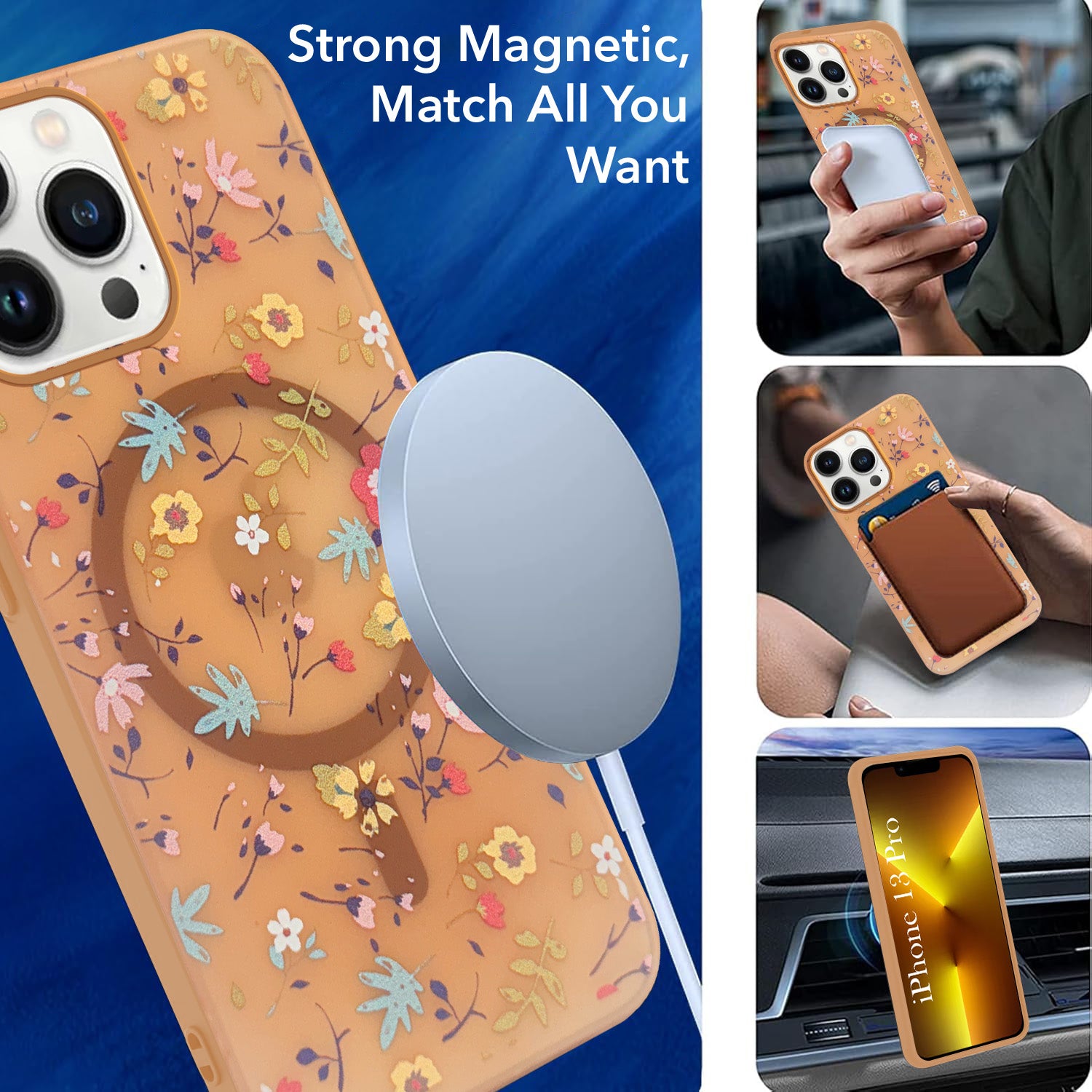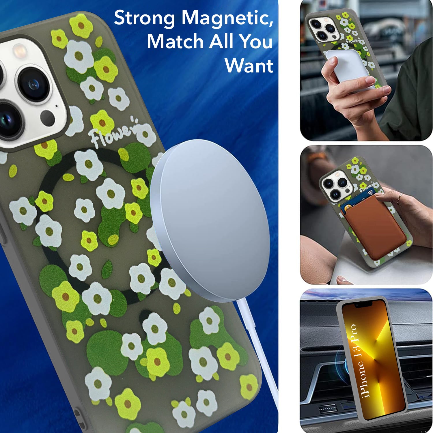 For Apple iPhone 13 Pro Back Cover Case (Cute Floral Design | Flower Print for Girls | MagSafe Compatible Wireless Charging)