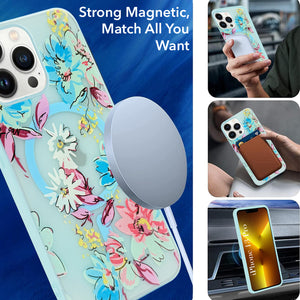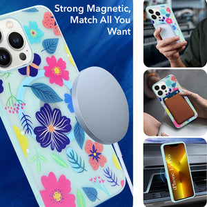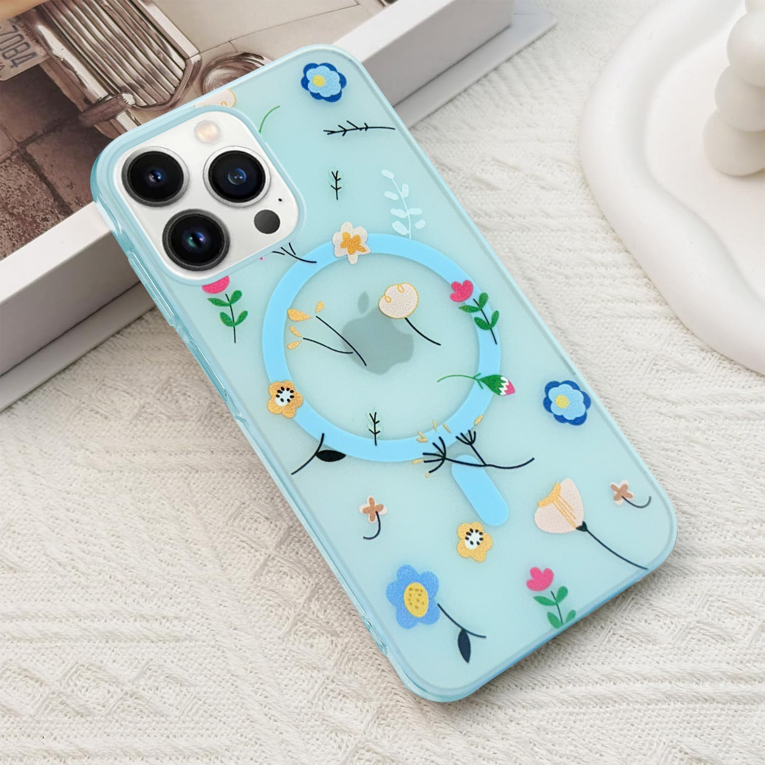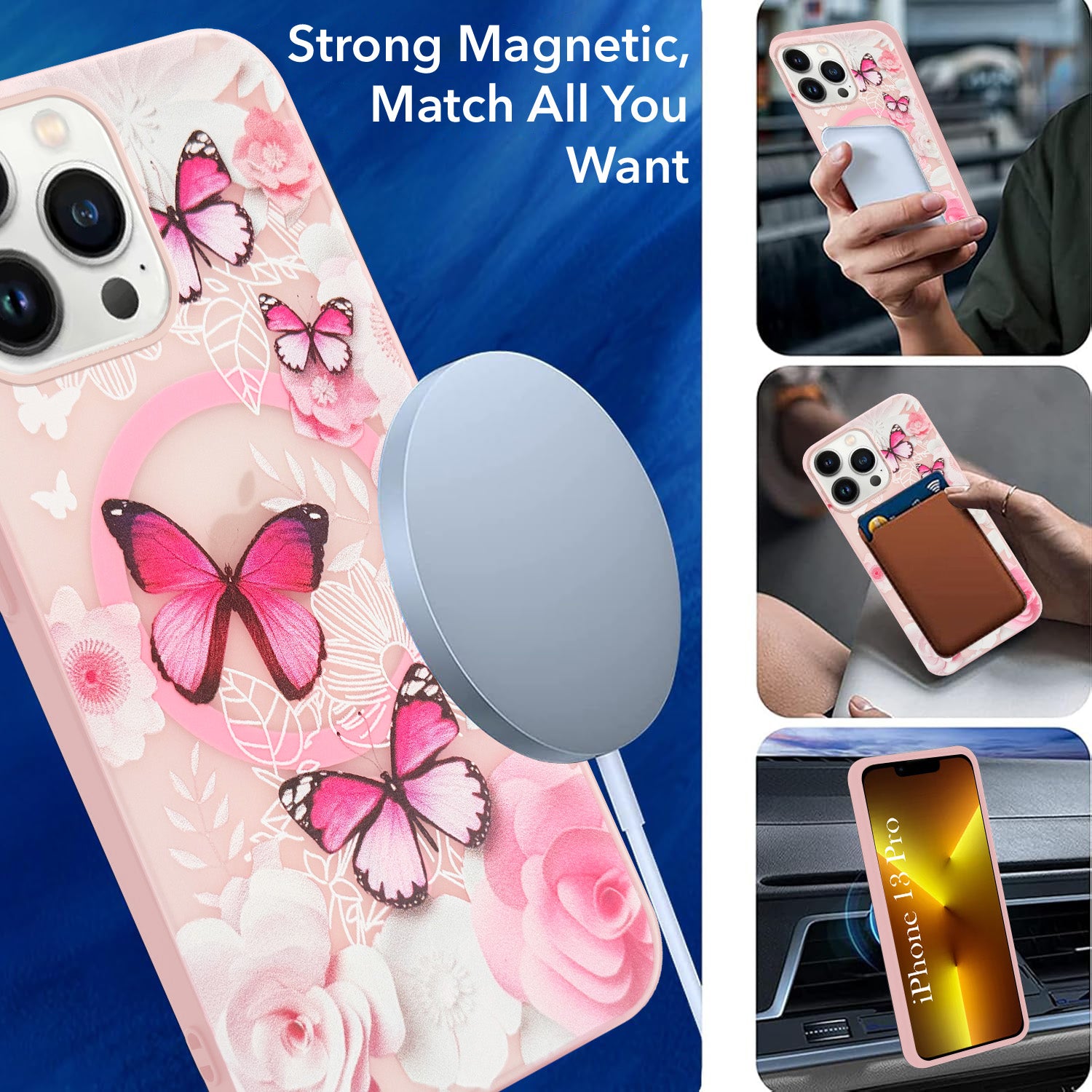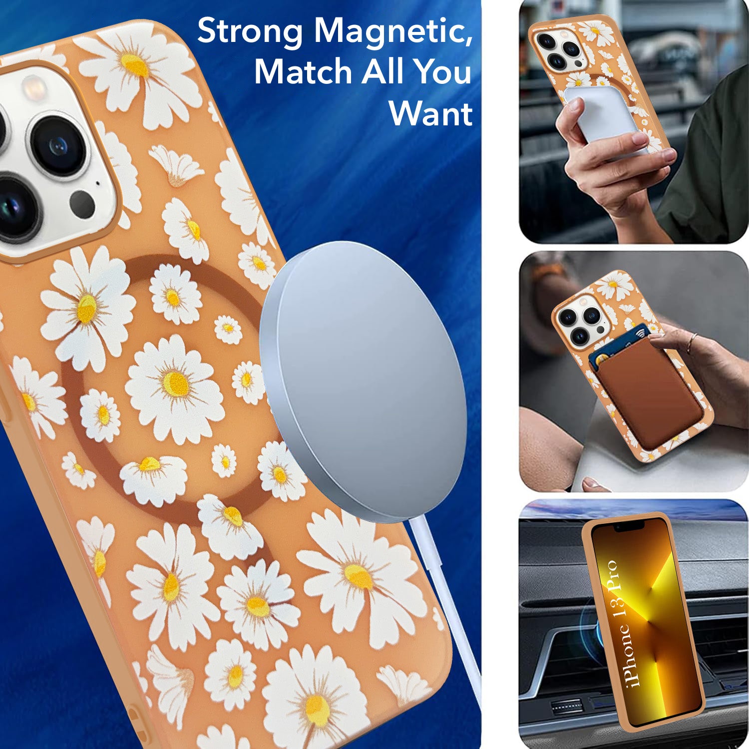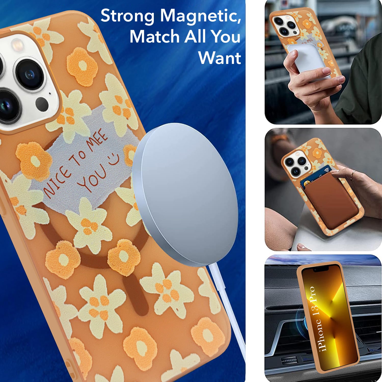 For Apple iPhone 13 Pro Back Cover Case (Cute Floral Design | Flower Print for Girls | MagSafe Compatible Wireless Charging)