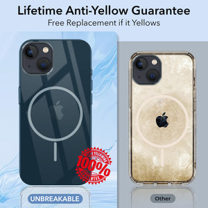 For Apple iPhone 14 Back Cover Case (Crystal Clear Case | MagSafe Wireless Charging Support | Hard Anti Yellow | Camera Protection Bump)