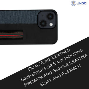 For Apple iPhone 14 Back Cover Case (Professional PU Leather | Strip Chain Holder Socket | Black)