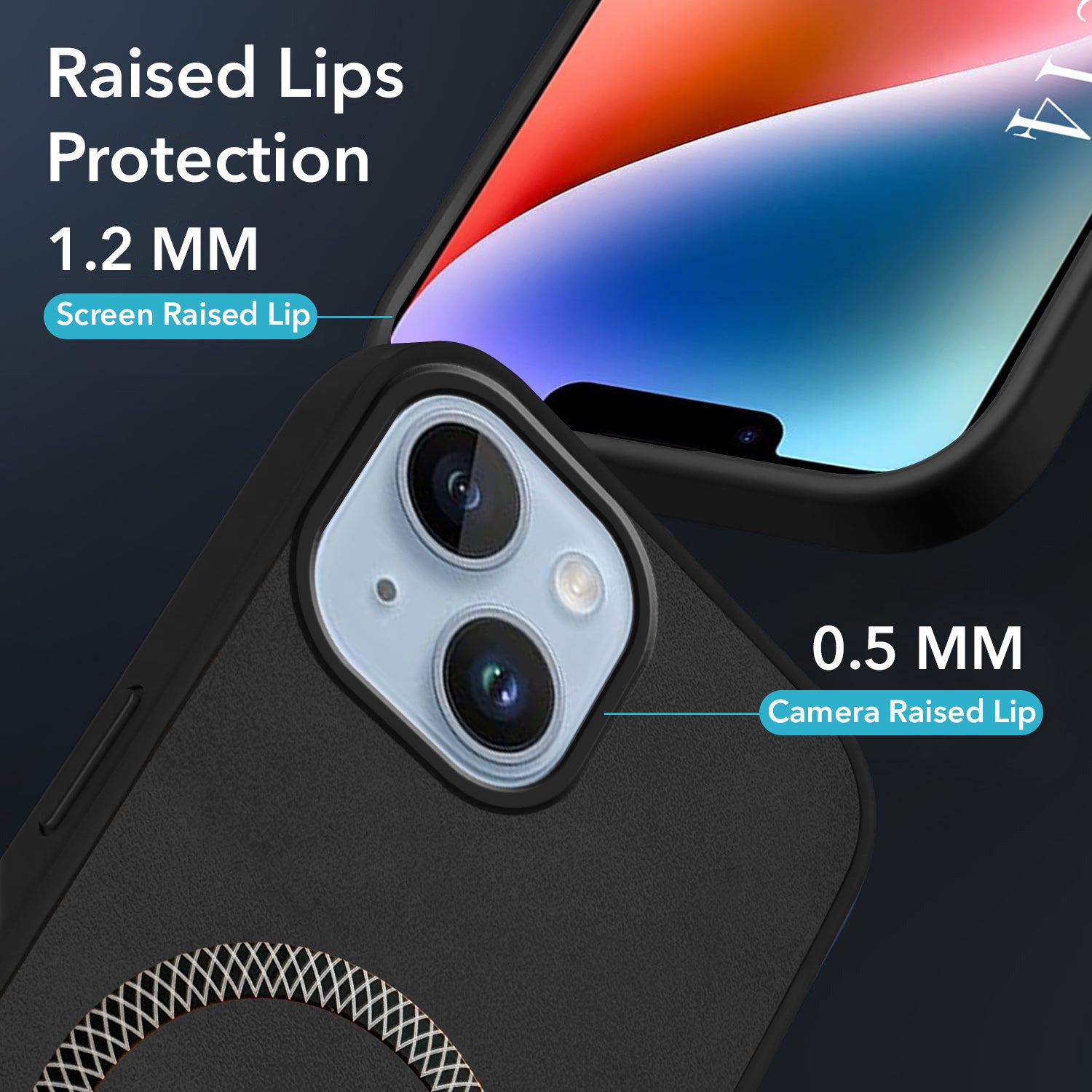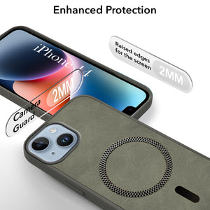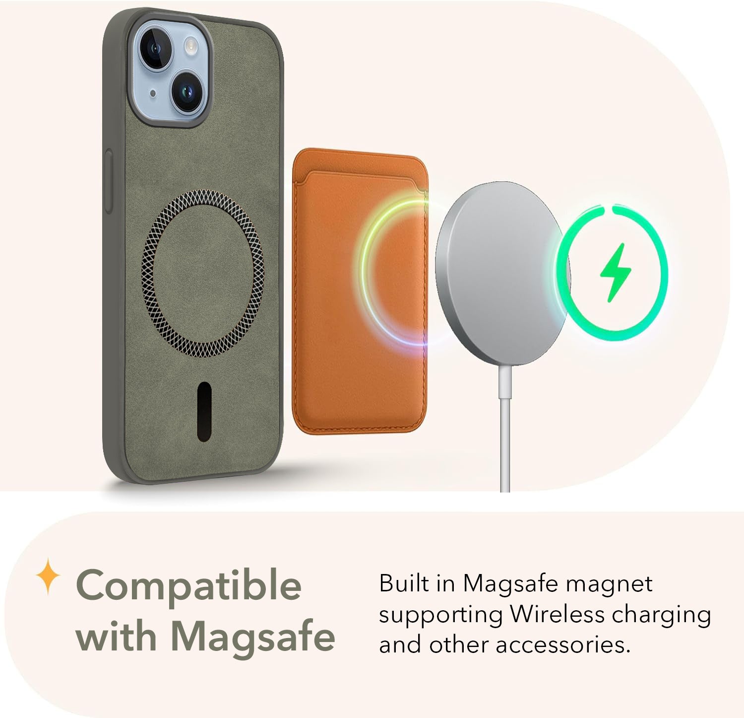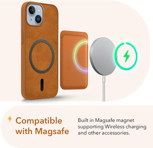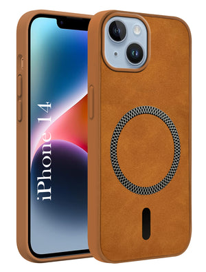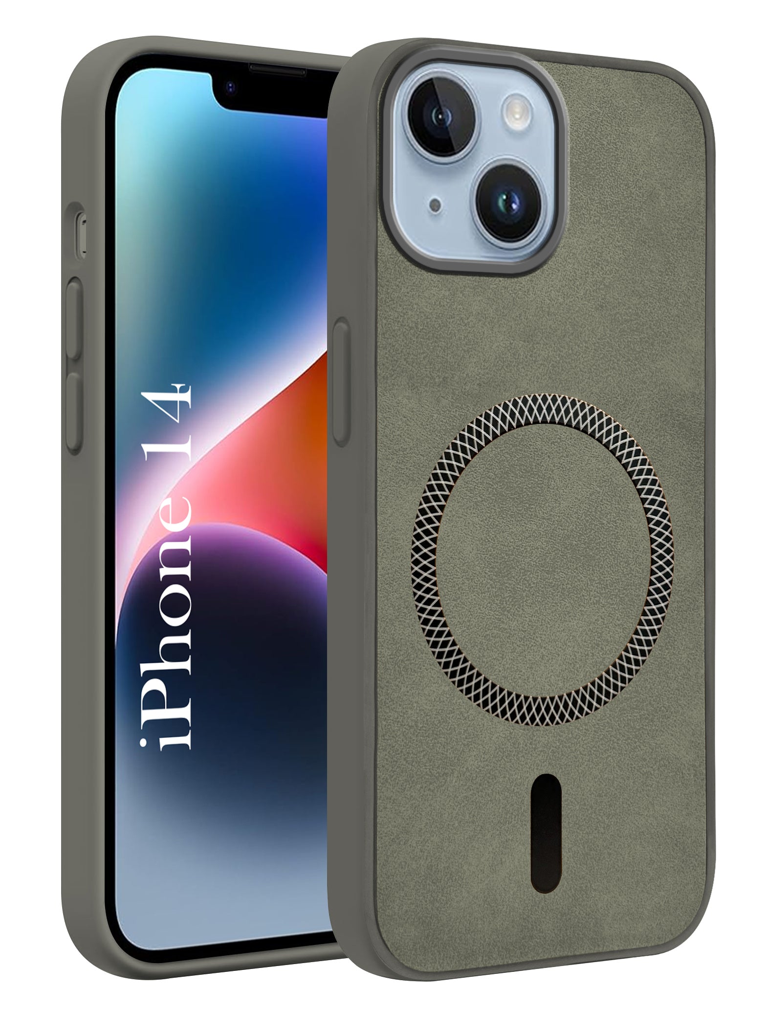 For Apple iPhone 14 Back Cover Case (Sleek Leather Finish | MagSafe Compatible Wireless Charging | Camera Bump Protection)