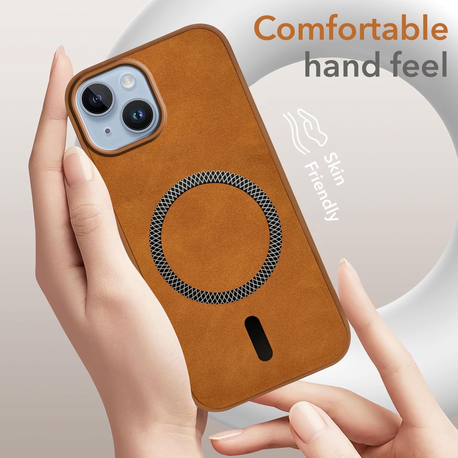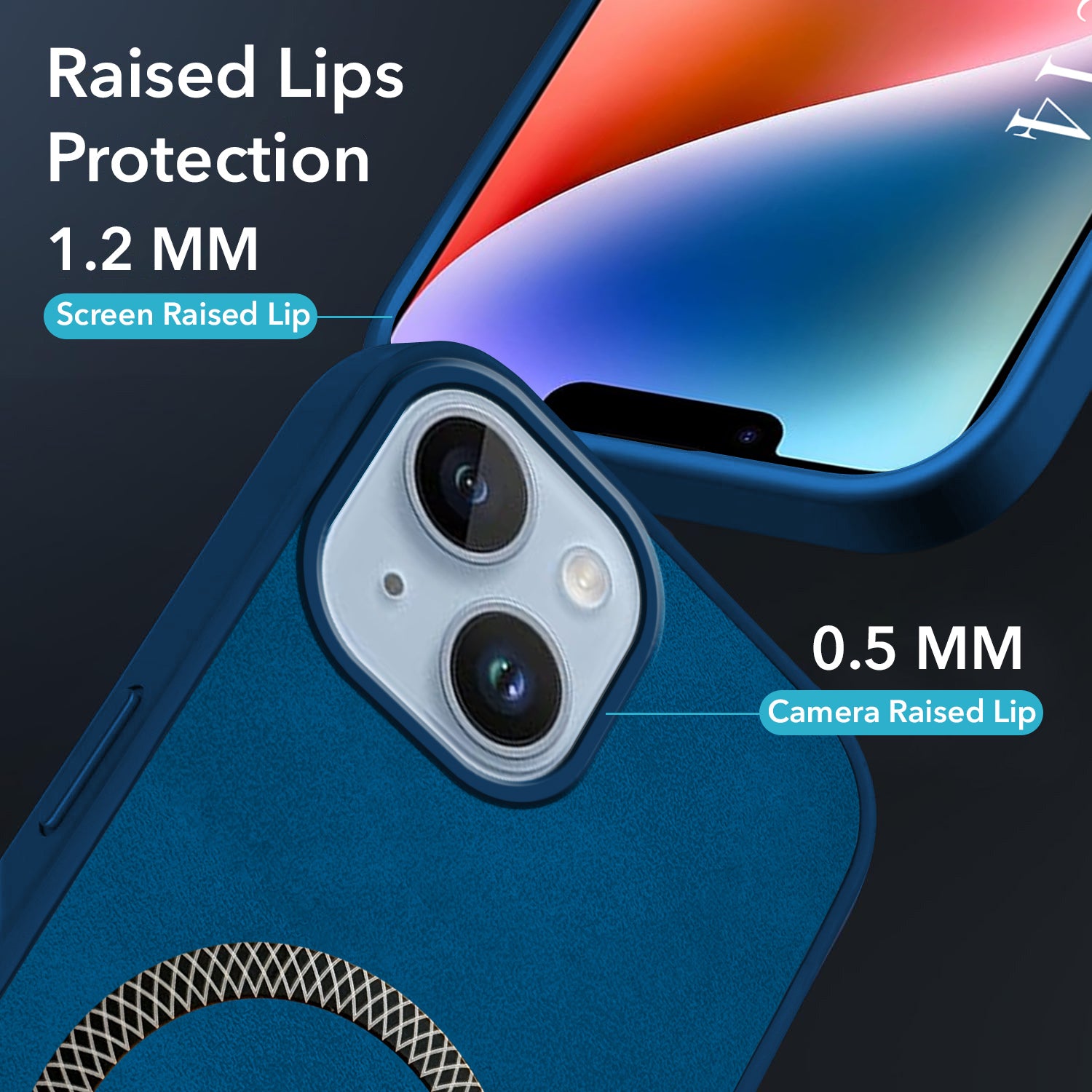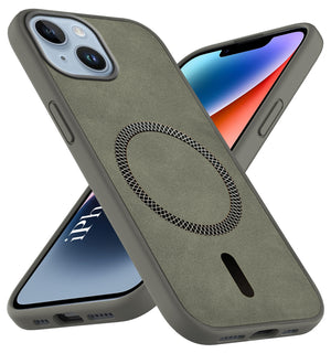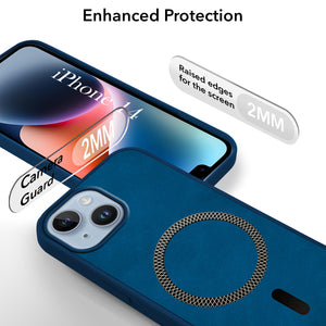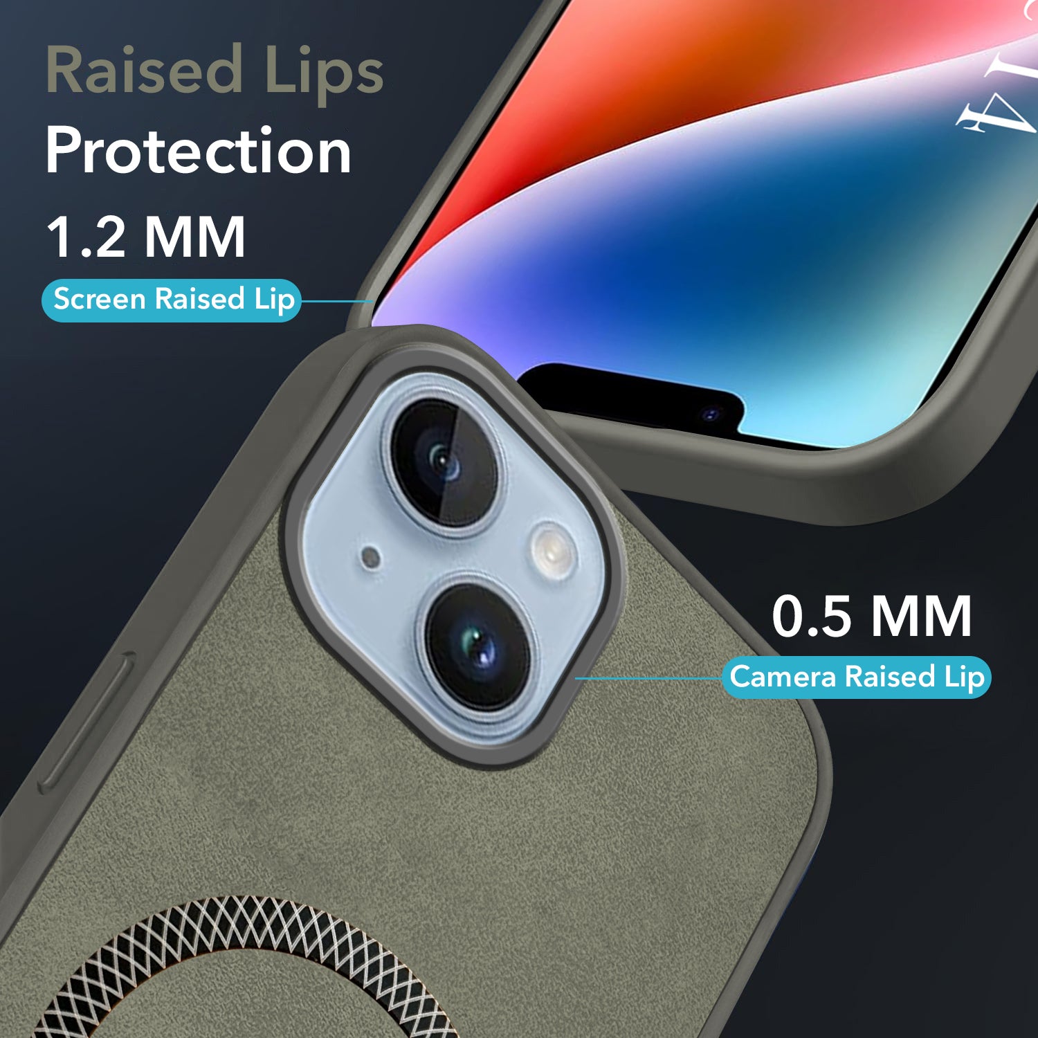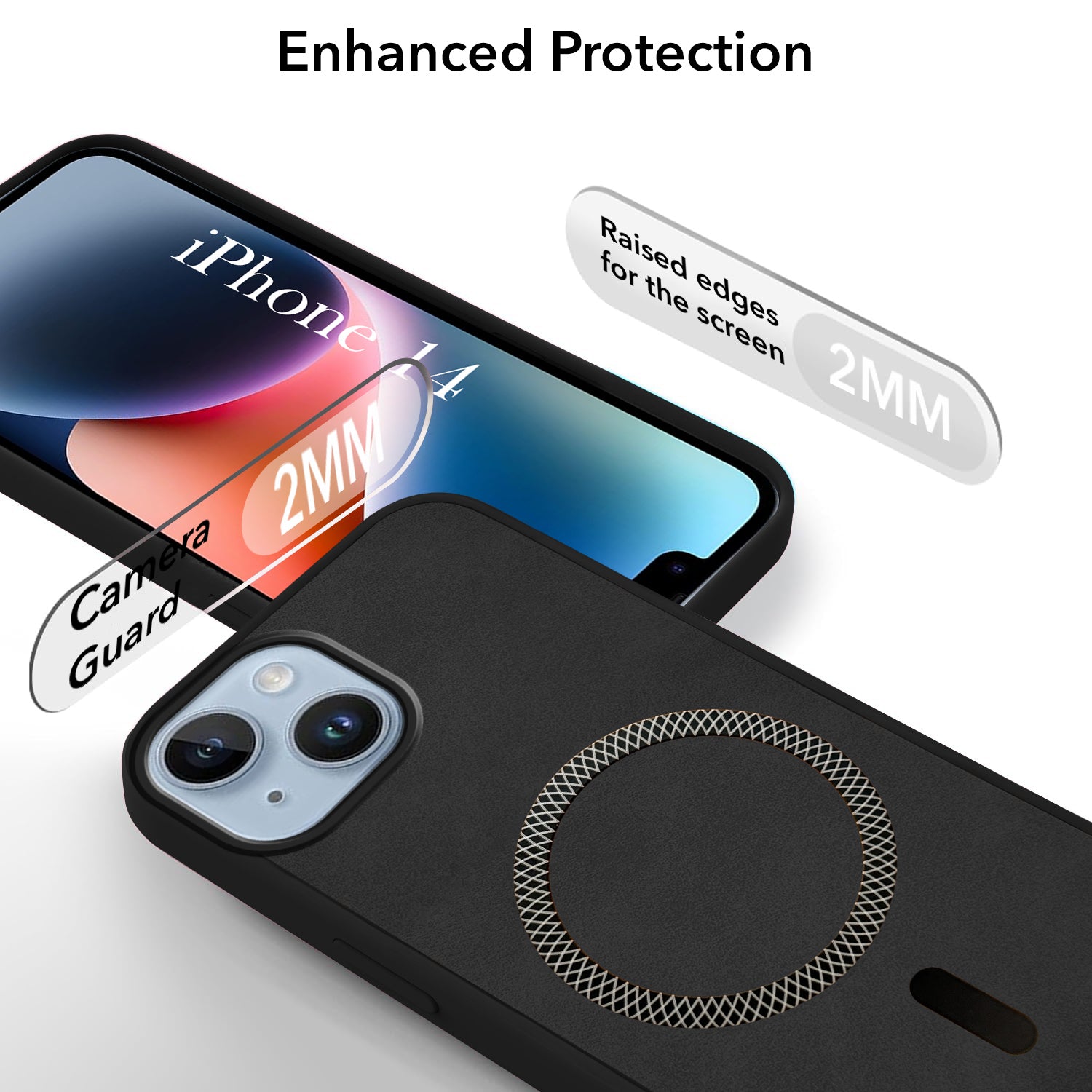 For Apple iPhone 14 Back Cover Case (Sleek Leather Finish | MagSafe Compatible Wireless Charging | Camera Bump Protection)