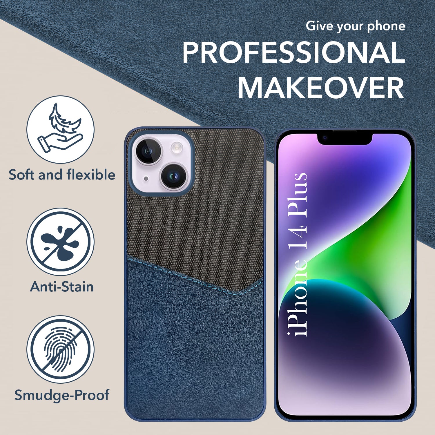 For Apple iPhone 14 Plus Back Cover Case (Dual PU Leather Stitch | Professional Minimalist | Soft and Flexible)