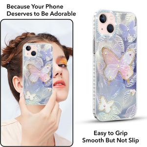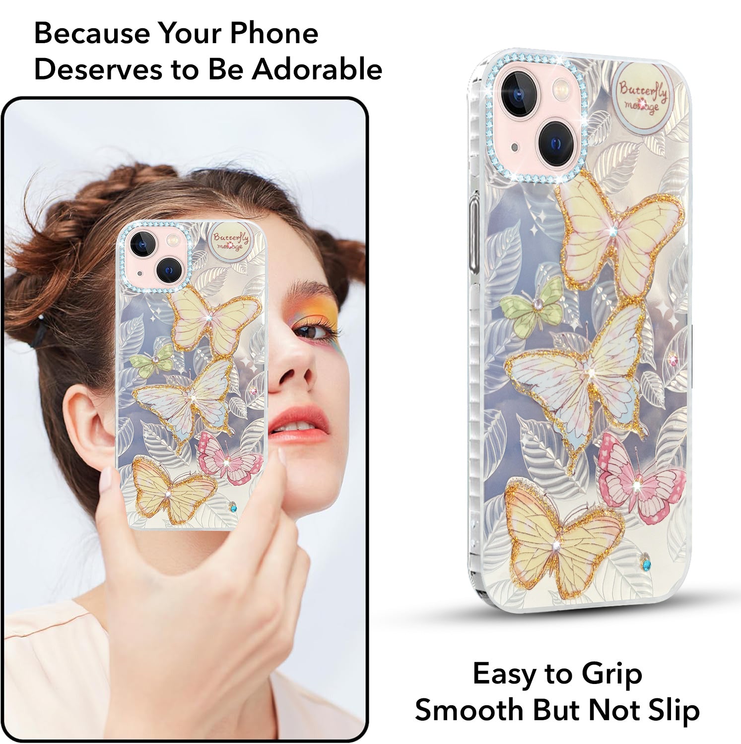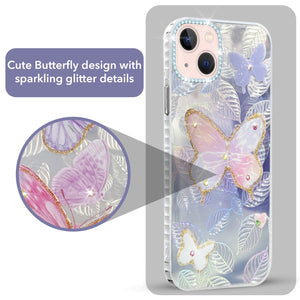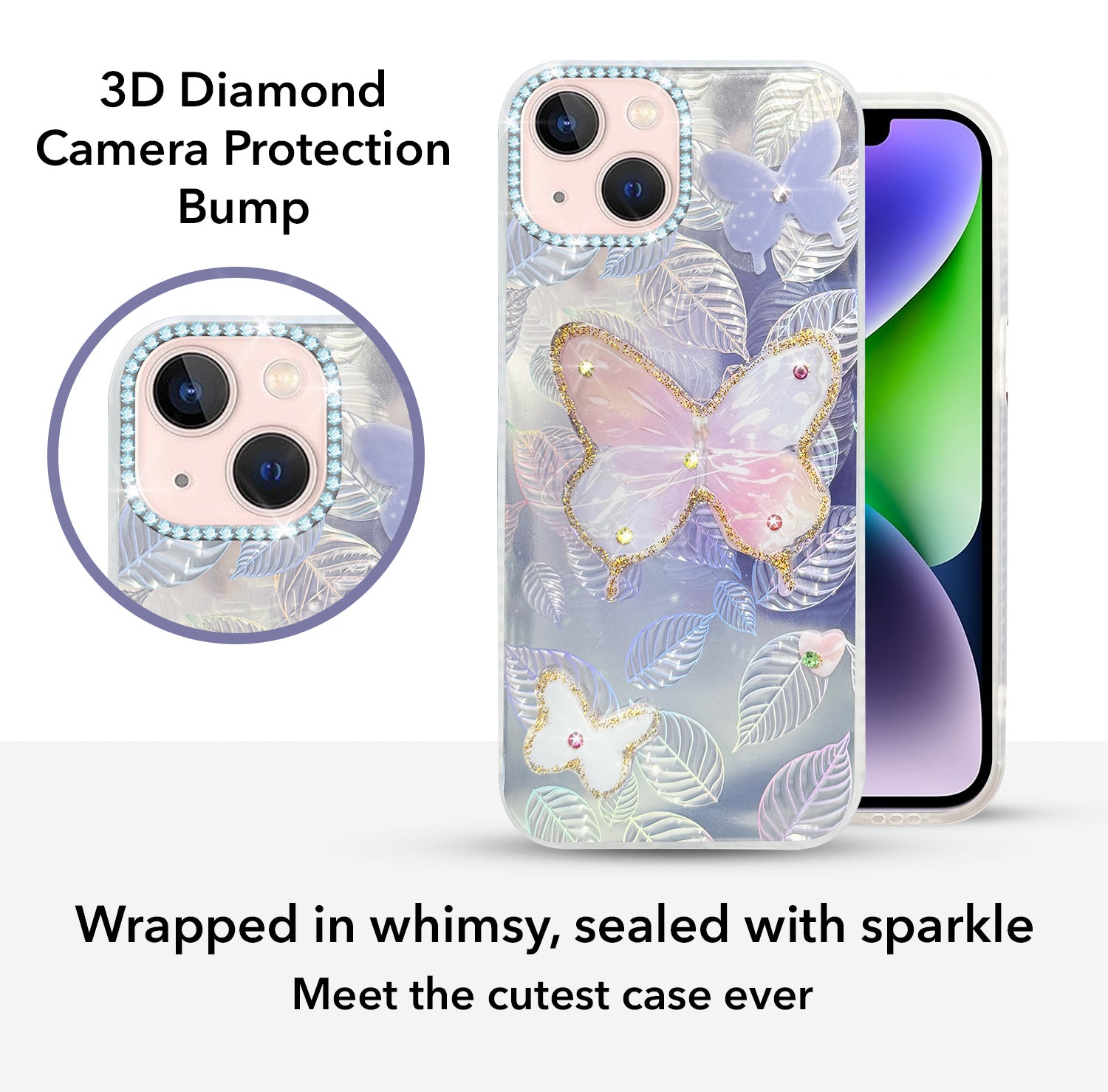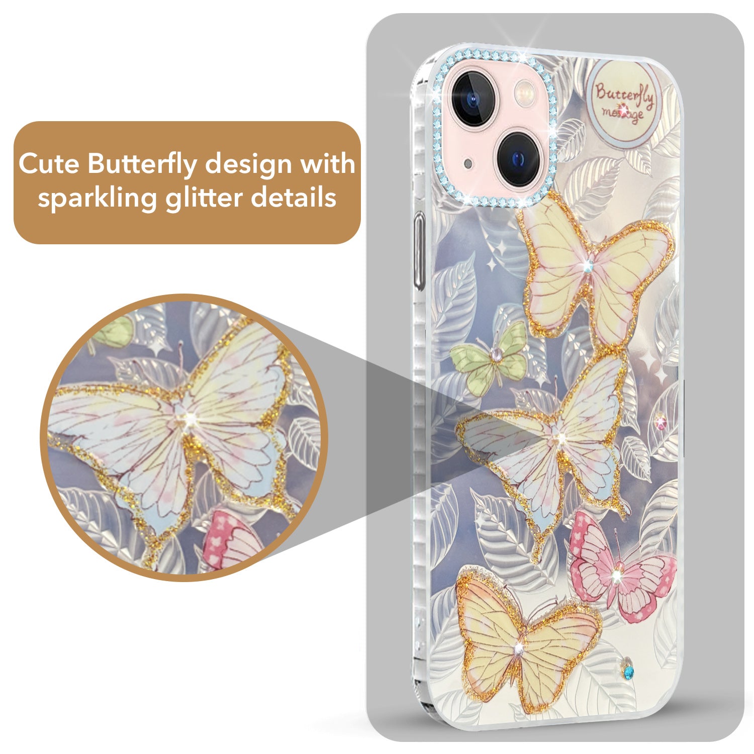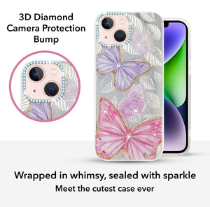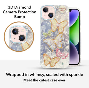 For Apple iPhone 14 Plus Back Cover Case (Luxury Floral Glitter Cute Butterfly | Diamond Studded Camera Bump | Girls & Women Design)