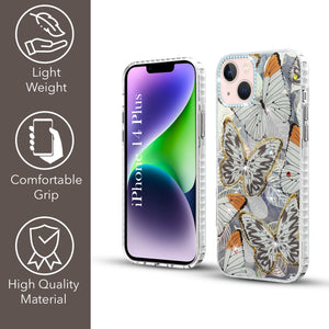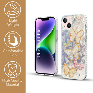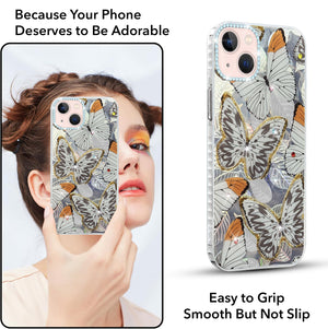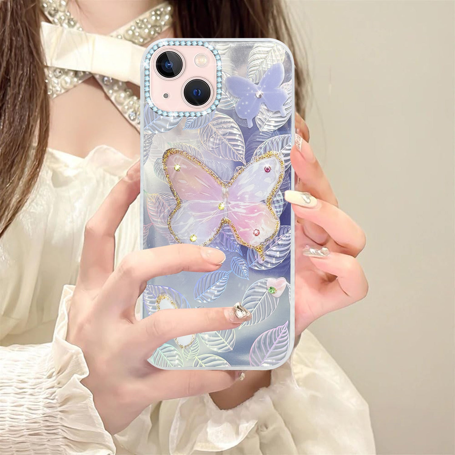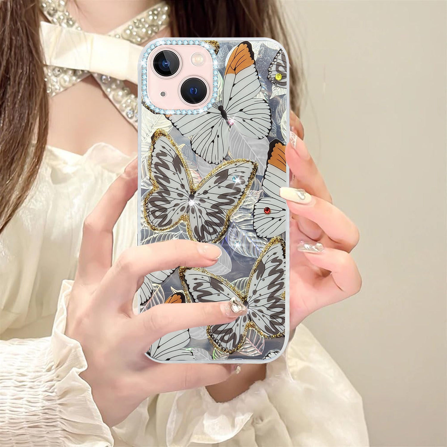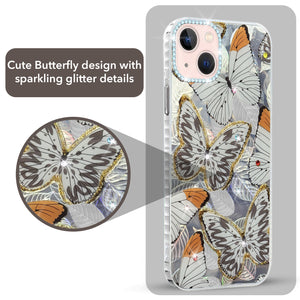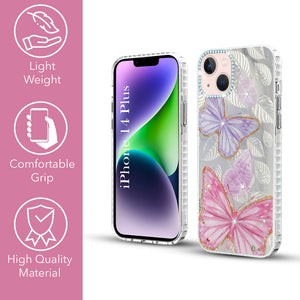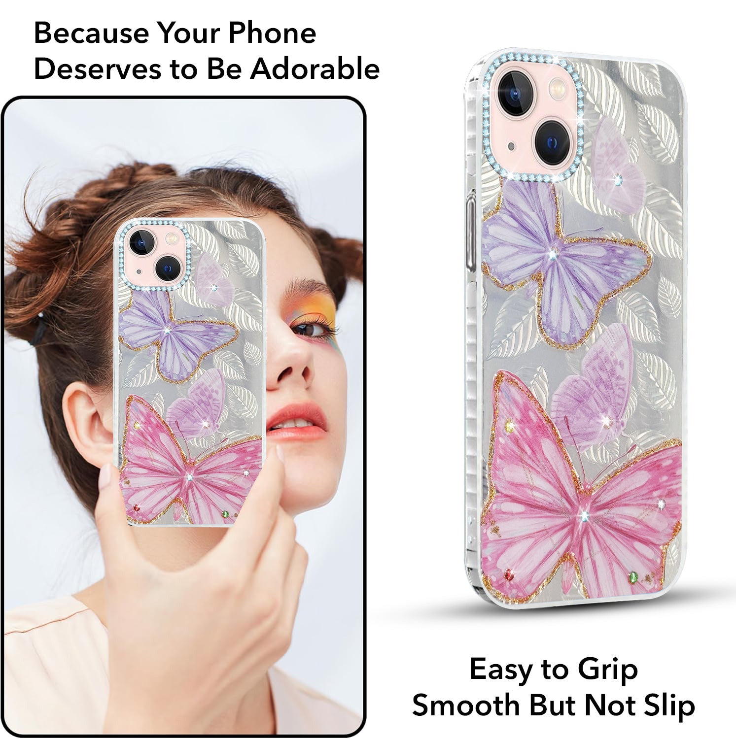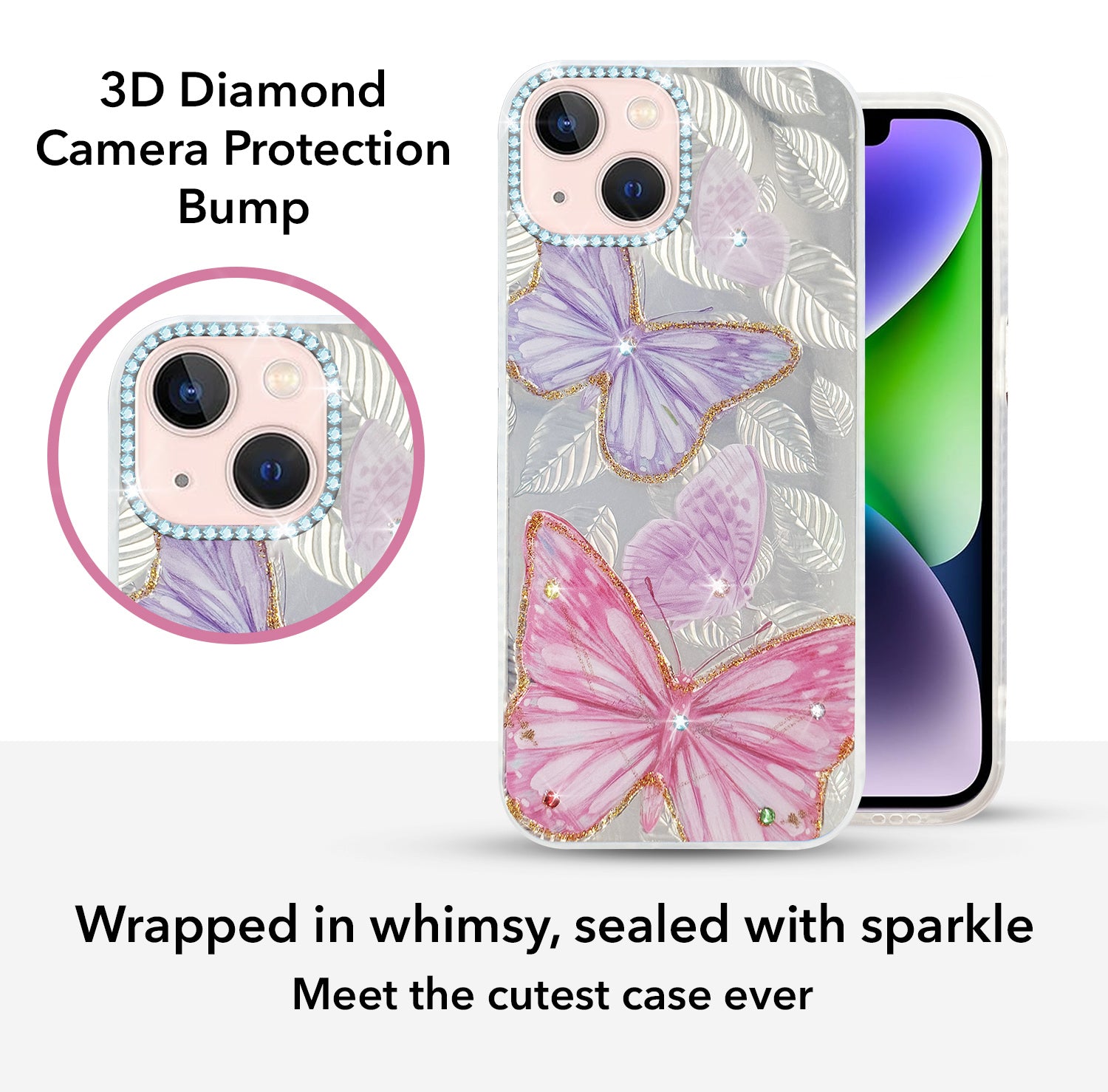 For Apple iPhone 14 Plus Back Cover Case (Luxury Floral Glitter Cute Butterfly | Diamond Studded Camera Bump | Girls & Women Design)