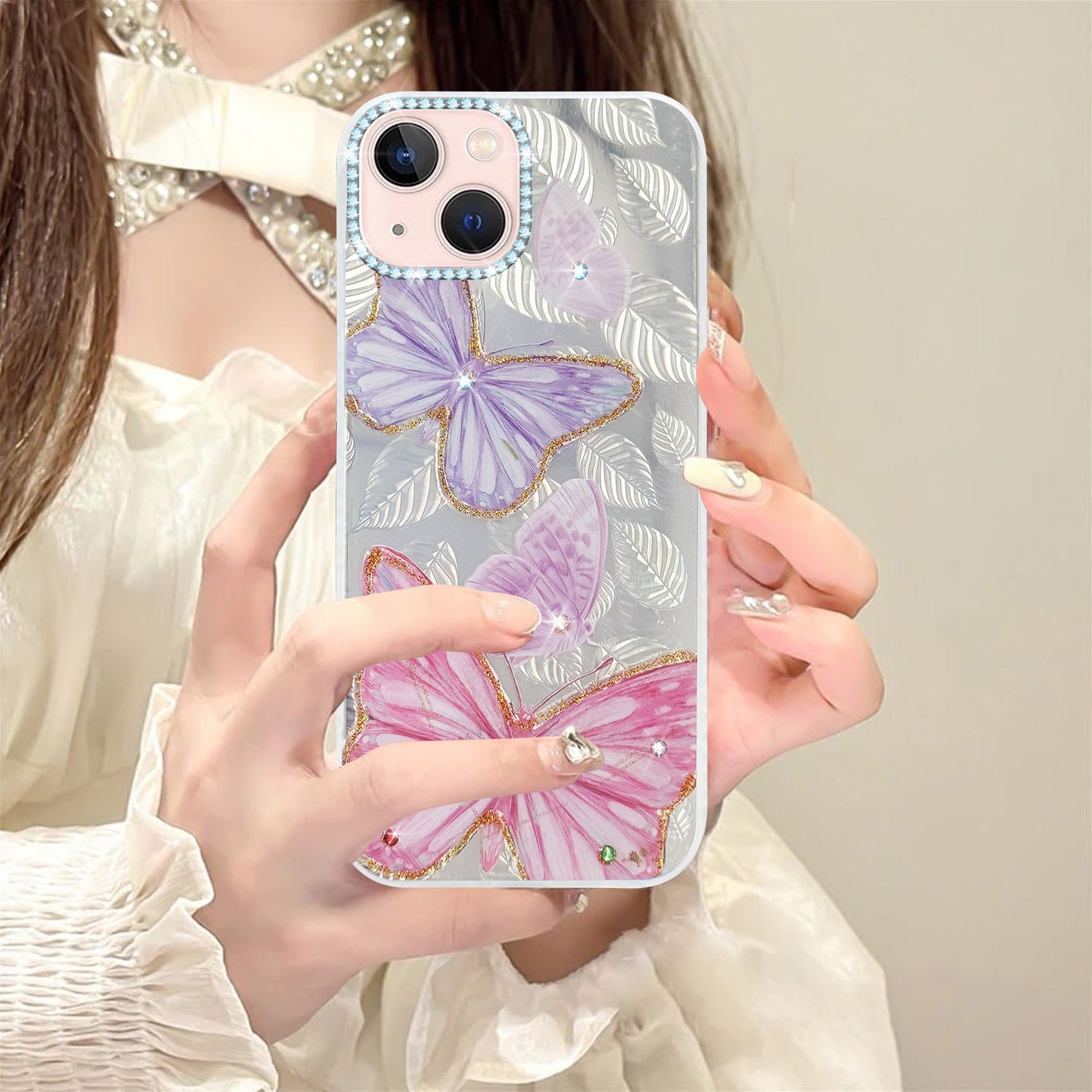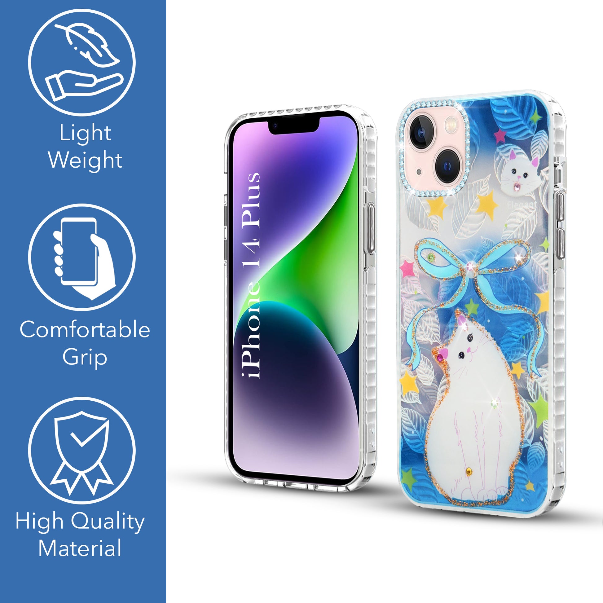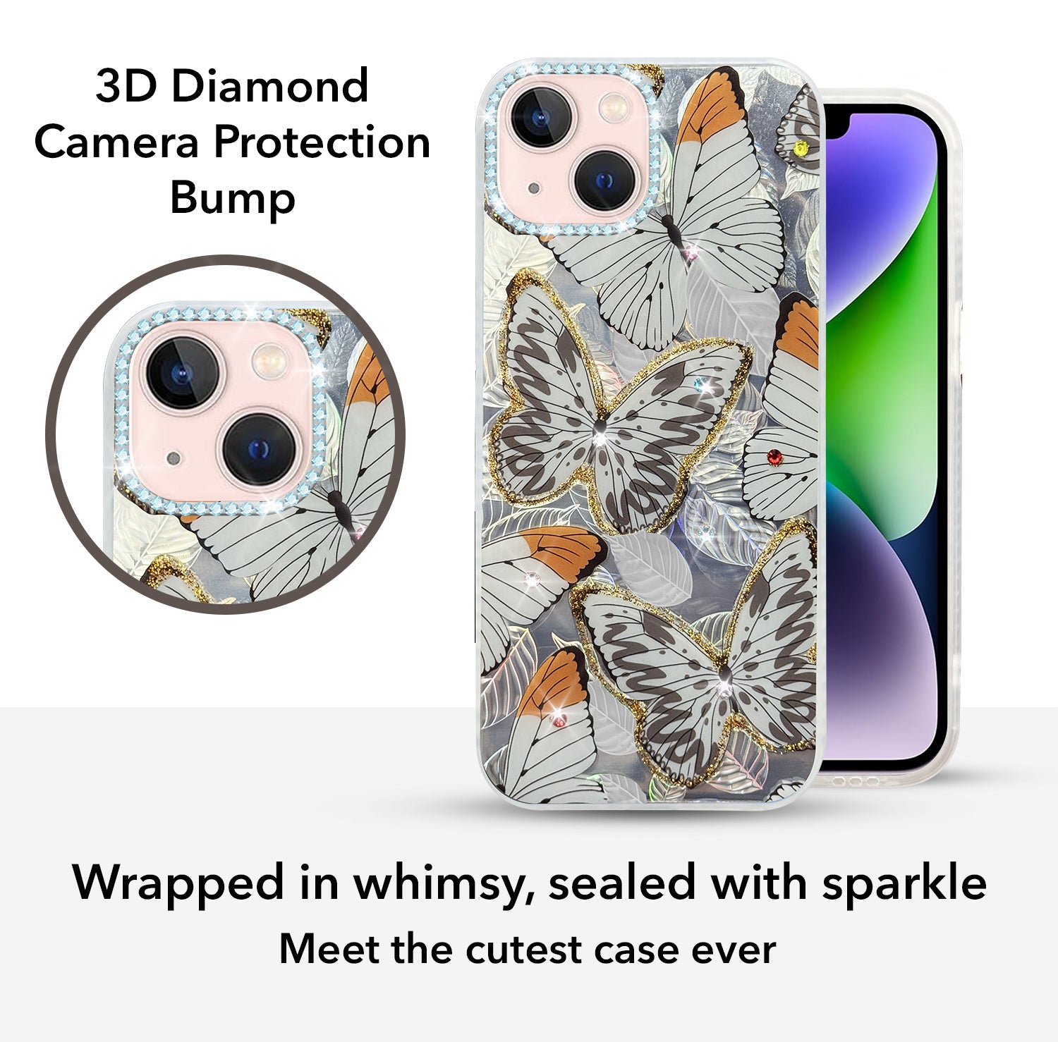 For Apple iPhone 14 Plus Back Cover Case (Luxury Floral Glitter Cute Butterfly | Diamond Studded Camera Bump | Girls & Women Design)