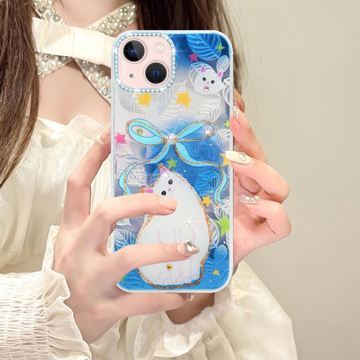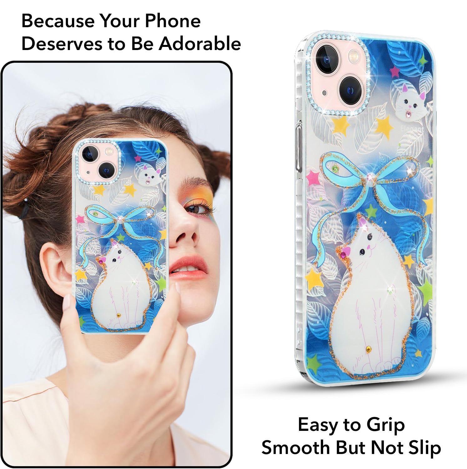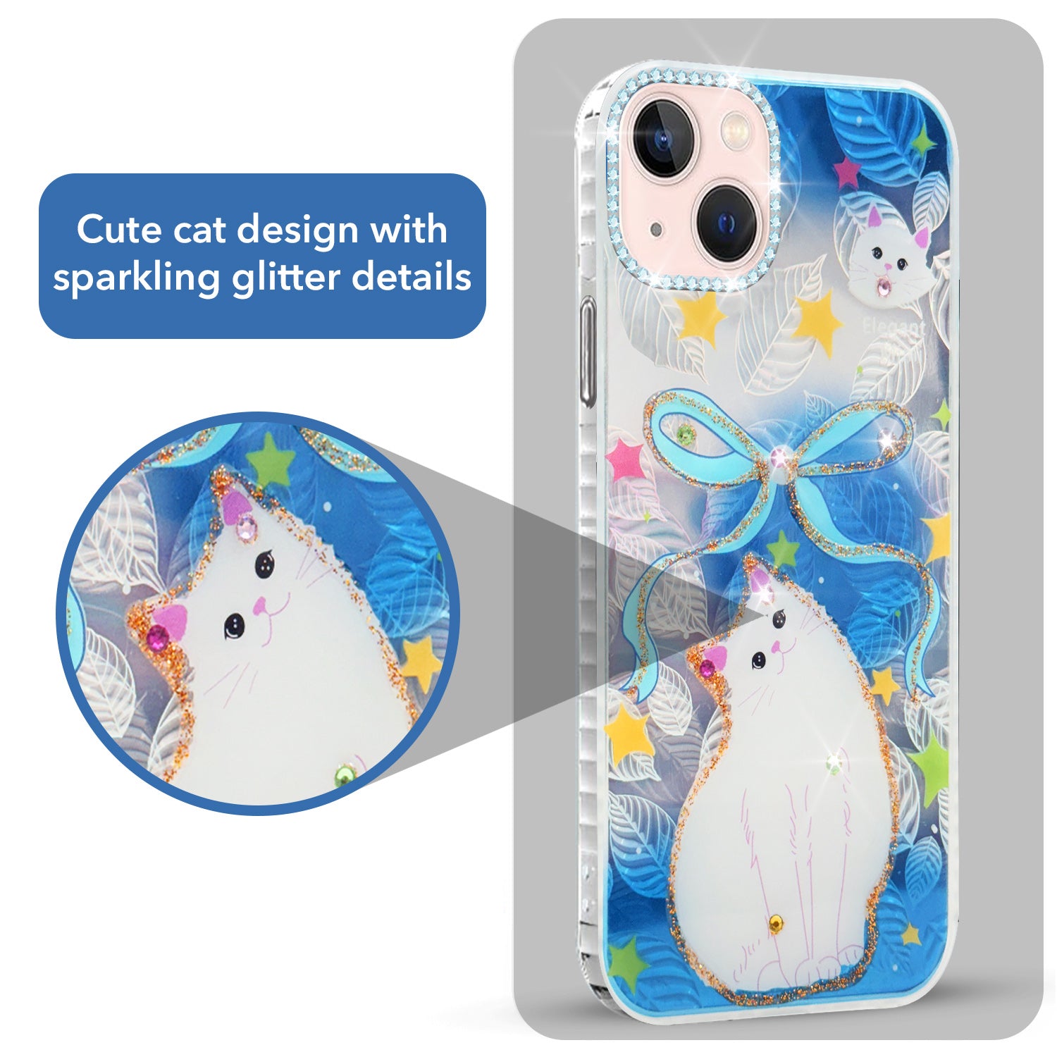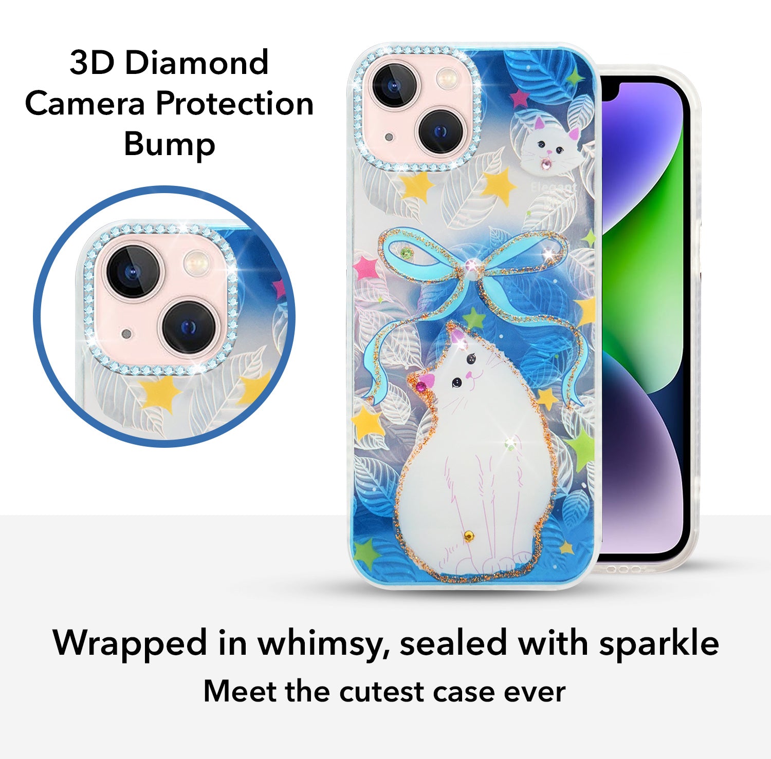 For Apple iPhone 14 Plus Back Cover Case (Luxury Floral Glitter Cute Butterfly | Diamond Studded Camera Bump | Girls & Women Design)