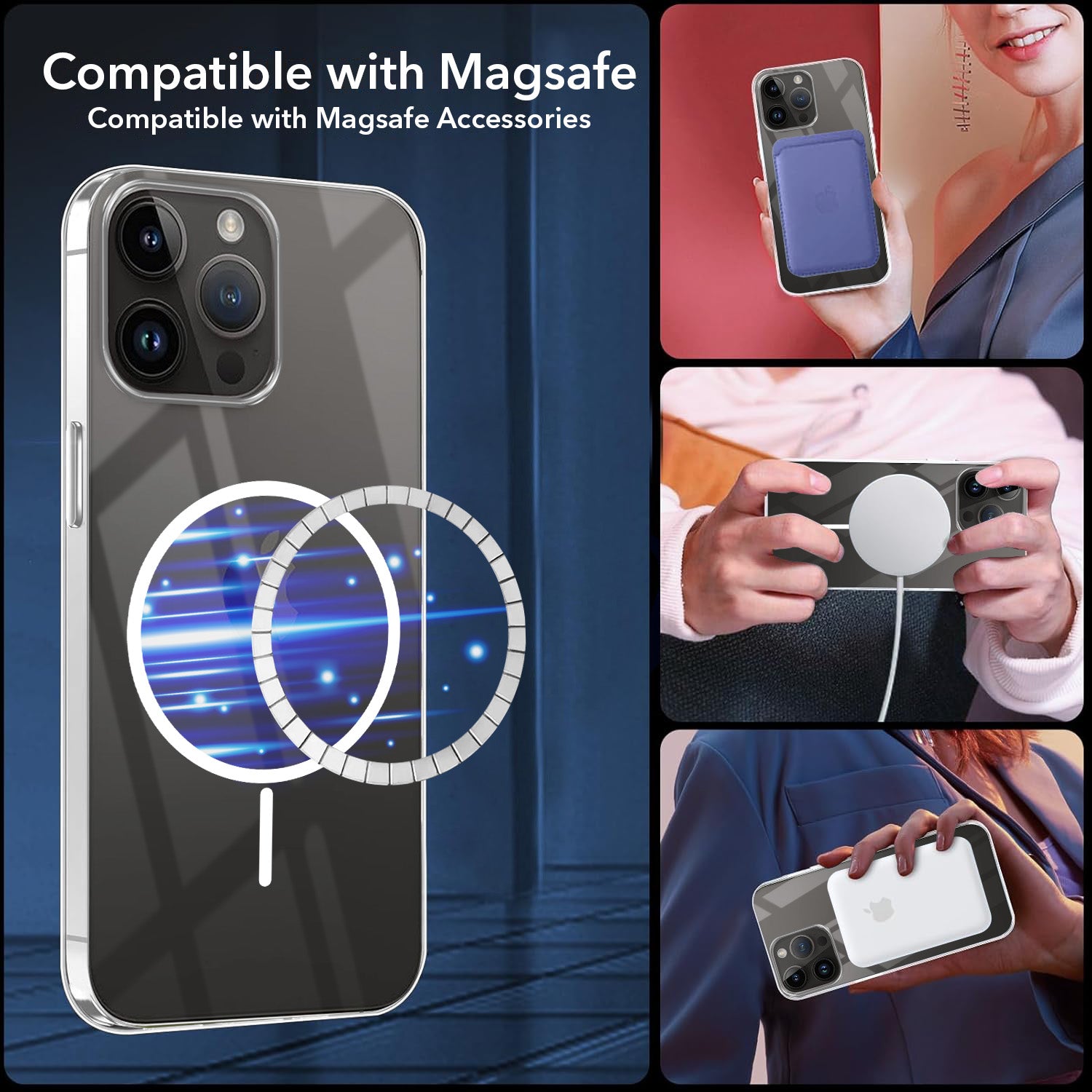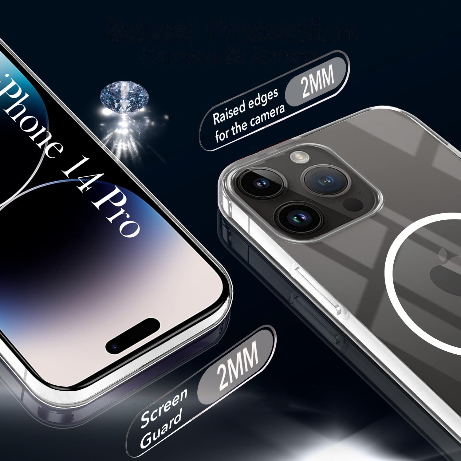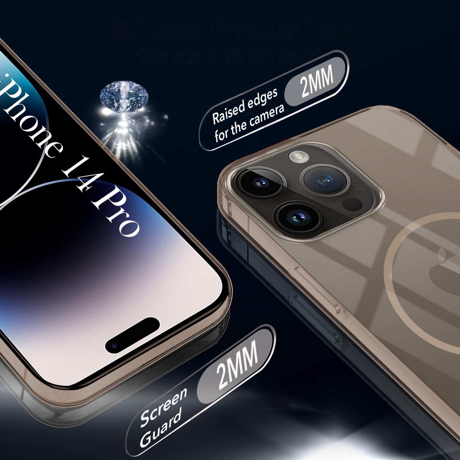 For Apple iPhone 14 Pro Back Cover Case (Crystal Clear Case | MagSafe Wireless Charging Support | Hard Anti Yellow | Camera Protection Bump)