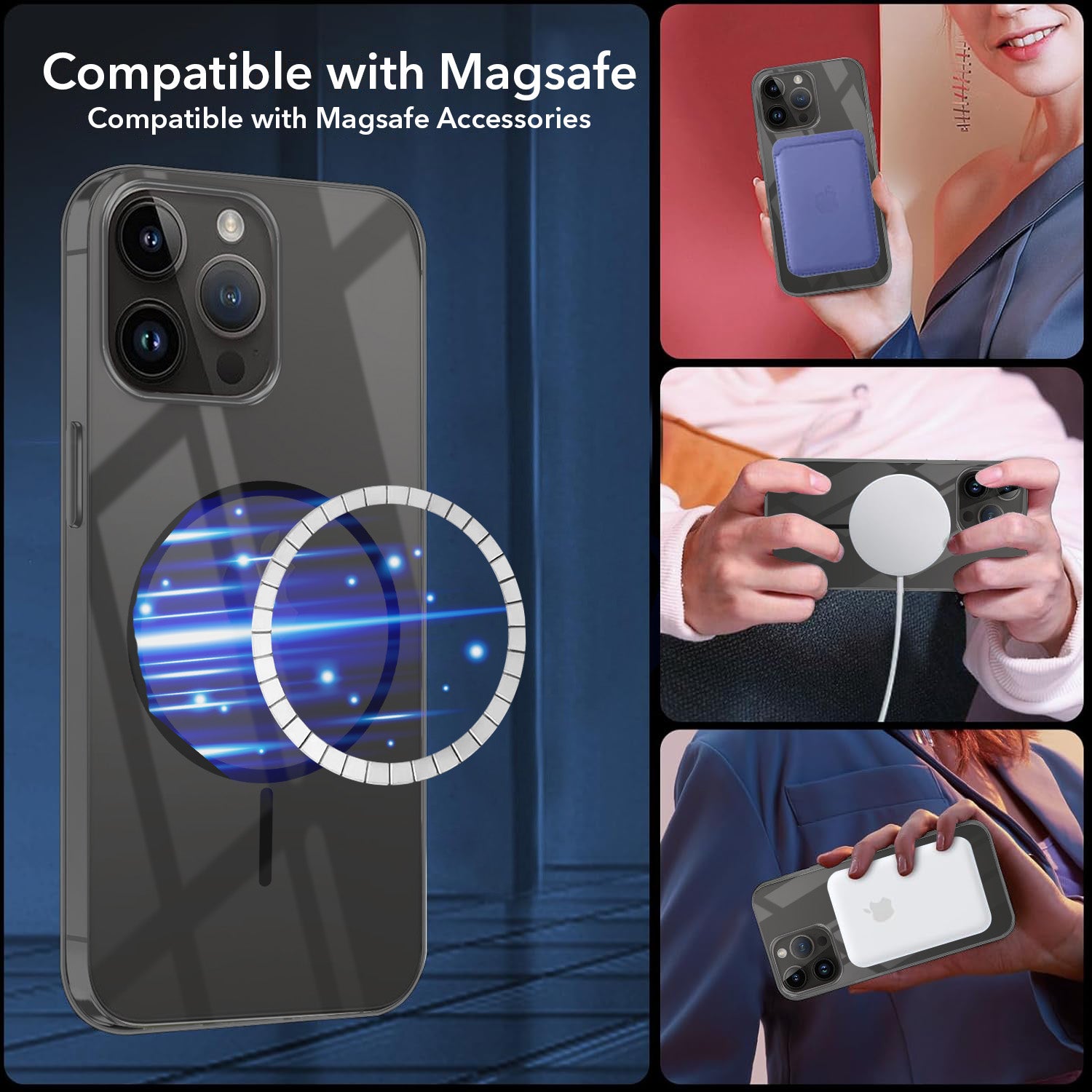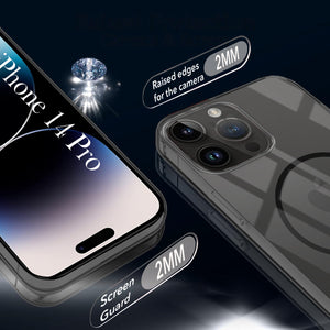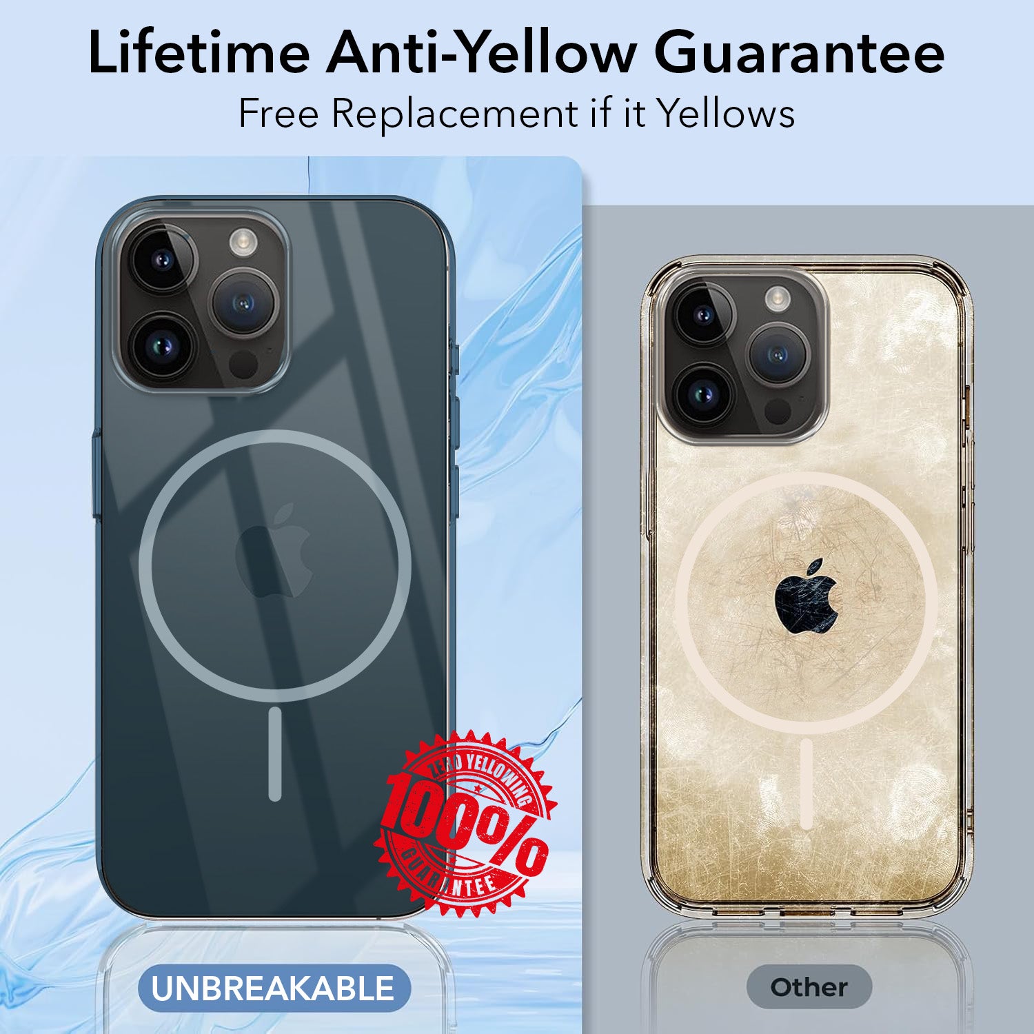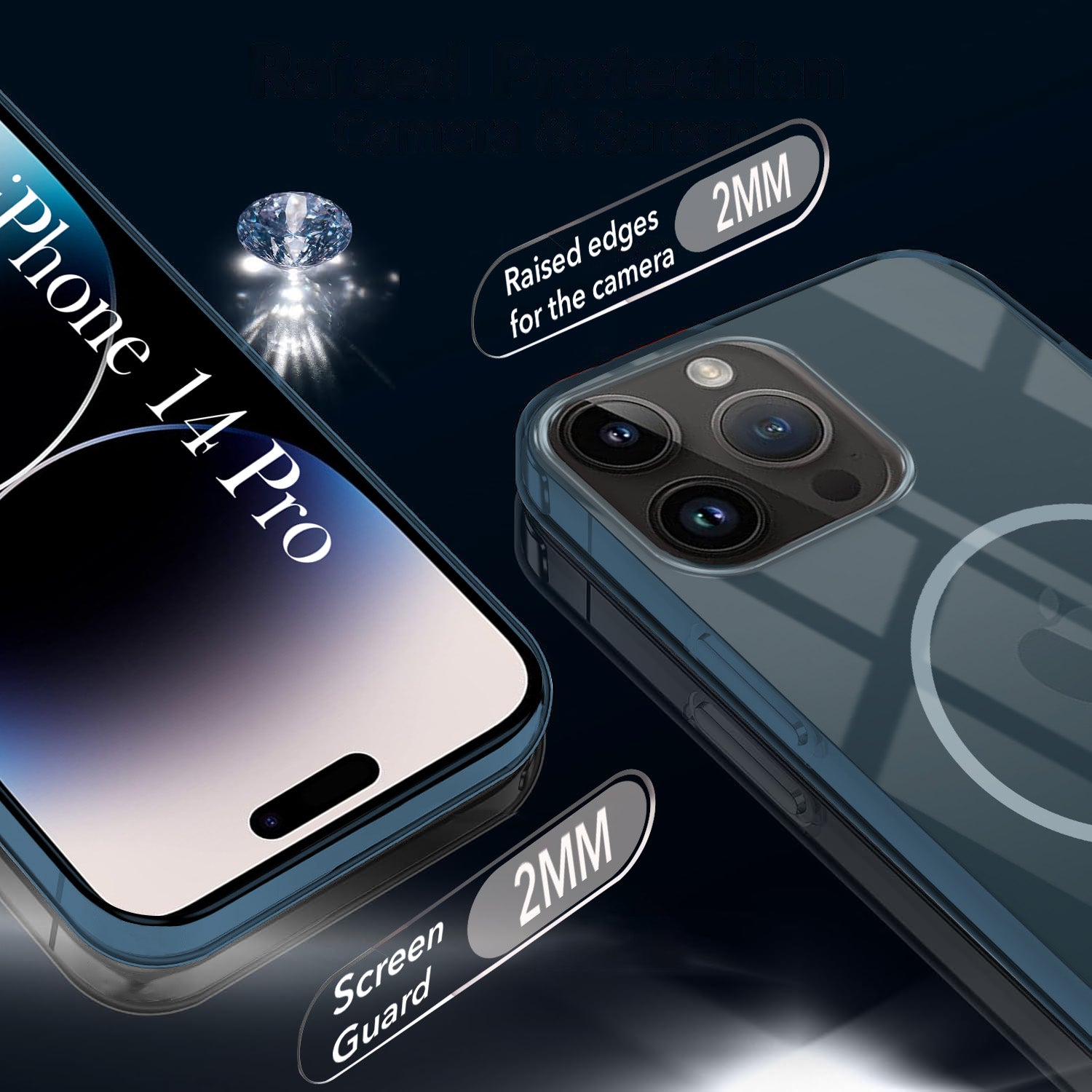 For Apple iPhone 14 Pro Back Cover Case (Crystal Clear Case | MagSafe Wireless Charging Support | Hard Anti Yellow | Camera Protection Bump)