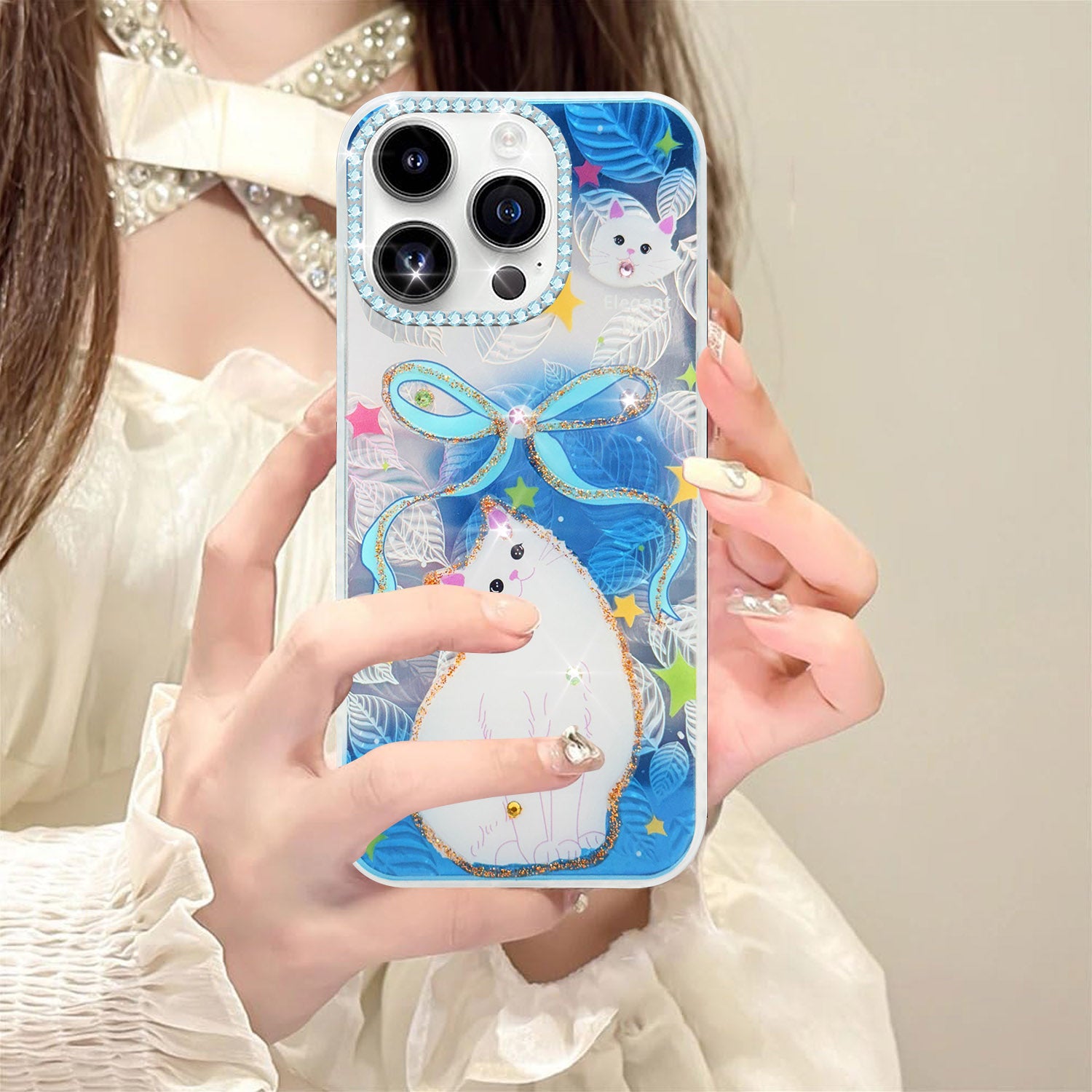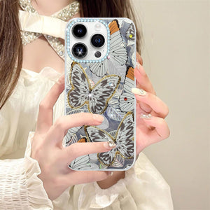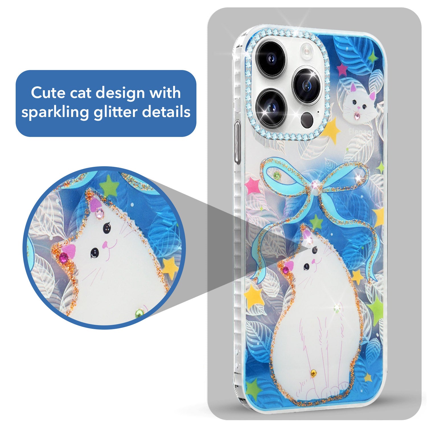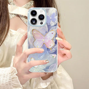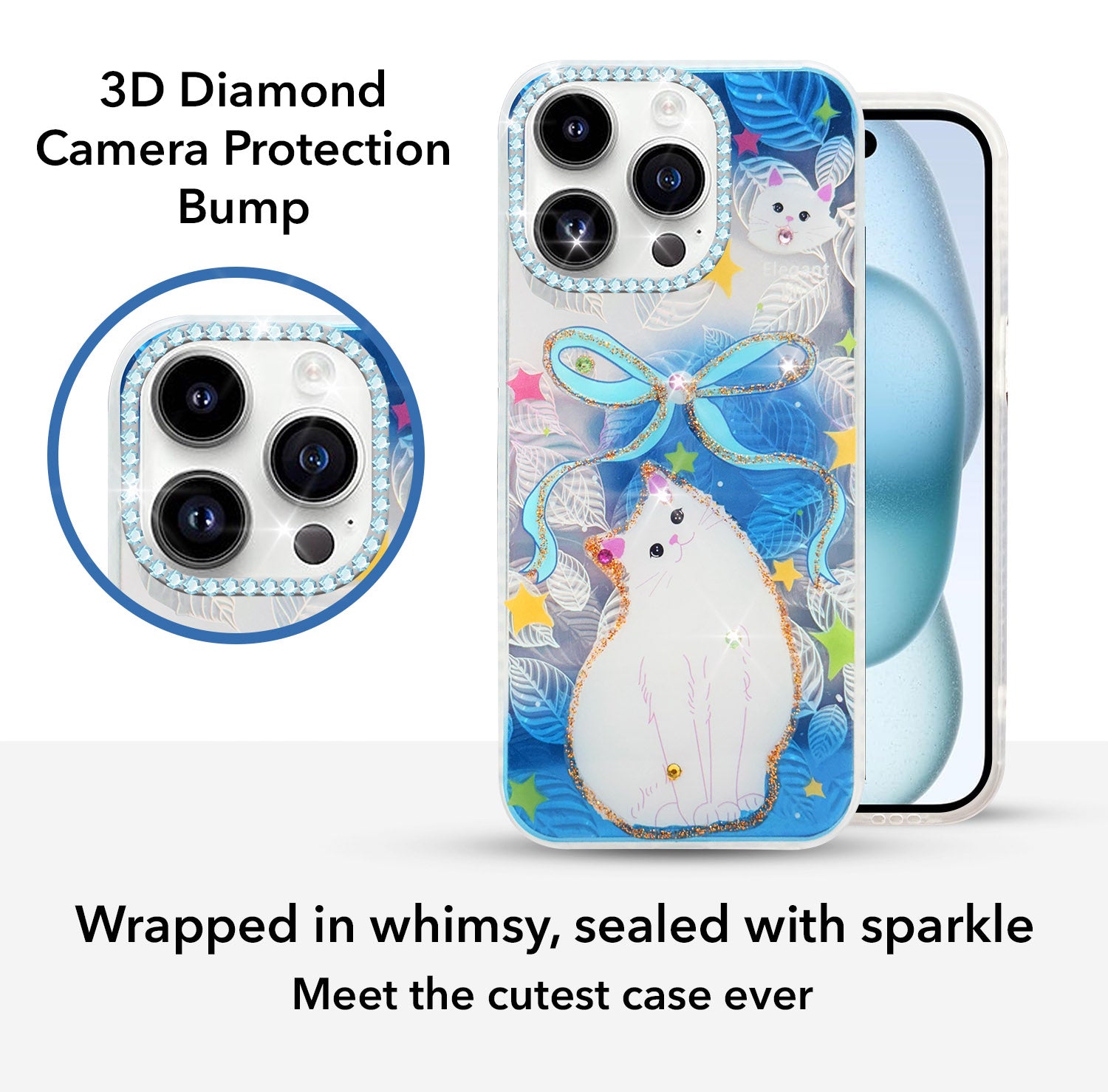 For Apple iPhone 14 Pro Back Cover Case (Luxury Floral Glitter Cute Butterfly | Diamond Studded Camera Bump | Girls & Women Design)