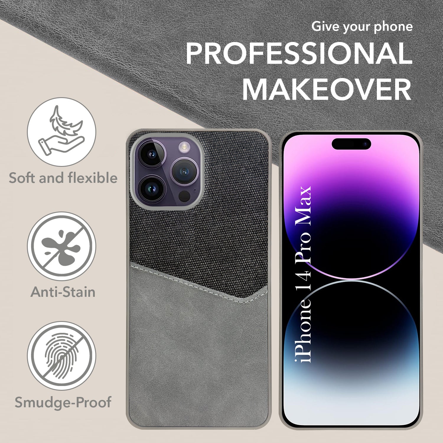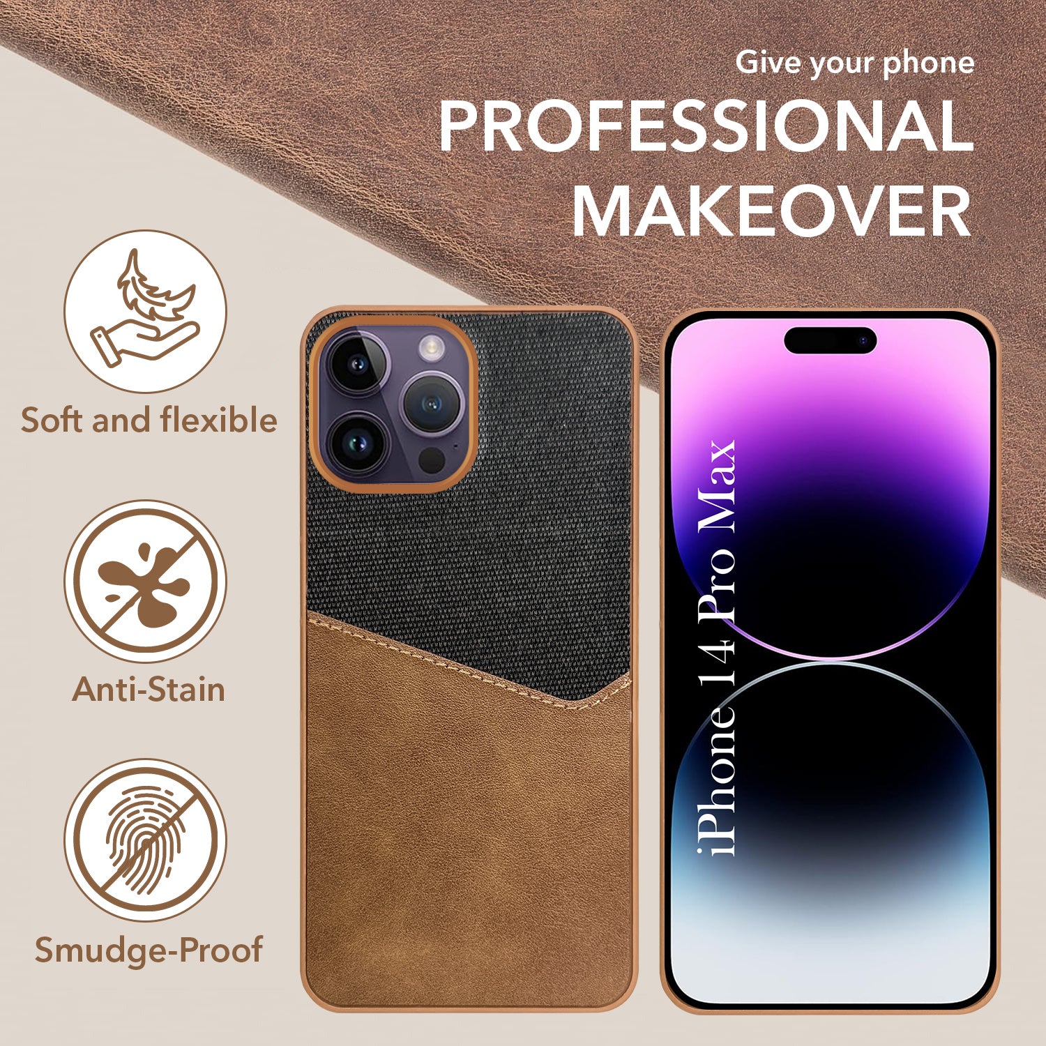 For Apple iPhone 14 Pro Max Back Cover Case (Dual PU Leather Stitch | Professional Minimalist | Soft and Flexible)