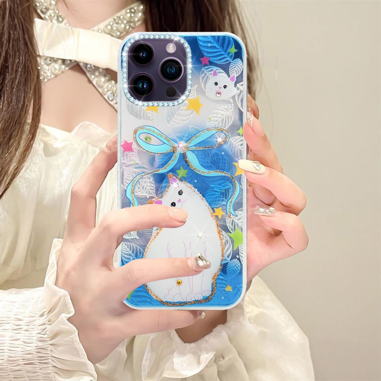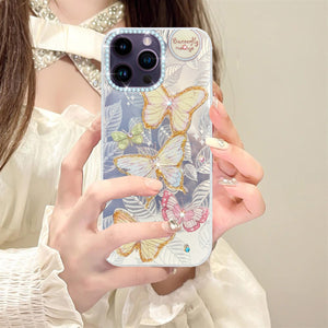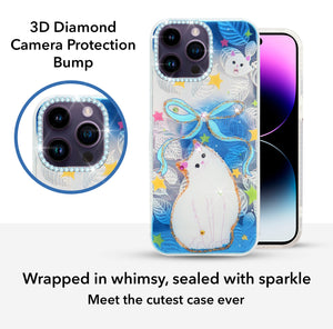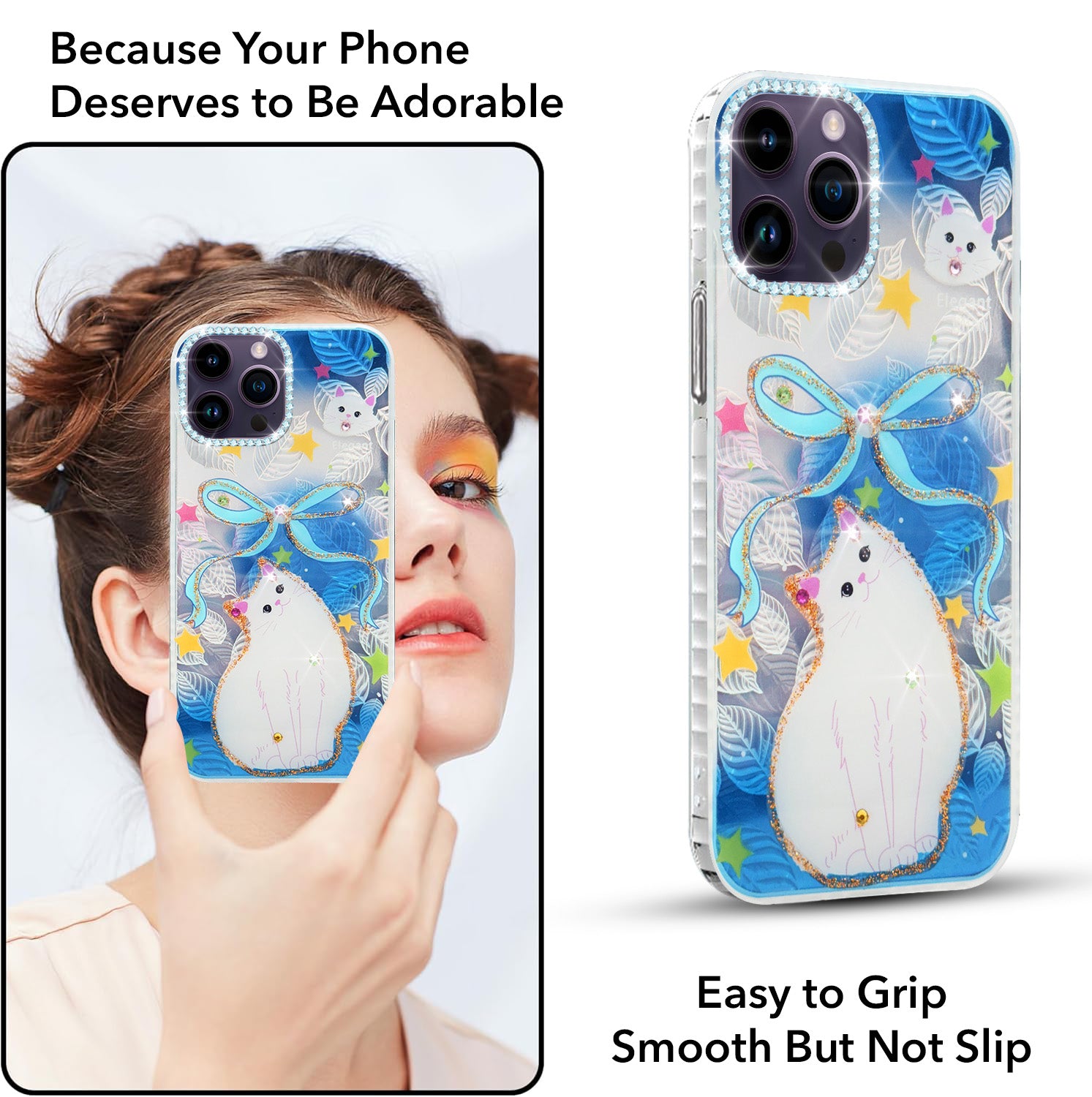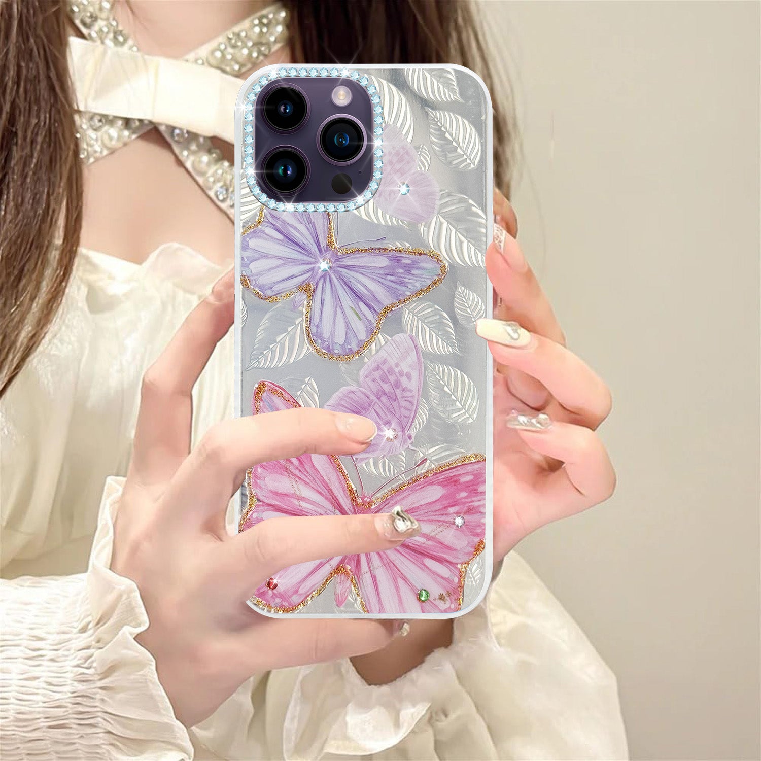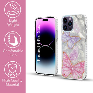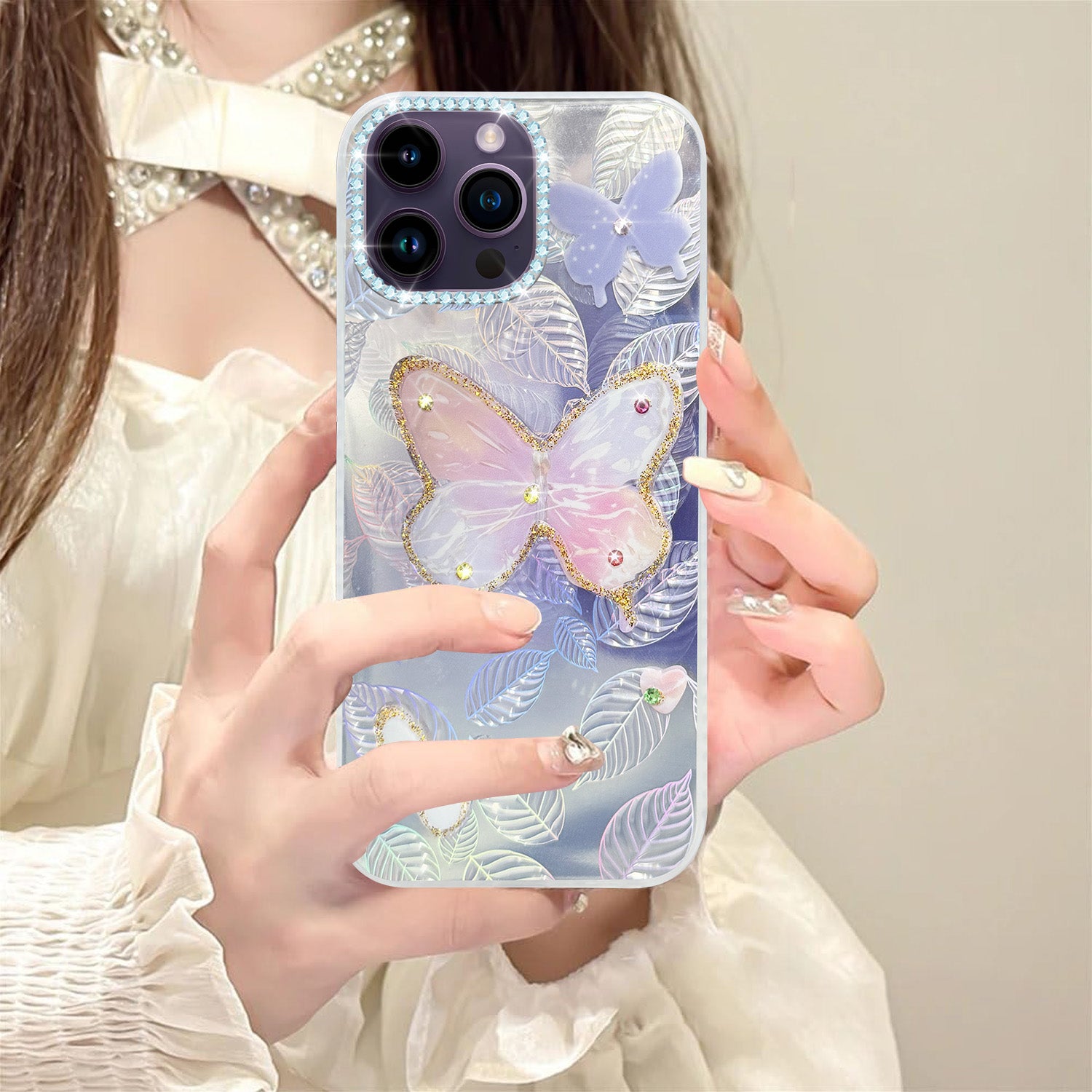 For Apple iPhone 14 Pro Max Back Cover Case (Luxury Floral Glitter Cute Butterfly | Diamond Studded Camera Bump | Girls & Women Design)