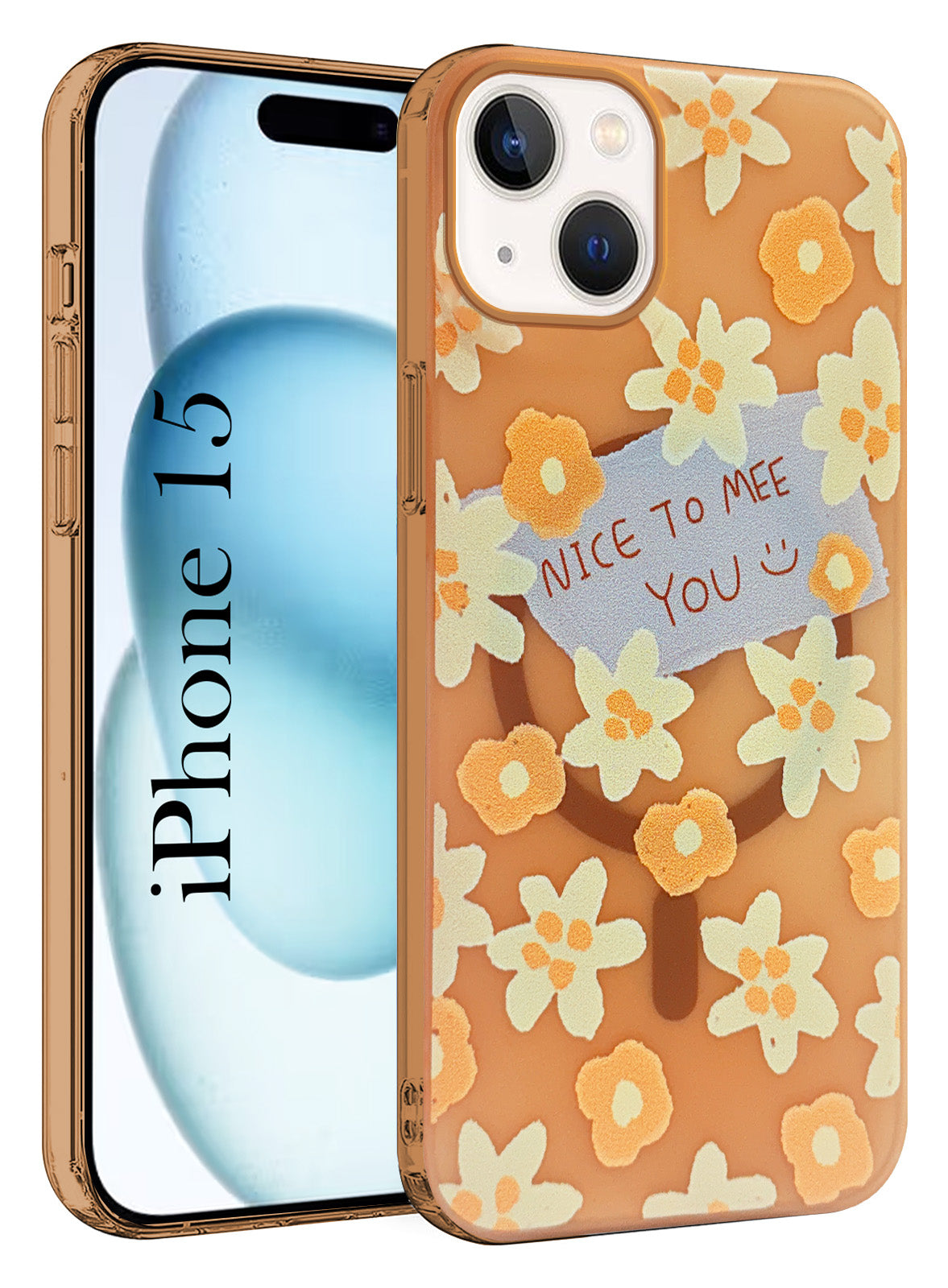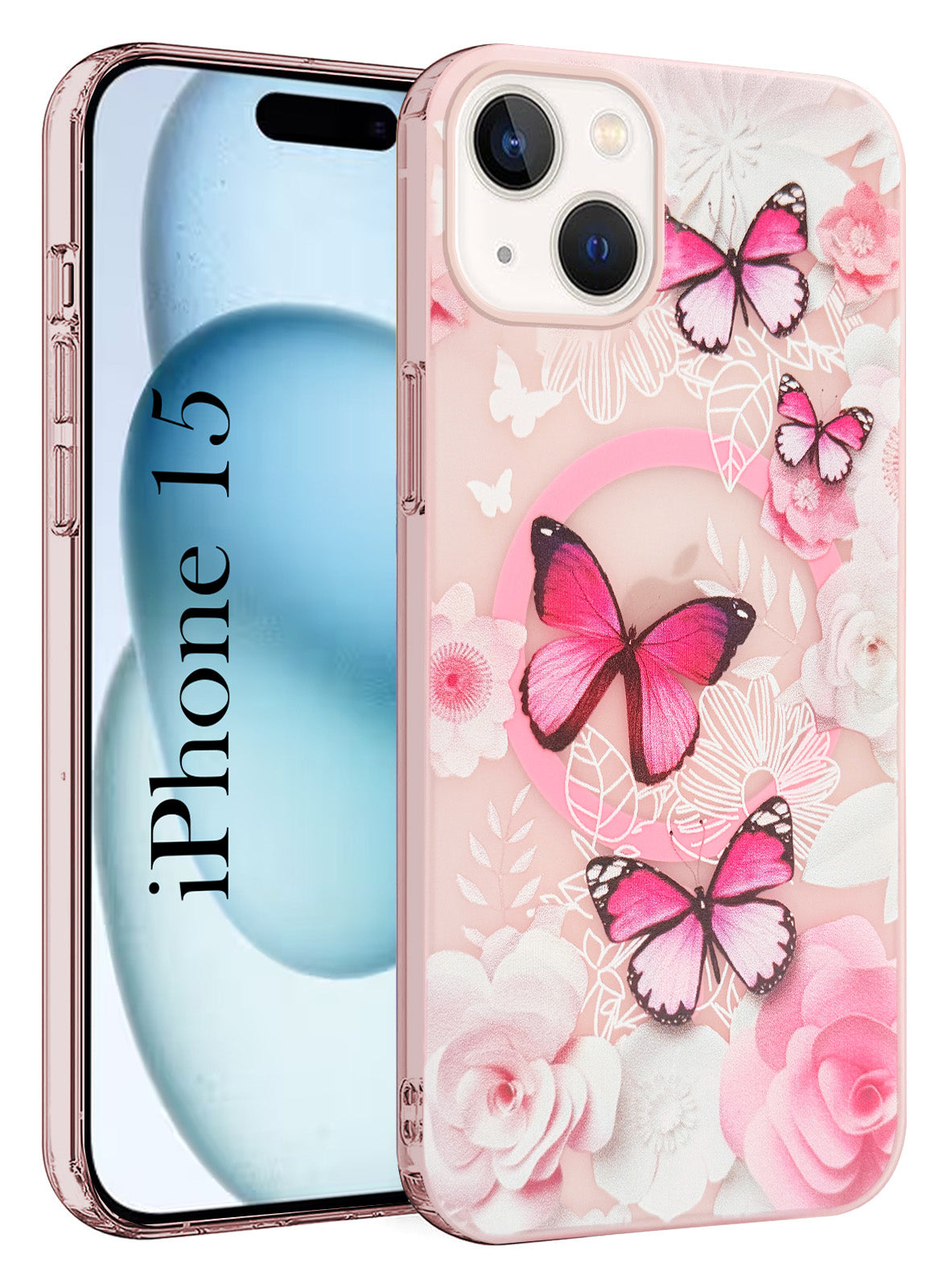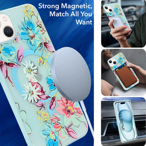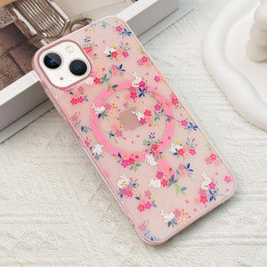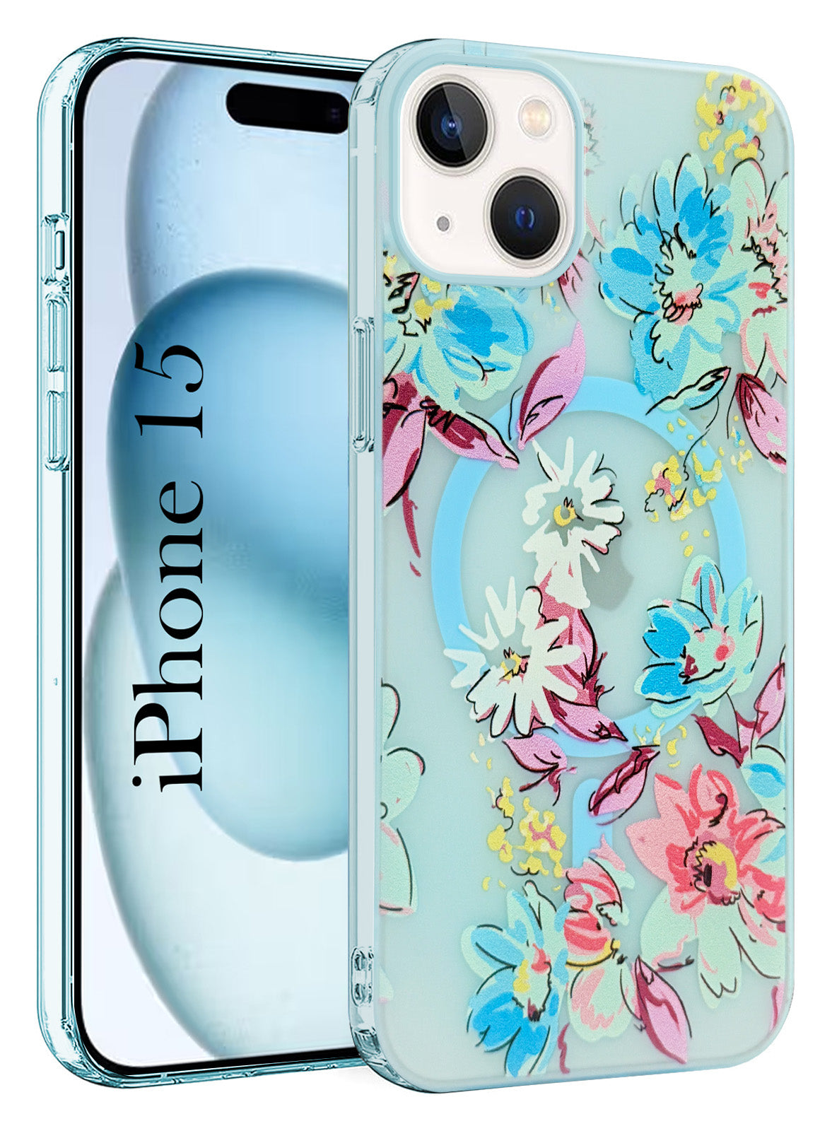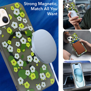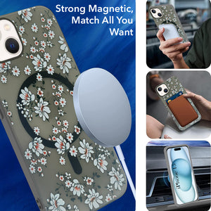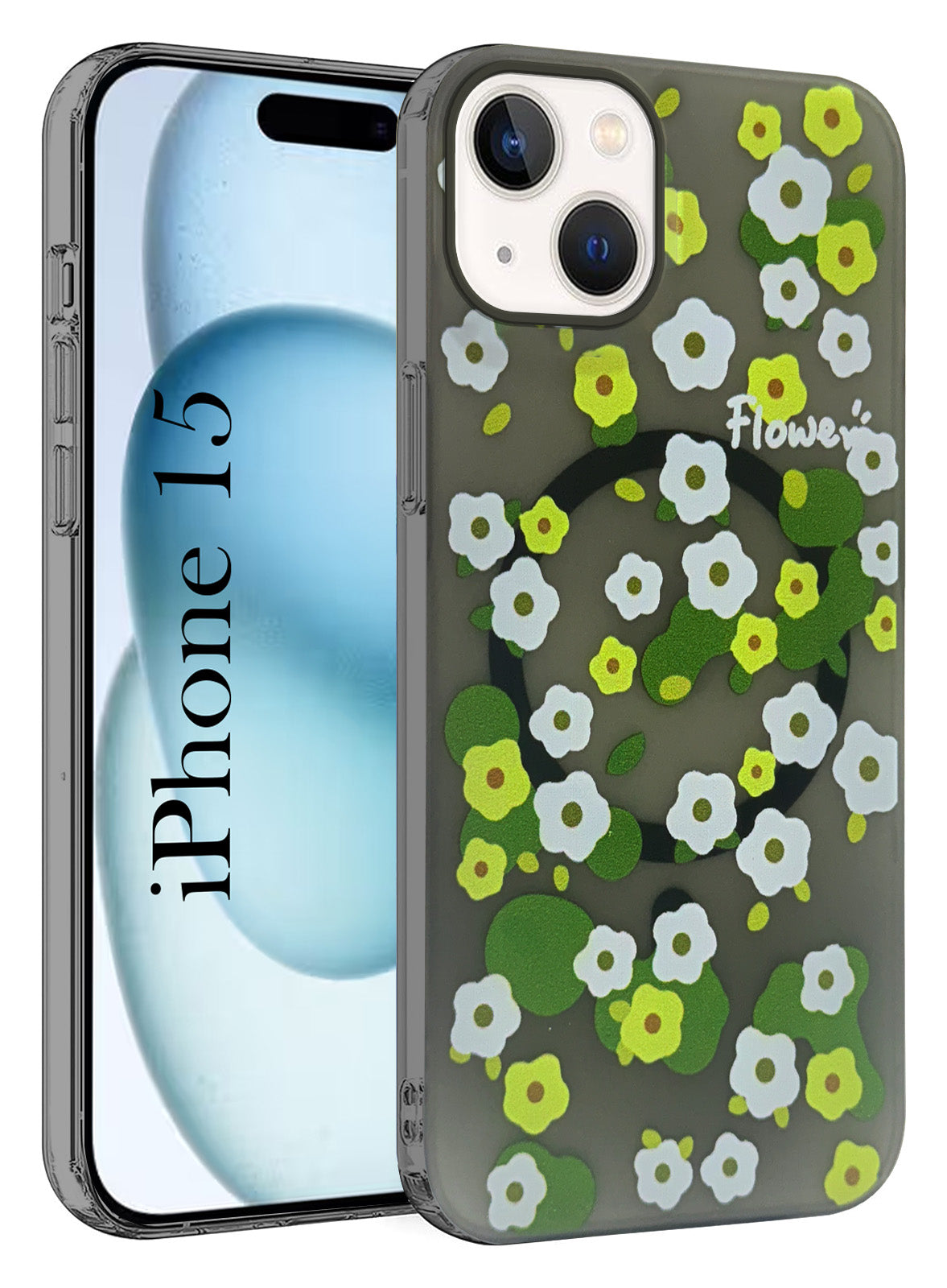 For Apple iPhone 15 Back Cover Case (Cute Floral Design | Flower Print for Girls | MagSafe Compatible Wireless Charging)