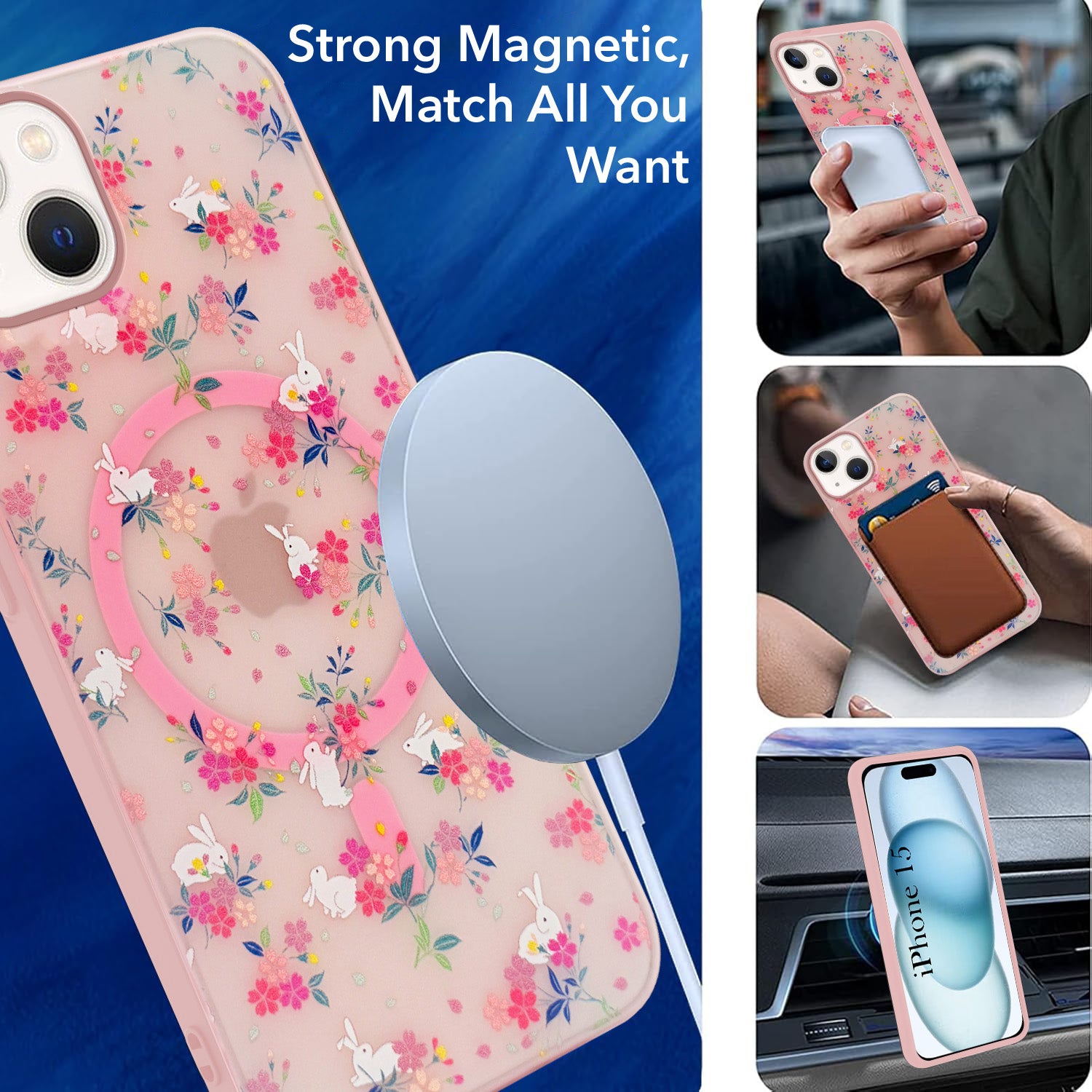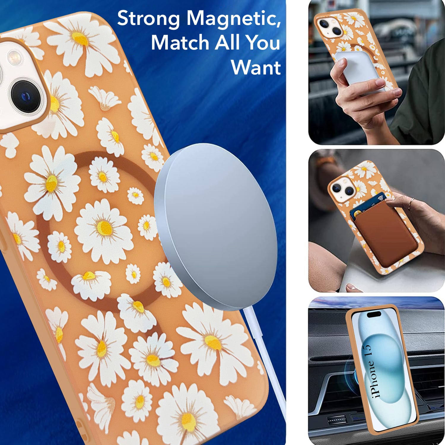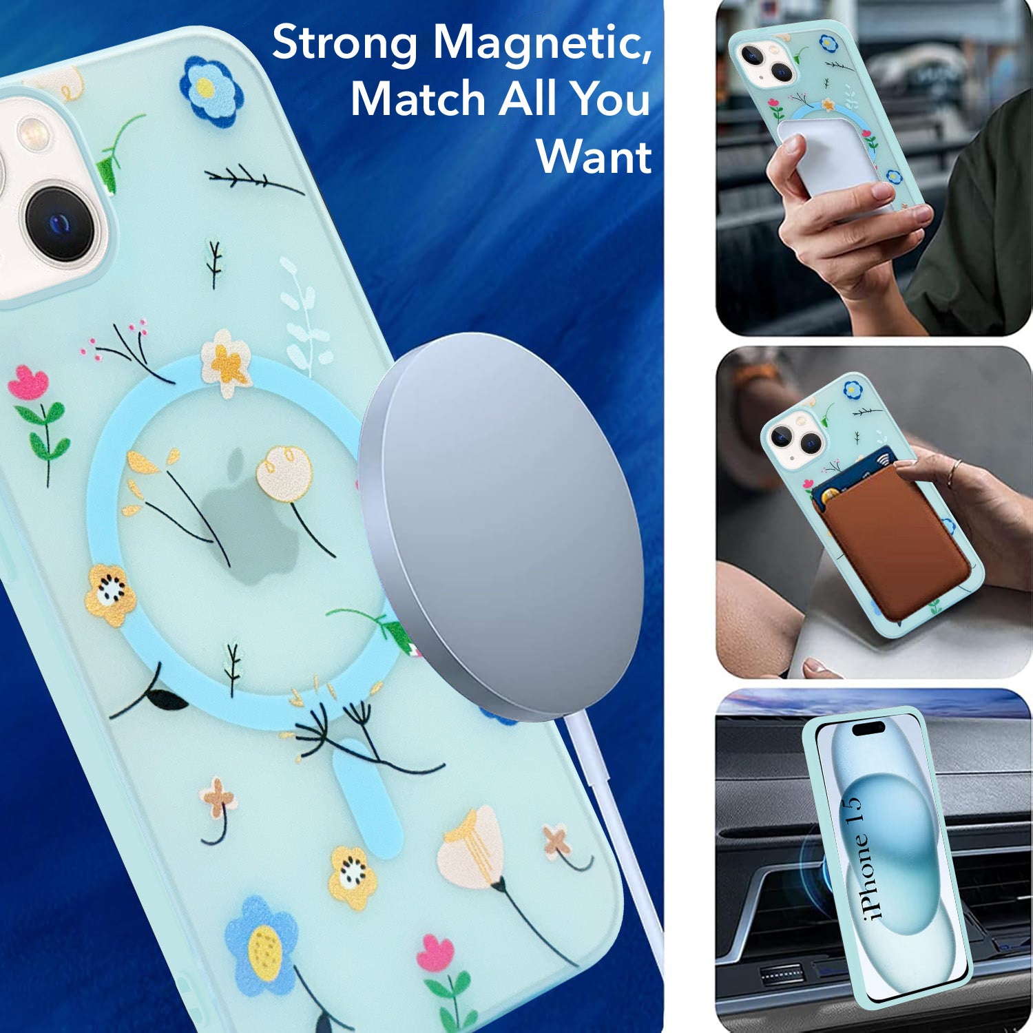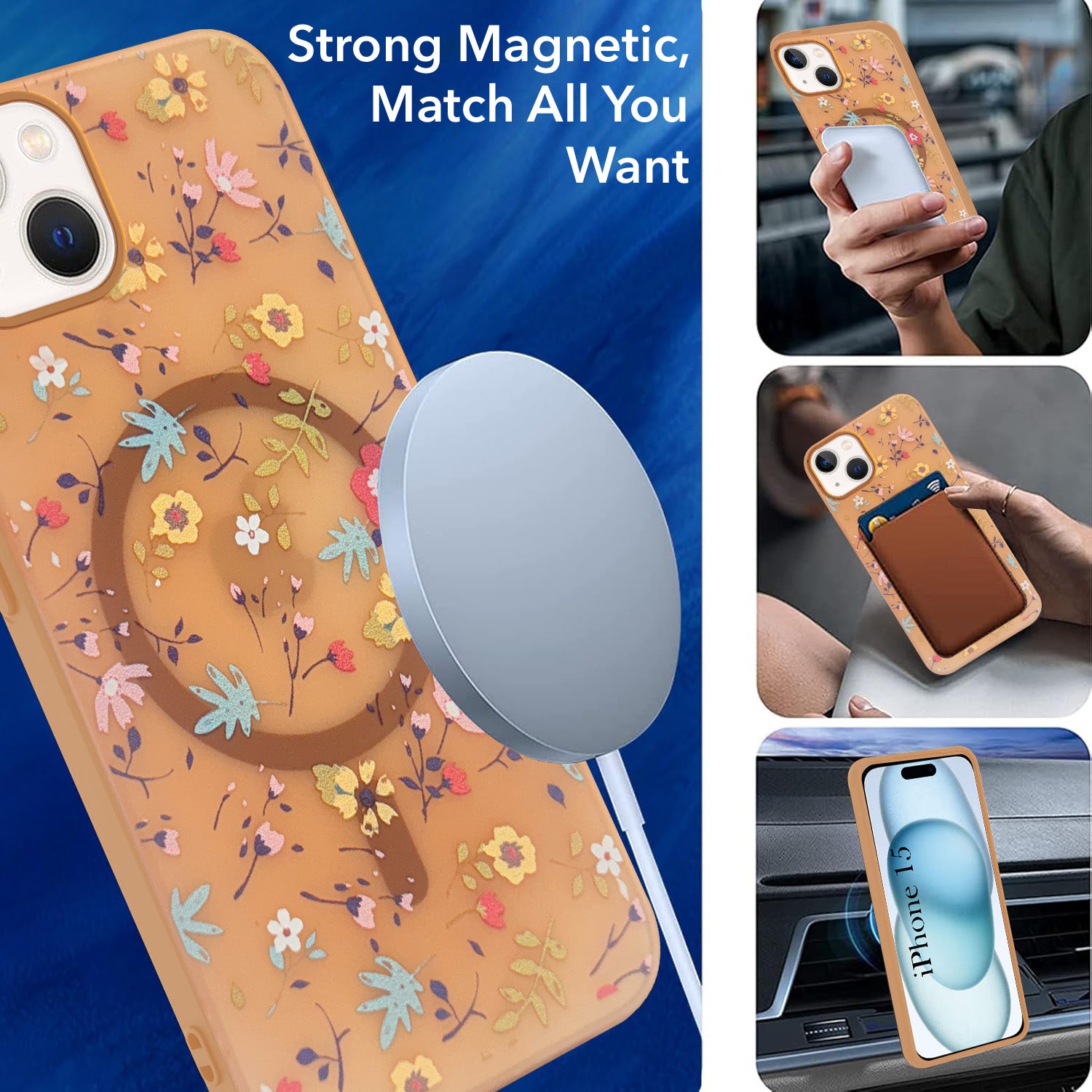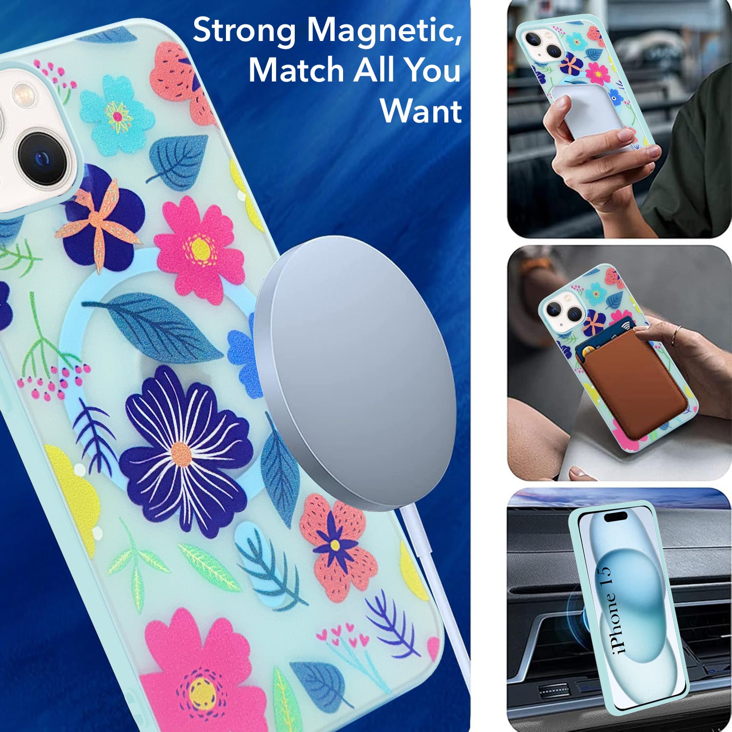 For Apple iPhone 15 Back Cover Case (Cute Floral Design | Flower Print for Girls | MagSafe Compatible Wireless Charging)
