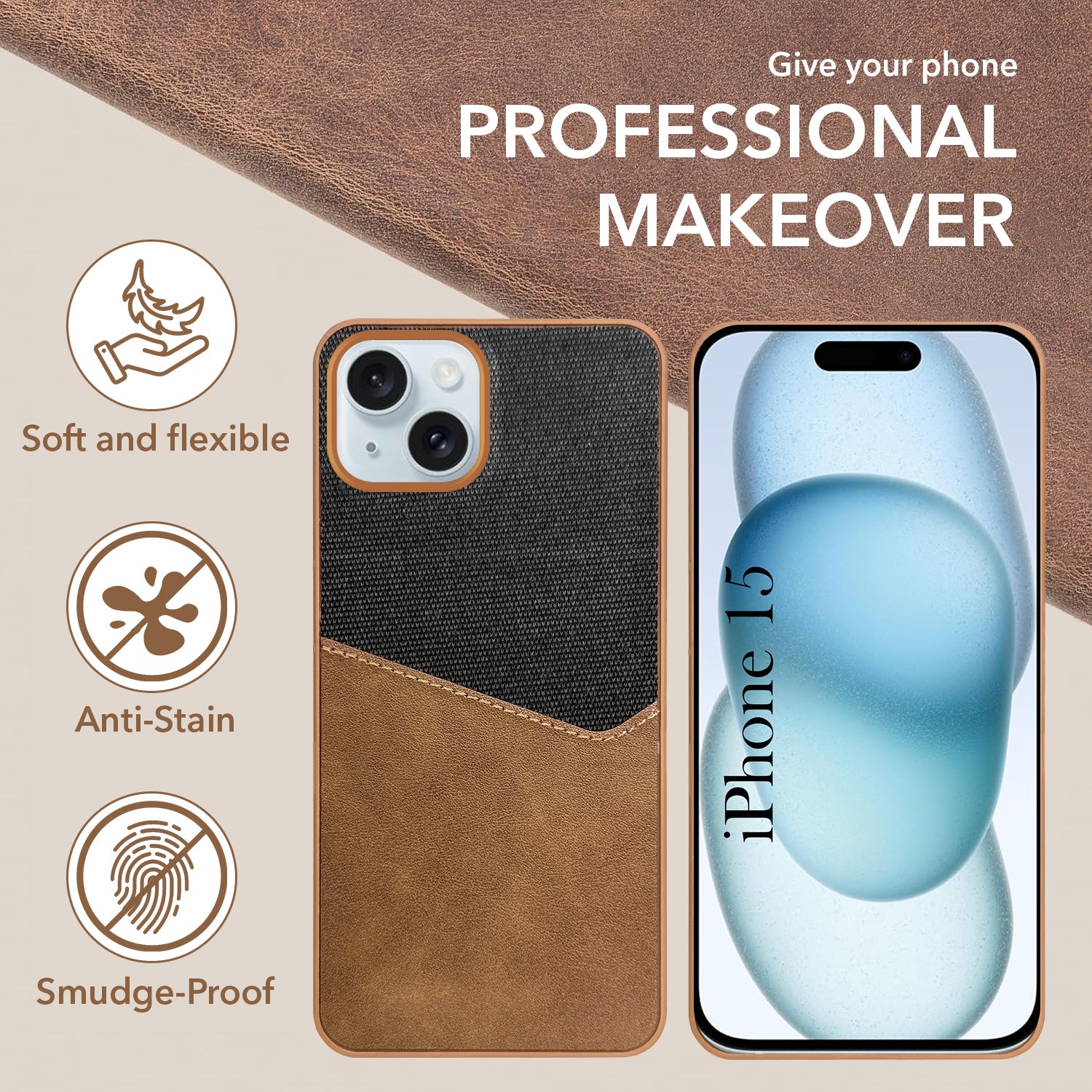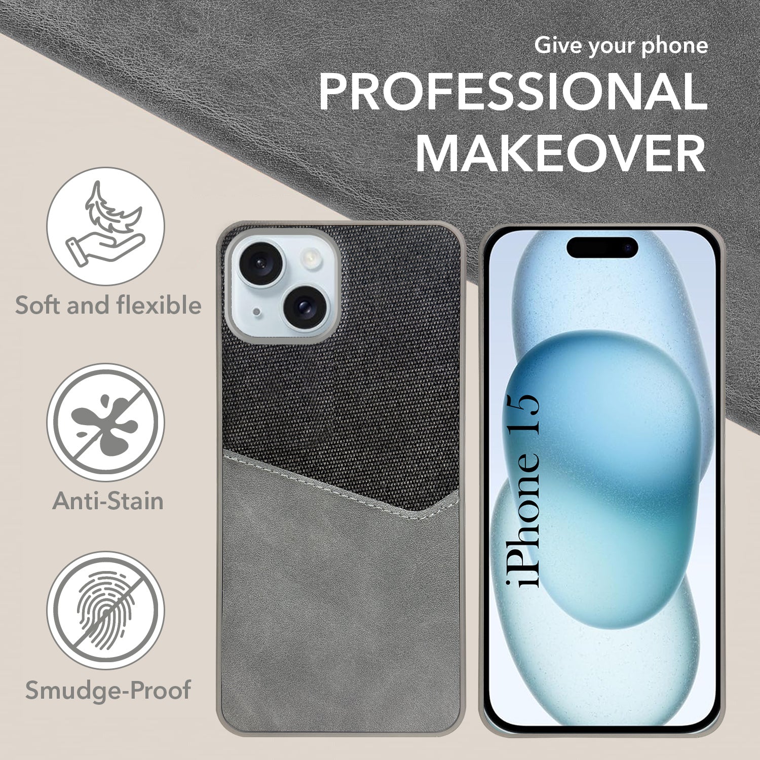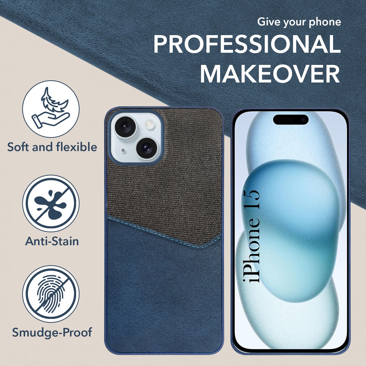 For Apple iPhone 15 Back Cover Case (Dual PU Leather Stitch | Professional Minimalist | Soft and Flexible)