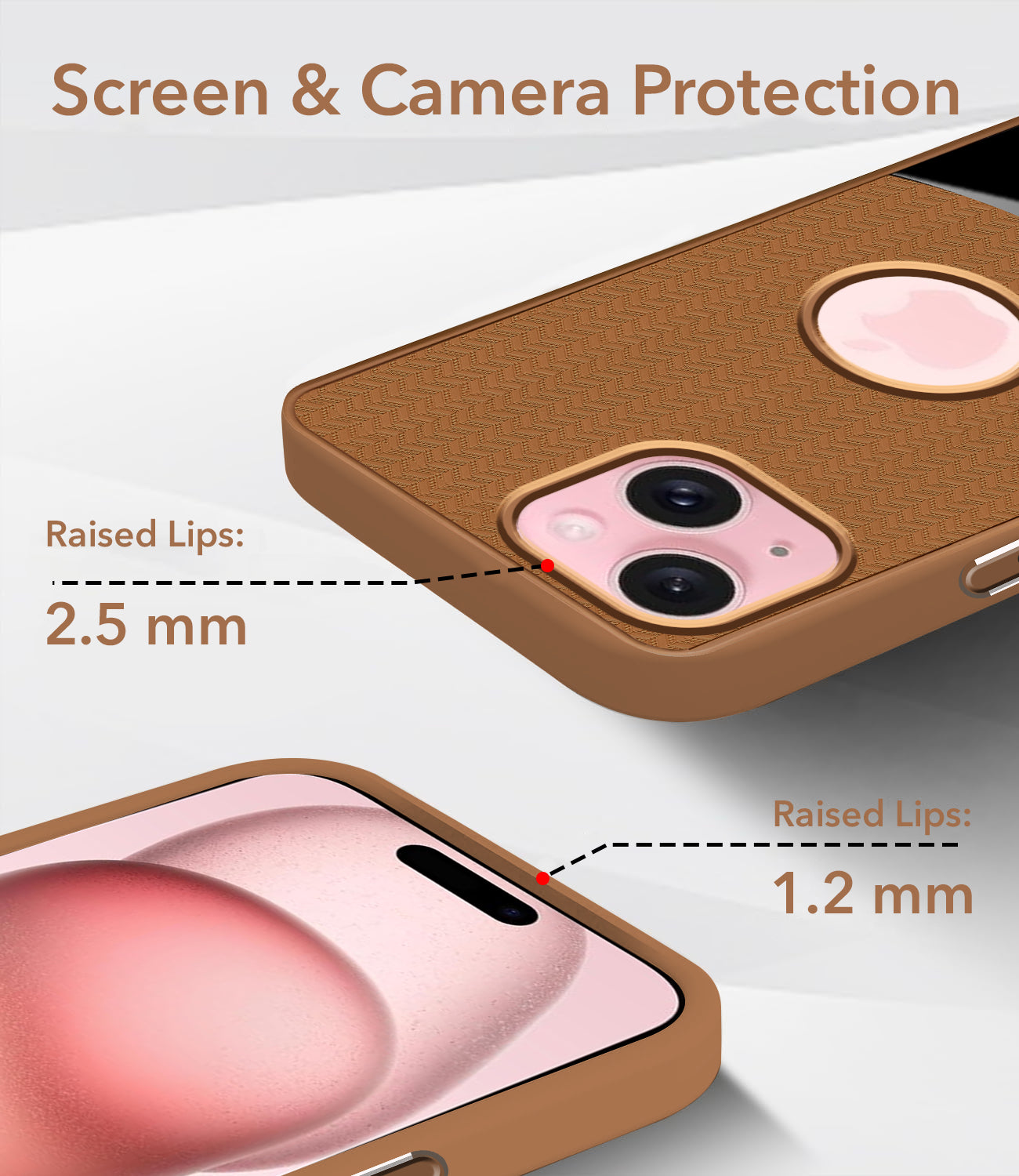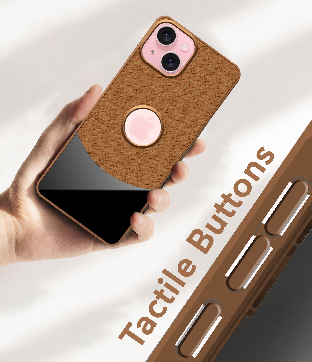 For Apple iPhone 15 Back Cover Case (Elegant PU Leather Finish | Premium Minimalist Professional | Camera Protection Bump)
