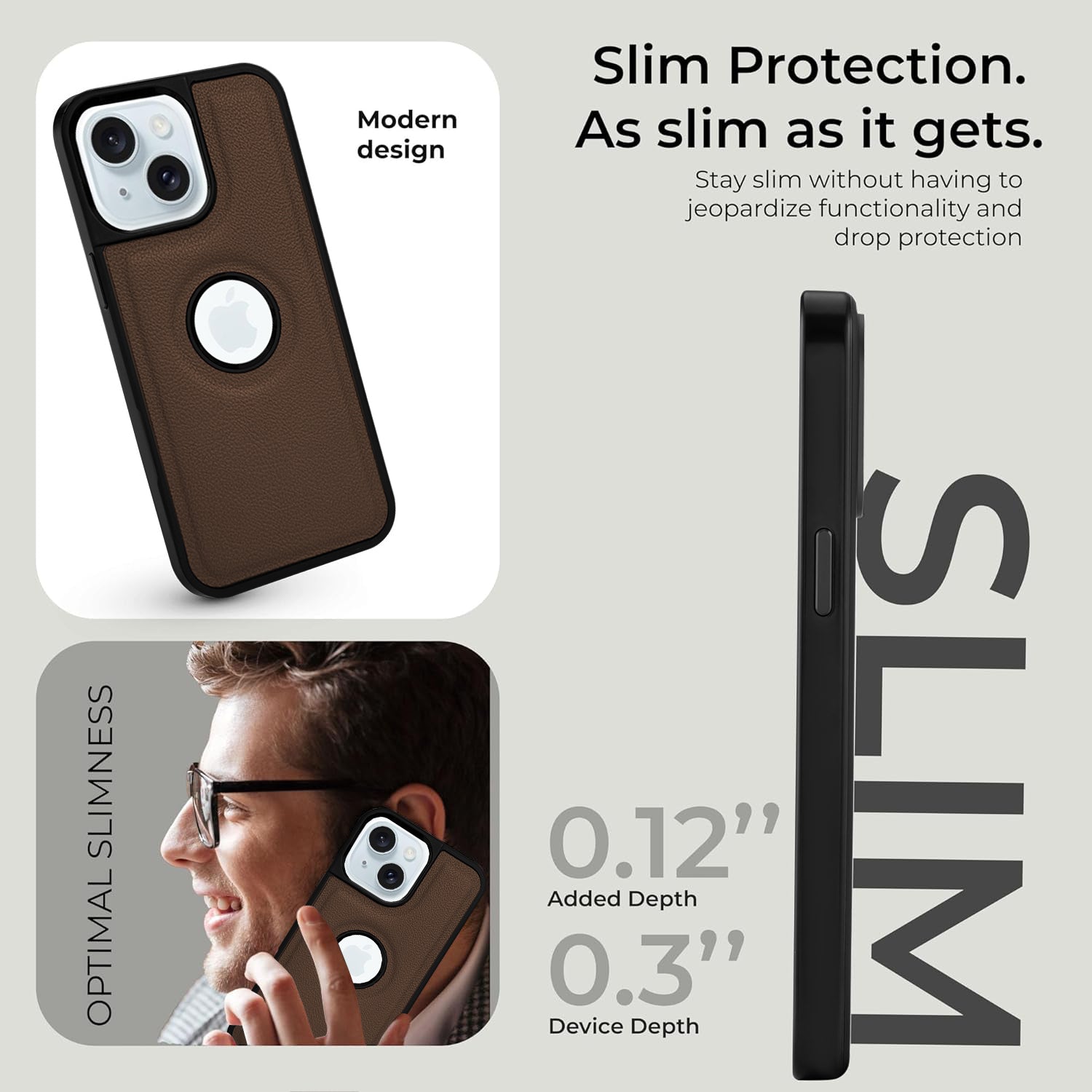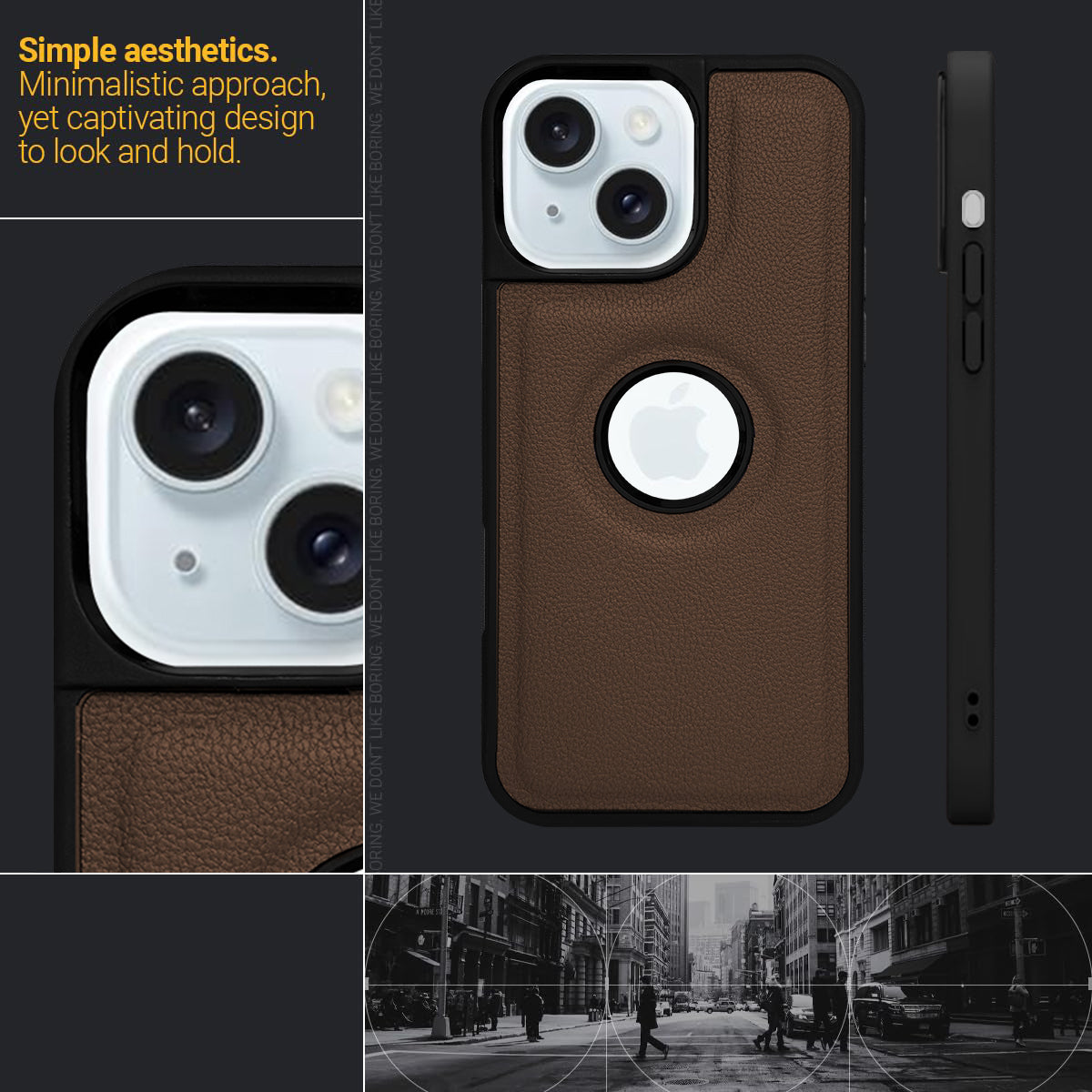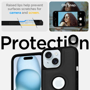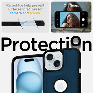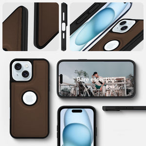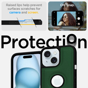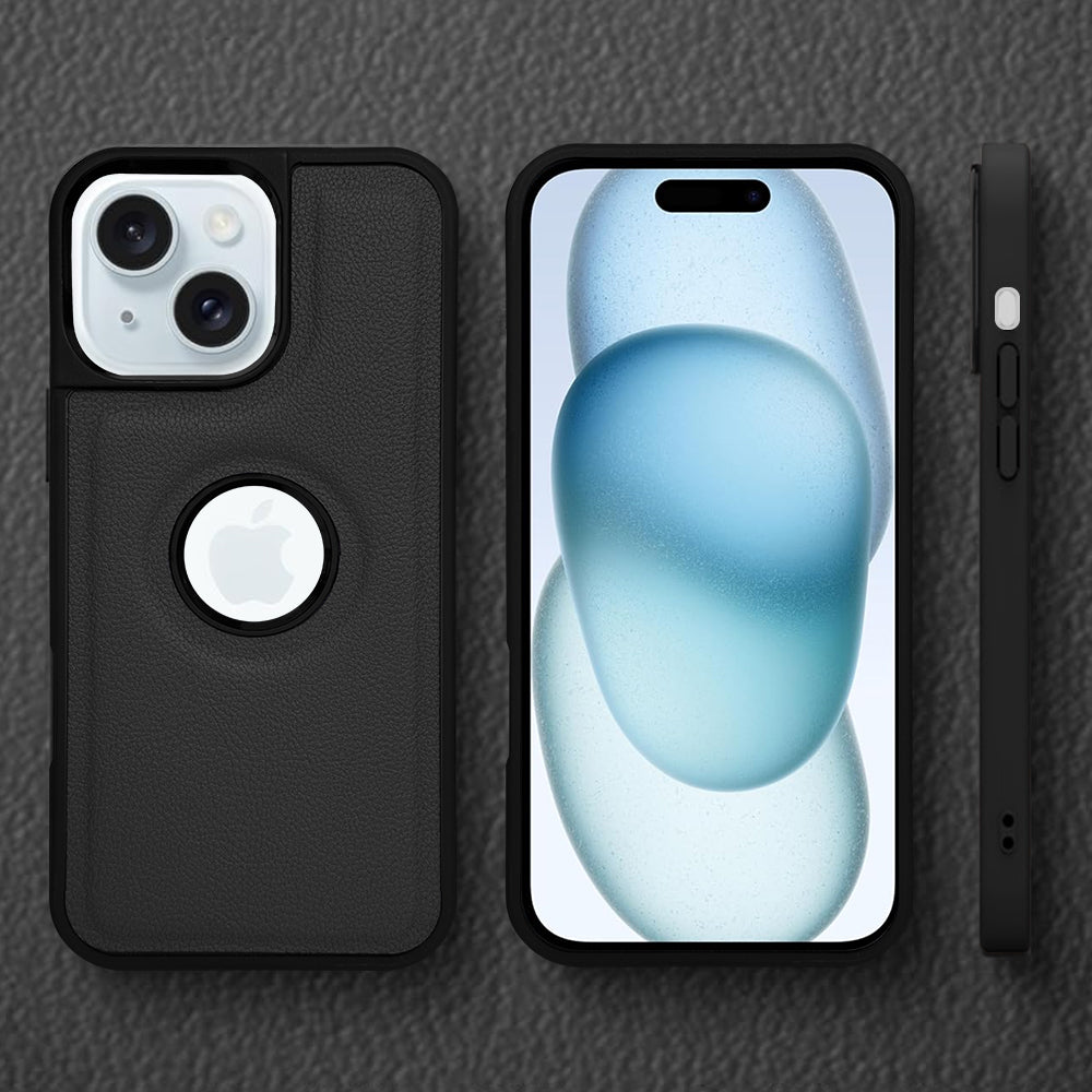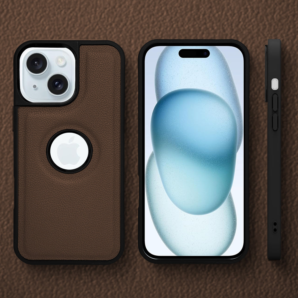 For Apple iPhone 15 Back Cover Case (Minimalist Design Stitched Leather | Shockproof Raised Edges for Camera & Screen Protection)