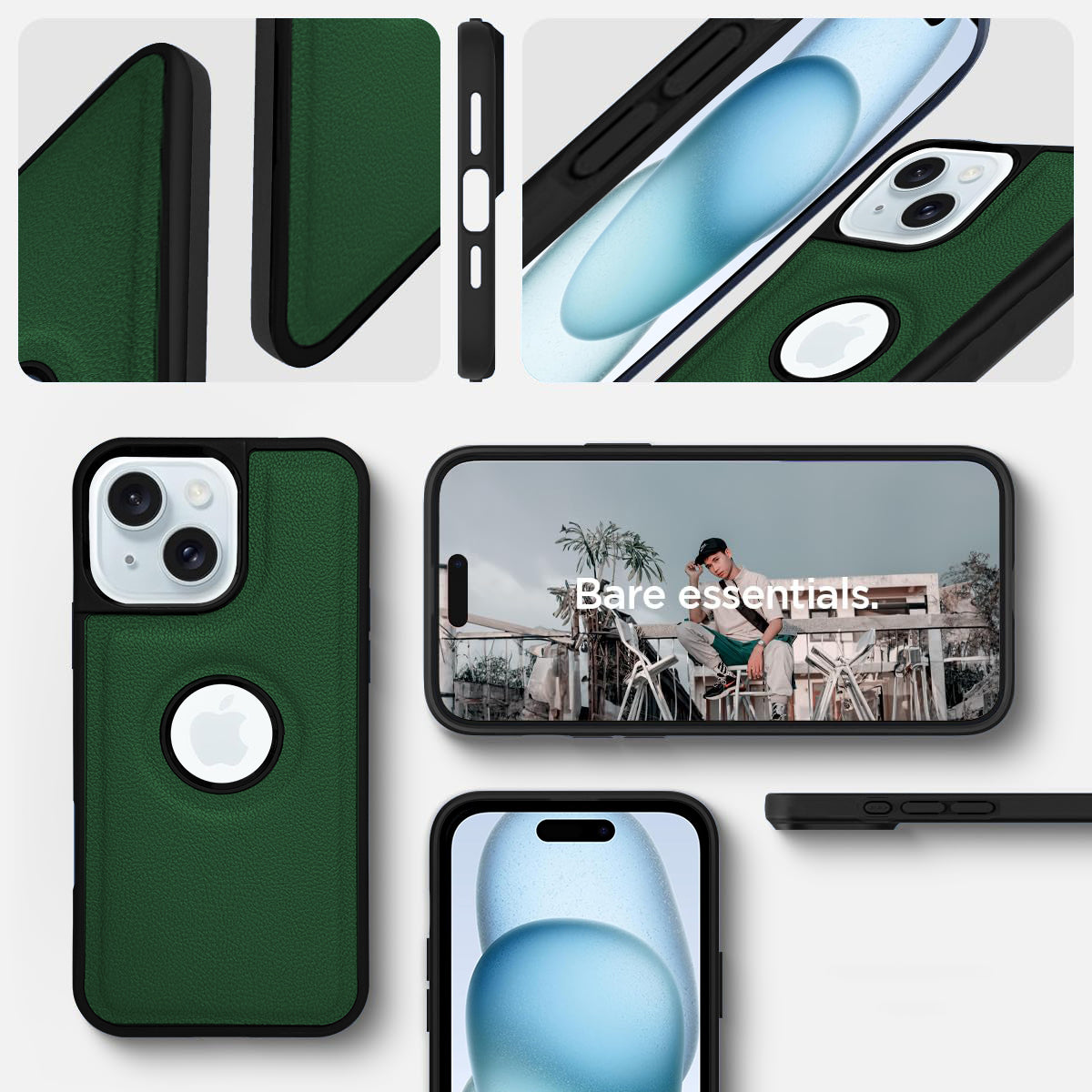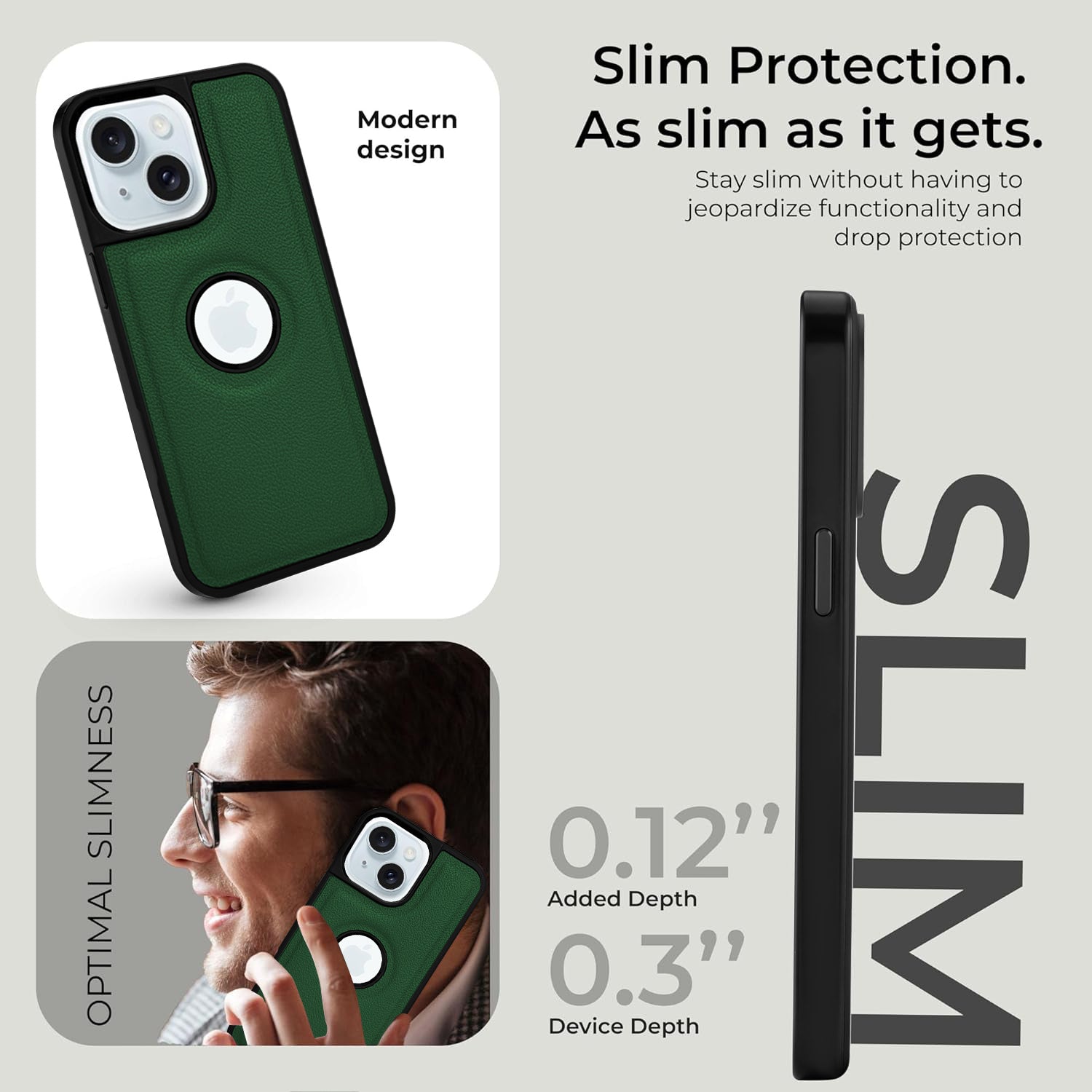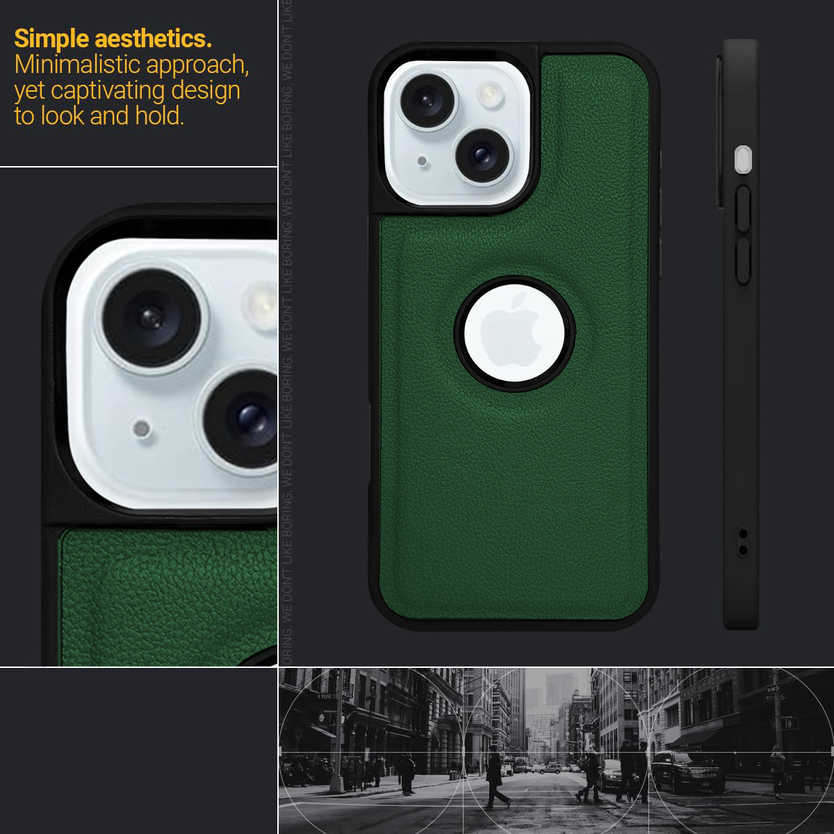 For Apple iPhone 15 Back Cover Case (Minimalist Design Stitched Leather | Shockproof Raised Edges for Camera & Screen Protection)