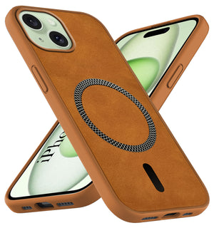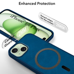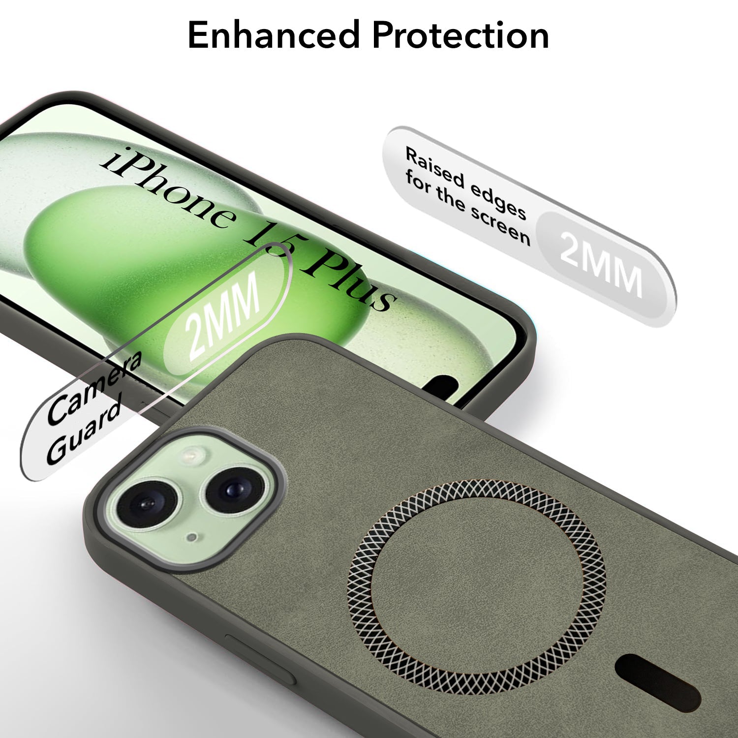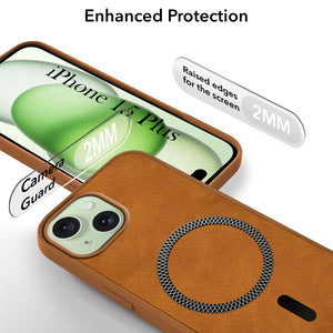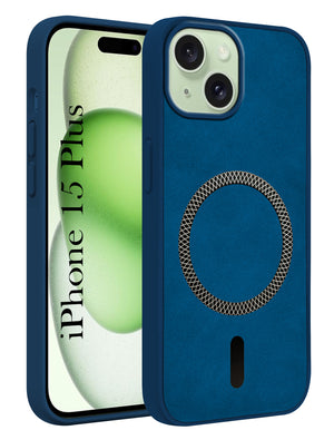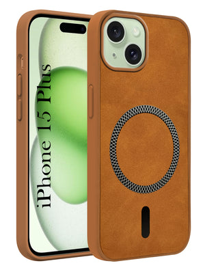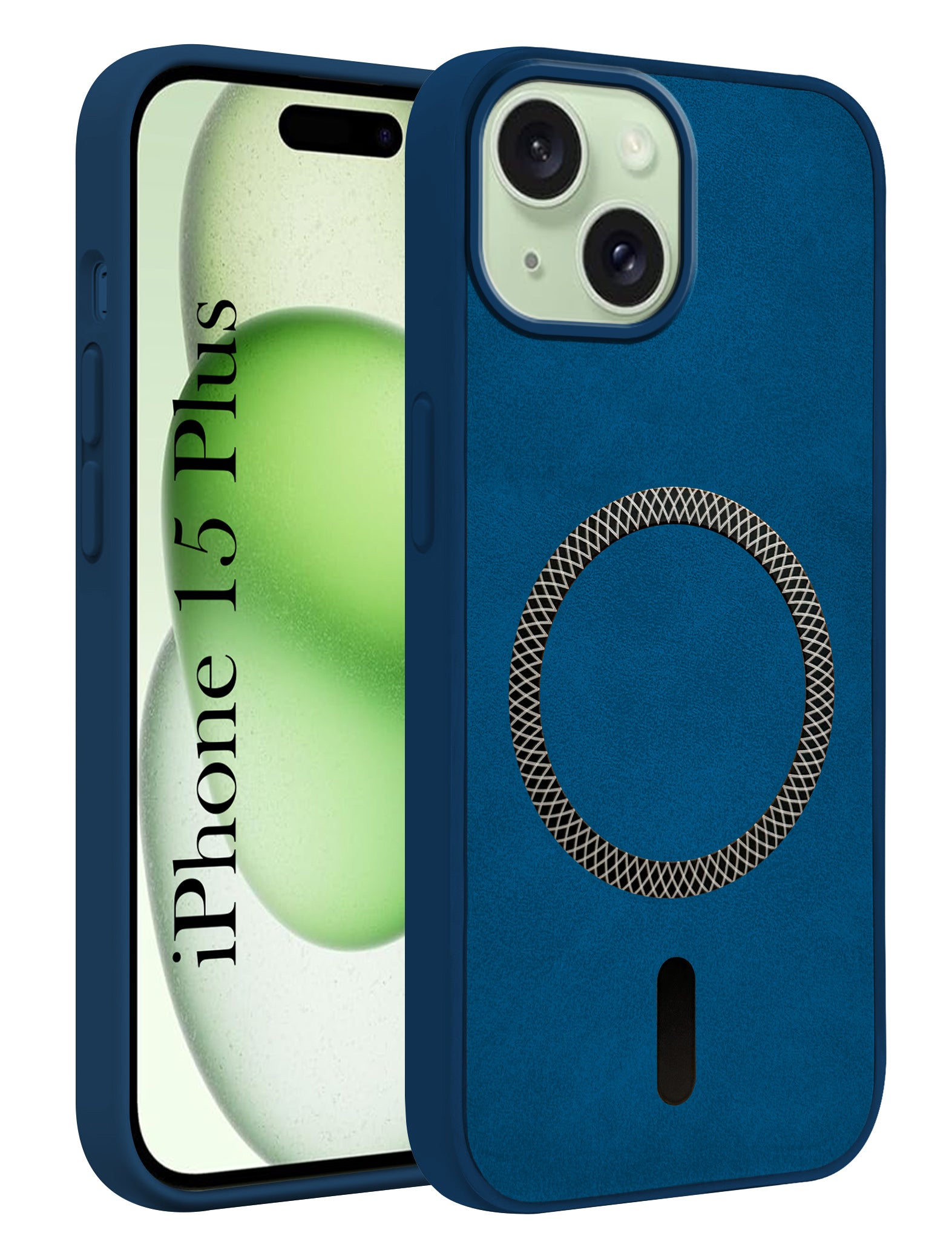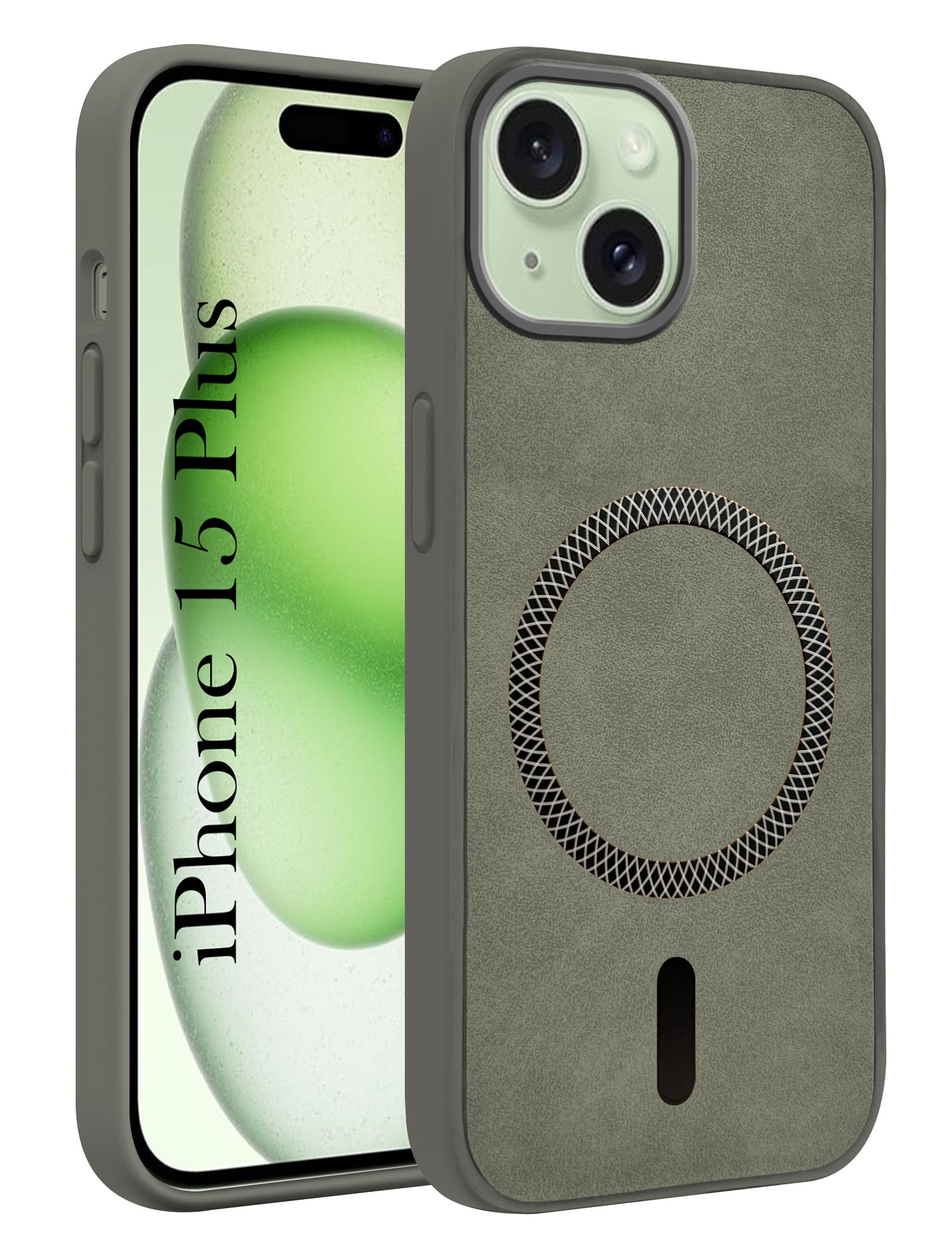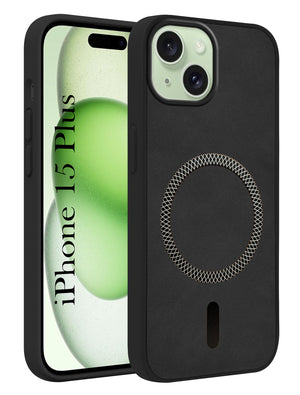 For Apple iPhone 15 Plus Back Cover Case (Sleek Leather Finish | MagSafe Compatible Wireless Charging | Camera Bump Protection)
