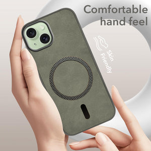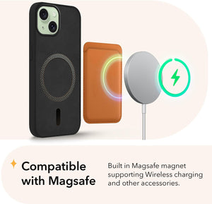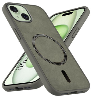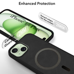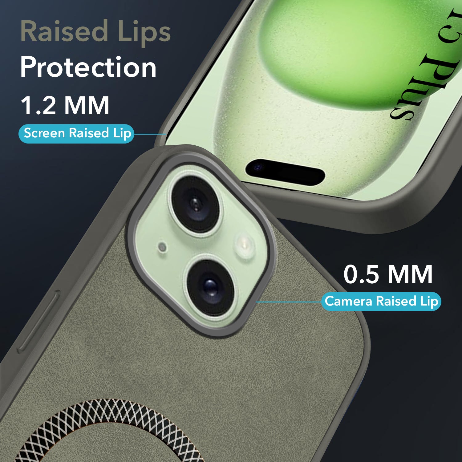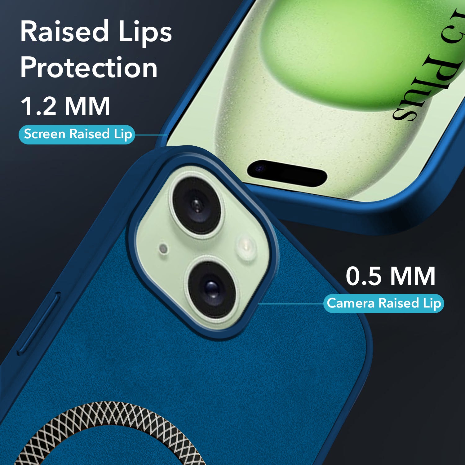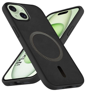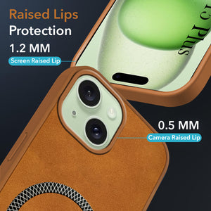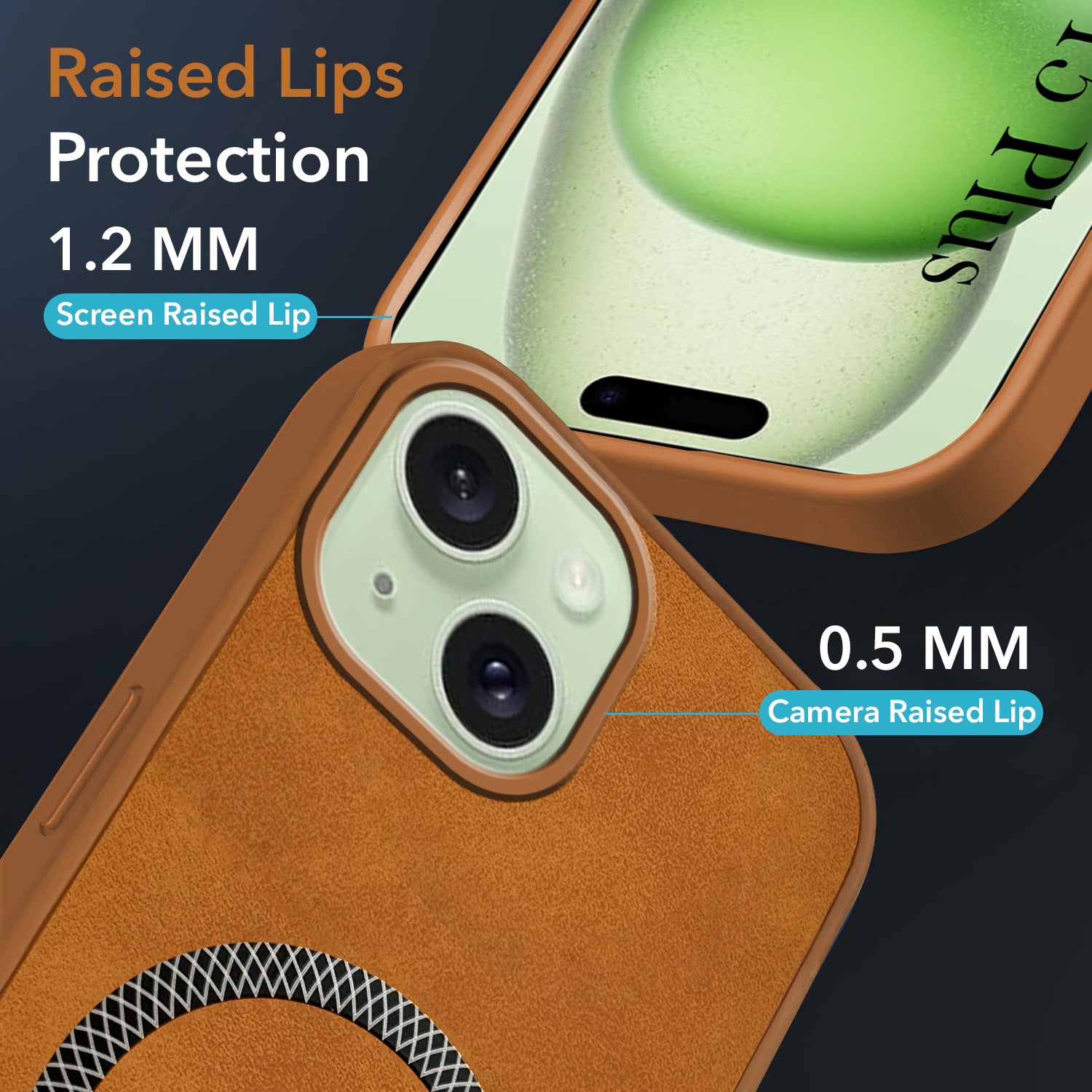 For Apple iPhone 15 Plus Back Cover Case (Sleek Leather Finish | MagSafe Compatible Wireless Charging | Camera Bump Protection)