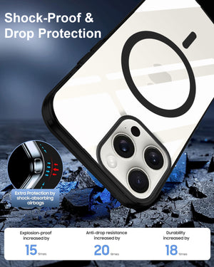 For Apple iPhone 15 Pro Back Cover Case ( Black MagSafe Compatible Wireless Charging | Hybrid Camera Bump Protection | Shockproof Polycarbonate