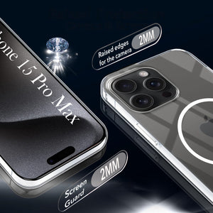 For Apple iPhone 15 Pro Max Back Cover Case (Crystal Clear Case | MagSafe Wireless Charging Support | Hard Anti Yellow | Camera Protection Bump)