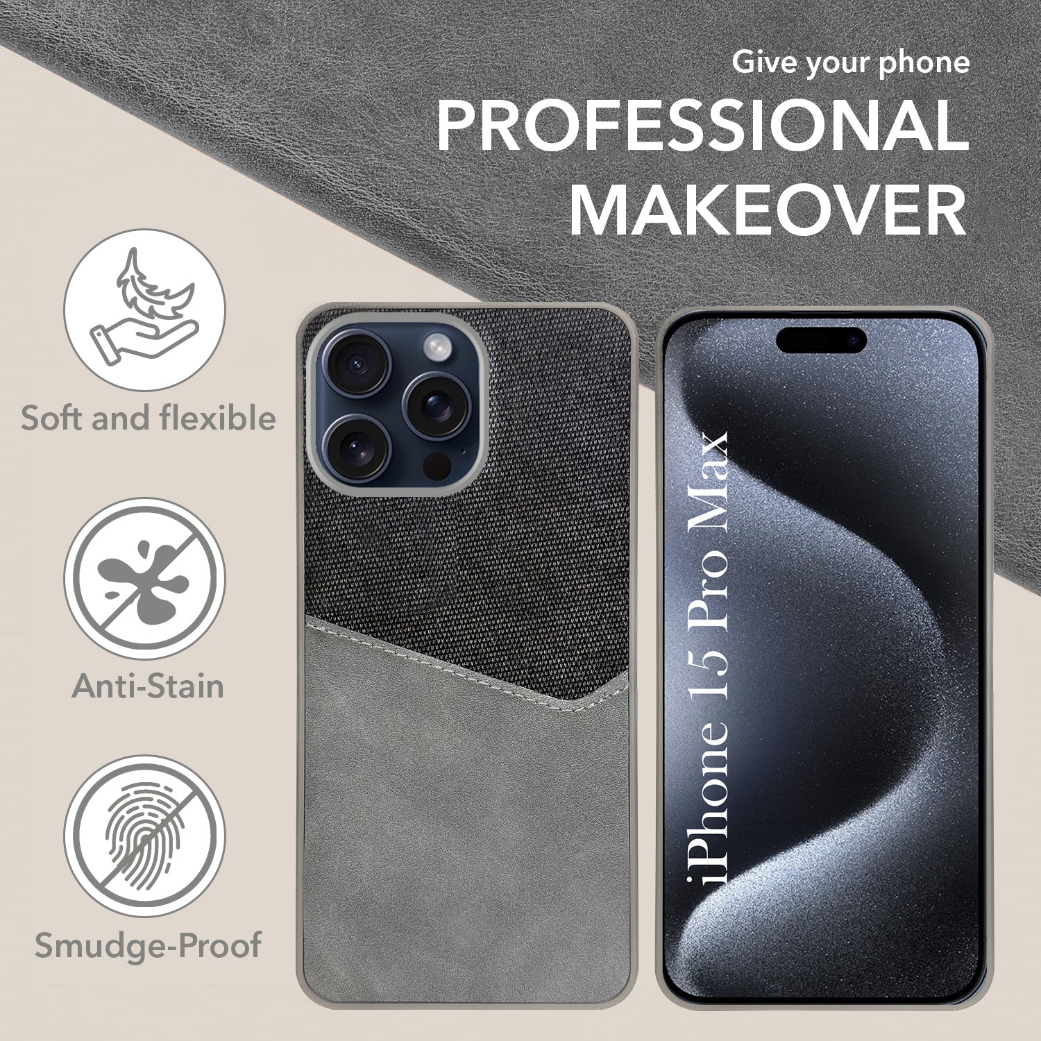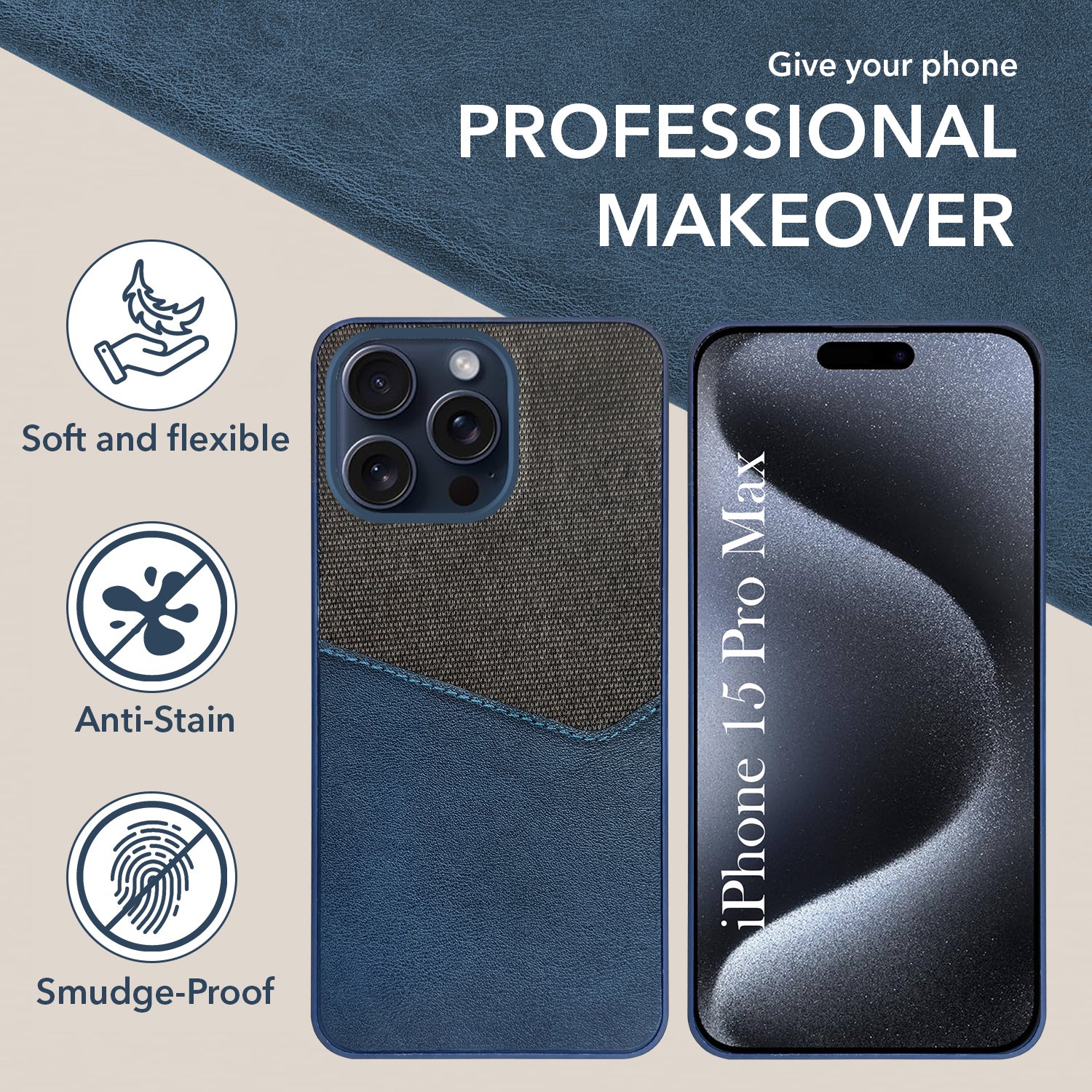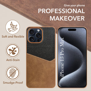 For Apple iPhone 15 Pro Max Back Cover Case (Dual PU Leather Stitch | Professional Minimalist | Soft and Flexible)