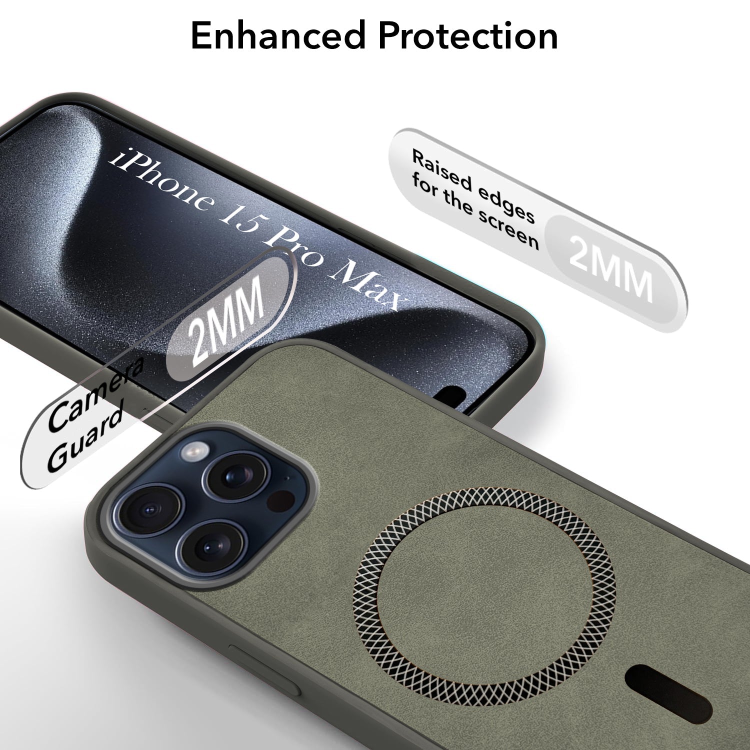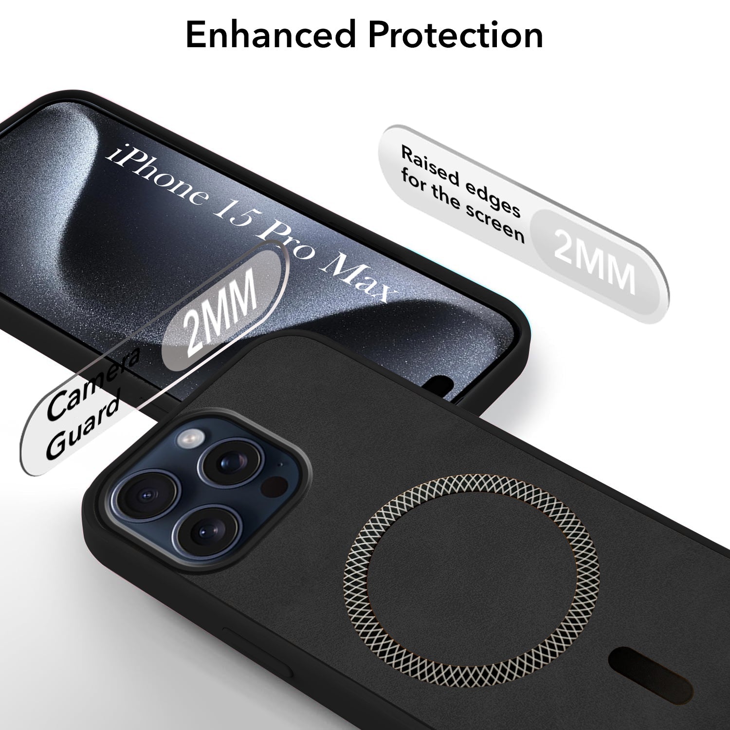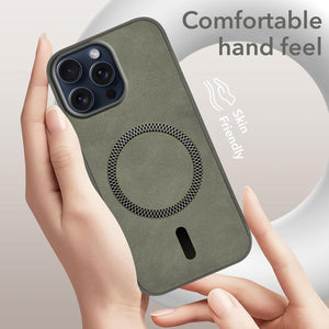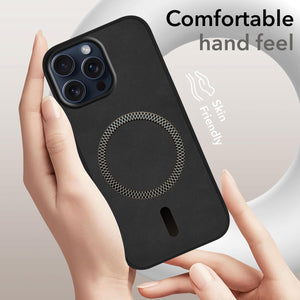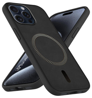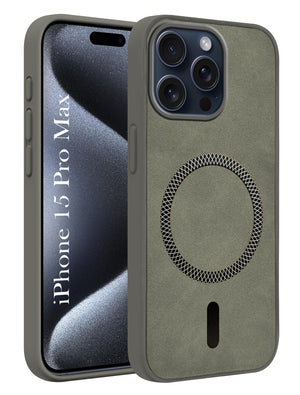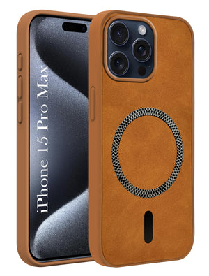 For Apple iPhone 15 Pro Max Back Cover Case (Sleek Leather Finish | MagSafe Compatible Wireless Charging | Camera Bump Protection)