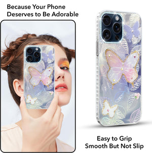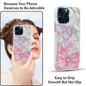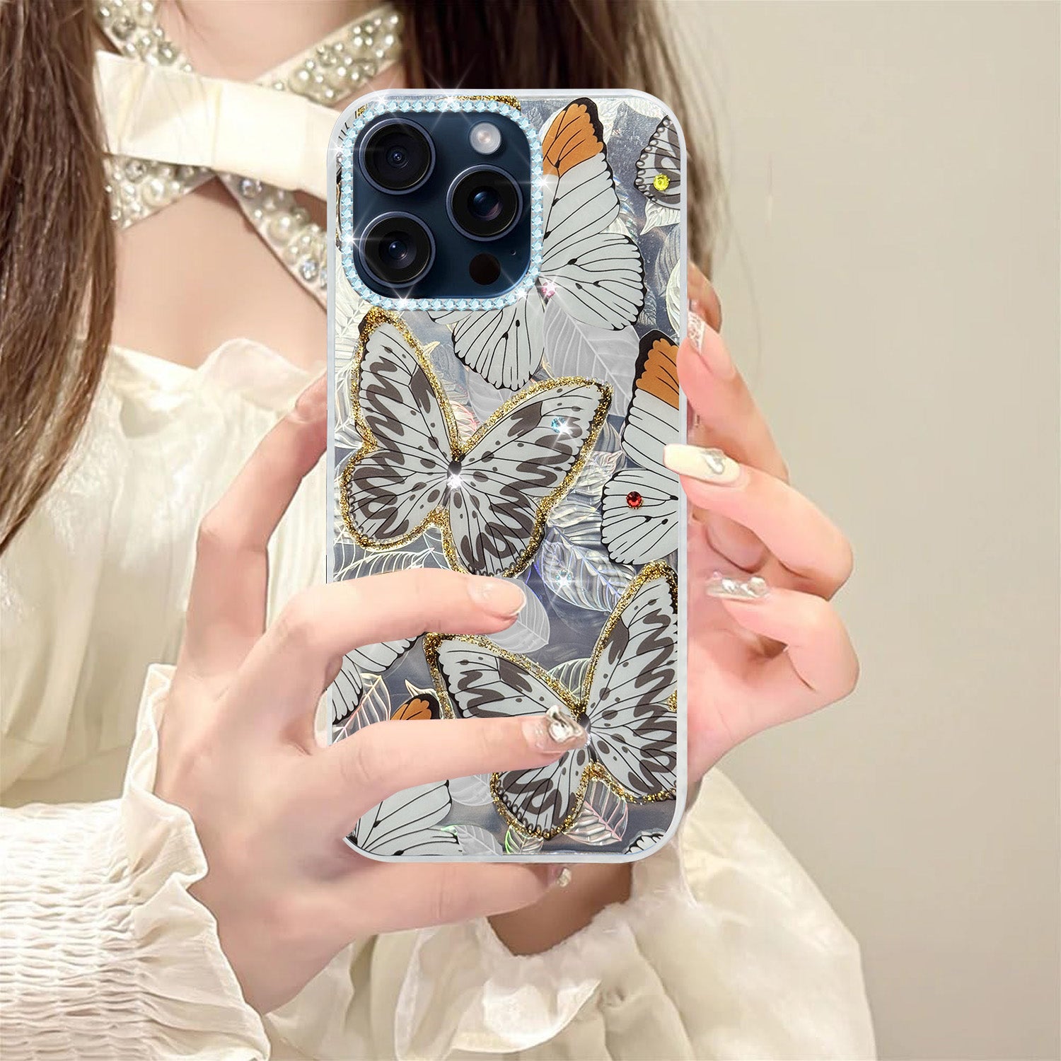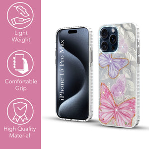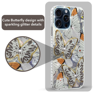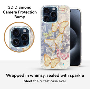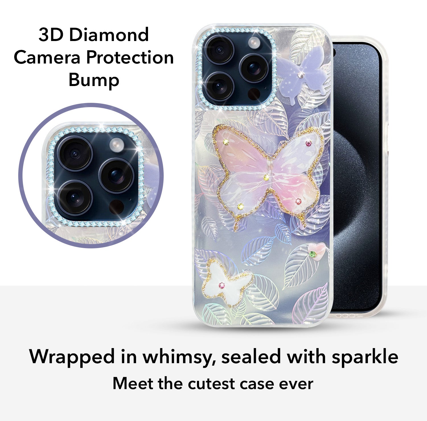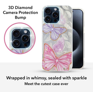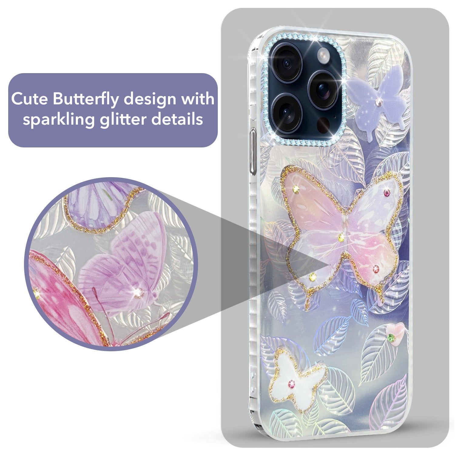 For Apple iPhone 15 Pro Max Back Cover Case (Luxury Floral Glitter Cute Butterfly | Diamond Studded Camera Bump | Girls & Women Design)