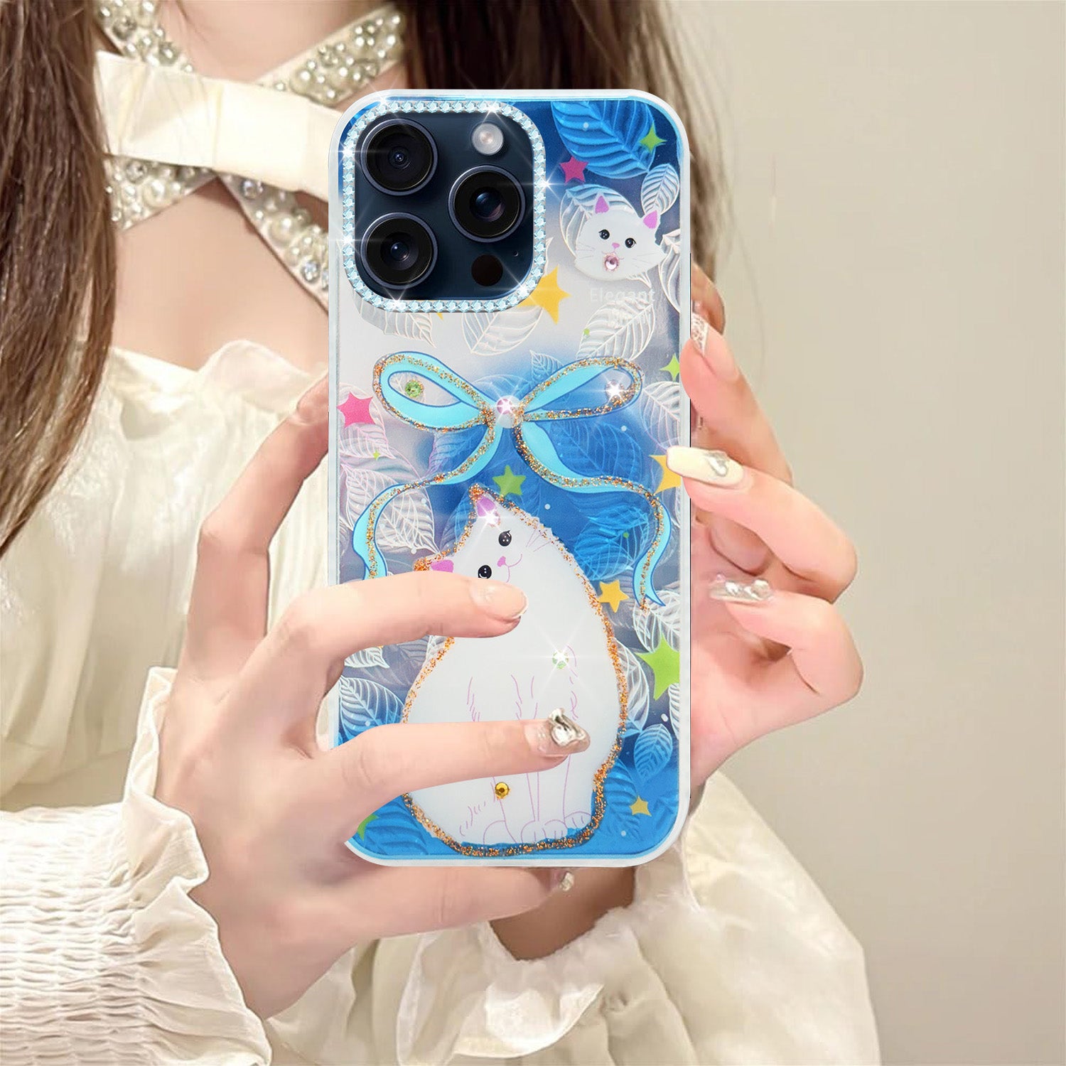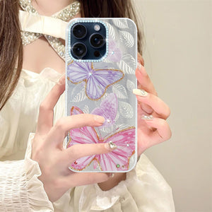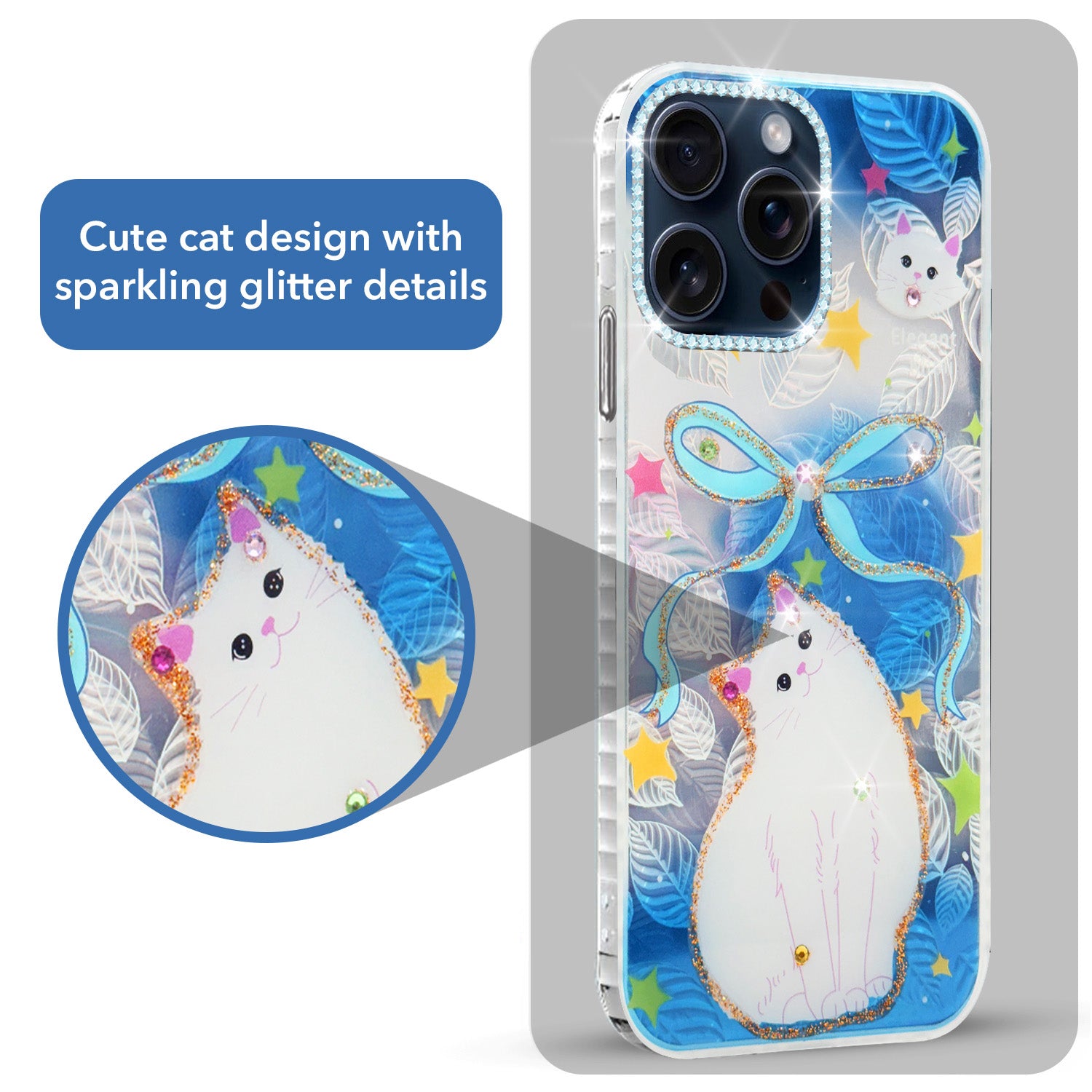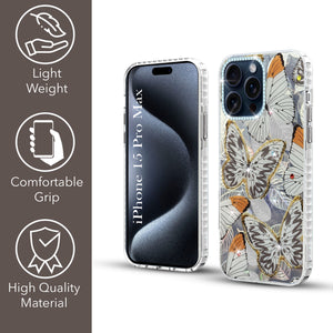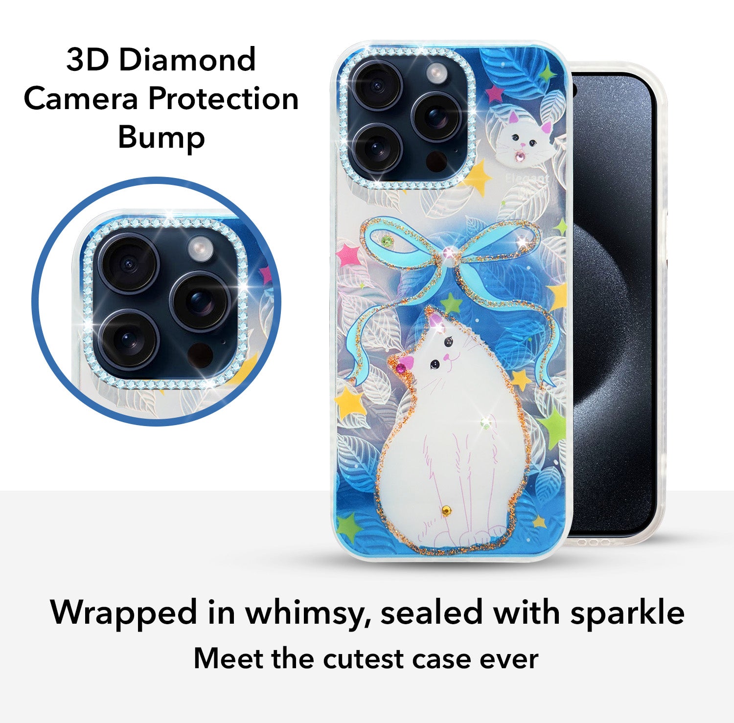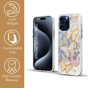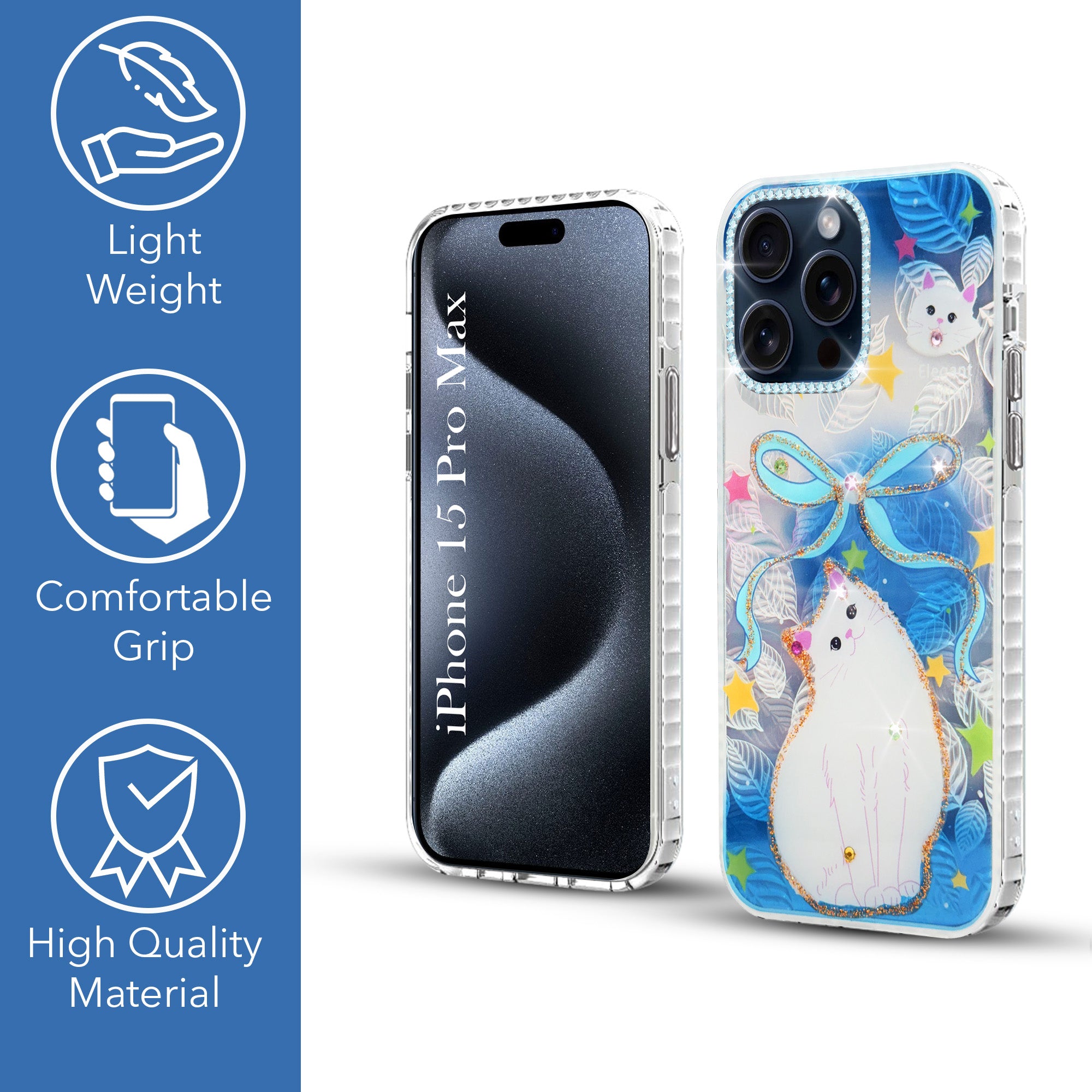 For Apple iPhone 15 Pro Max Back Cover Case (Luxury Floral Glitter Cute Butterfly | Diamond Studded Camera Bump | Girls & Women Design)