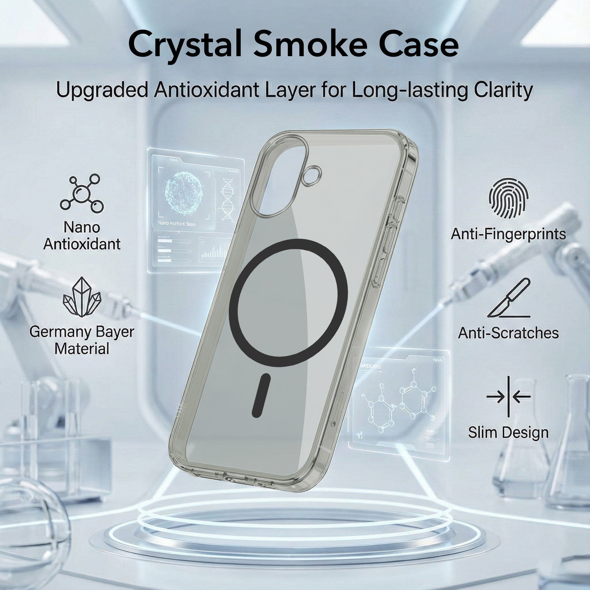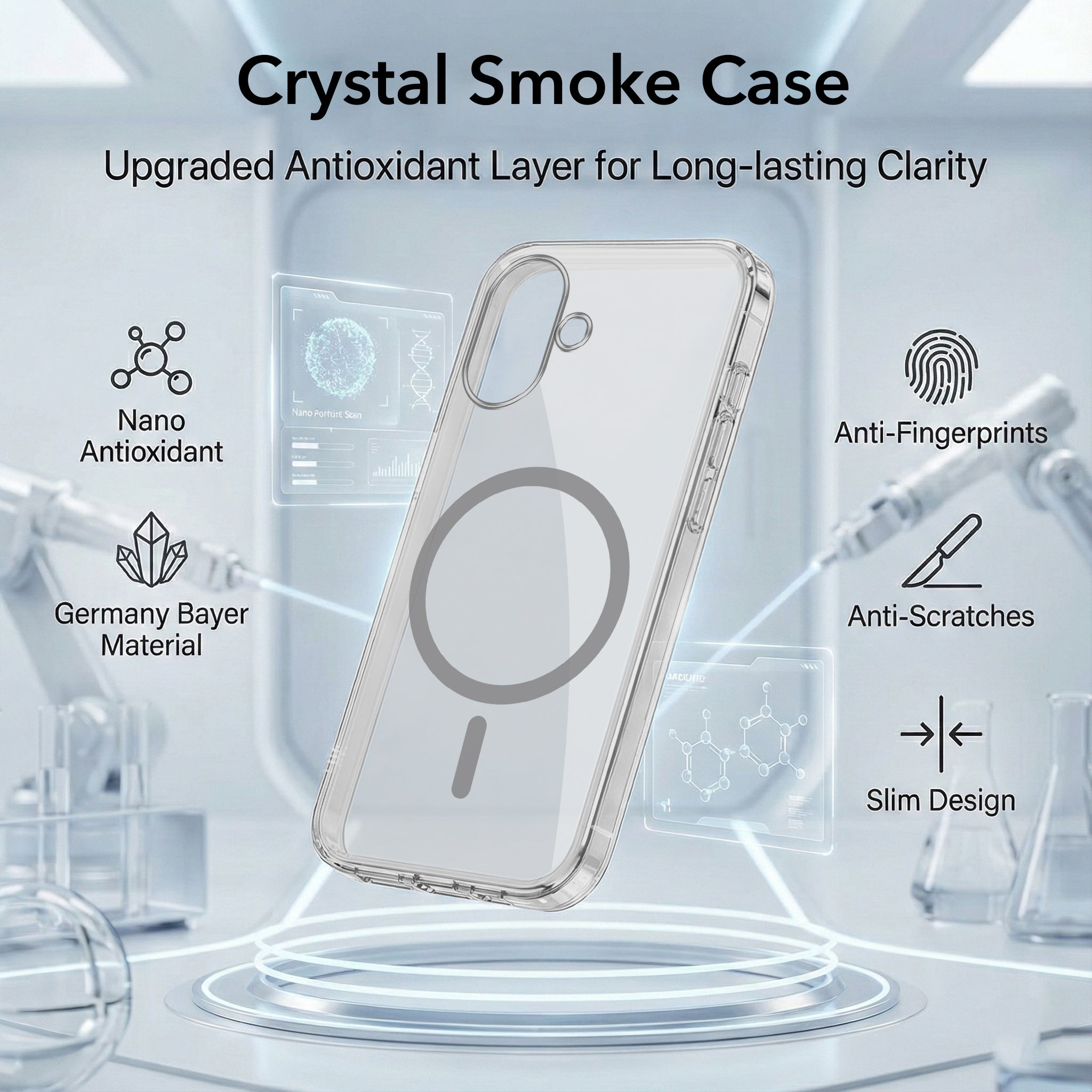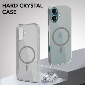 For Apple iPhone 16 Back Case Cover Lifetime Anti-Yellow MagSafe Compatible Clear (Sleek Hard Crystal | Camera Protection and Shockproof)