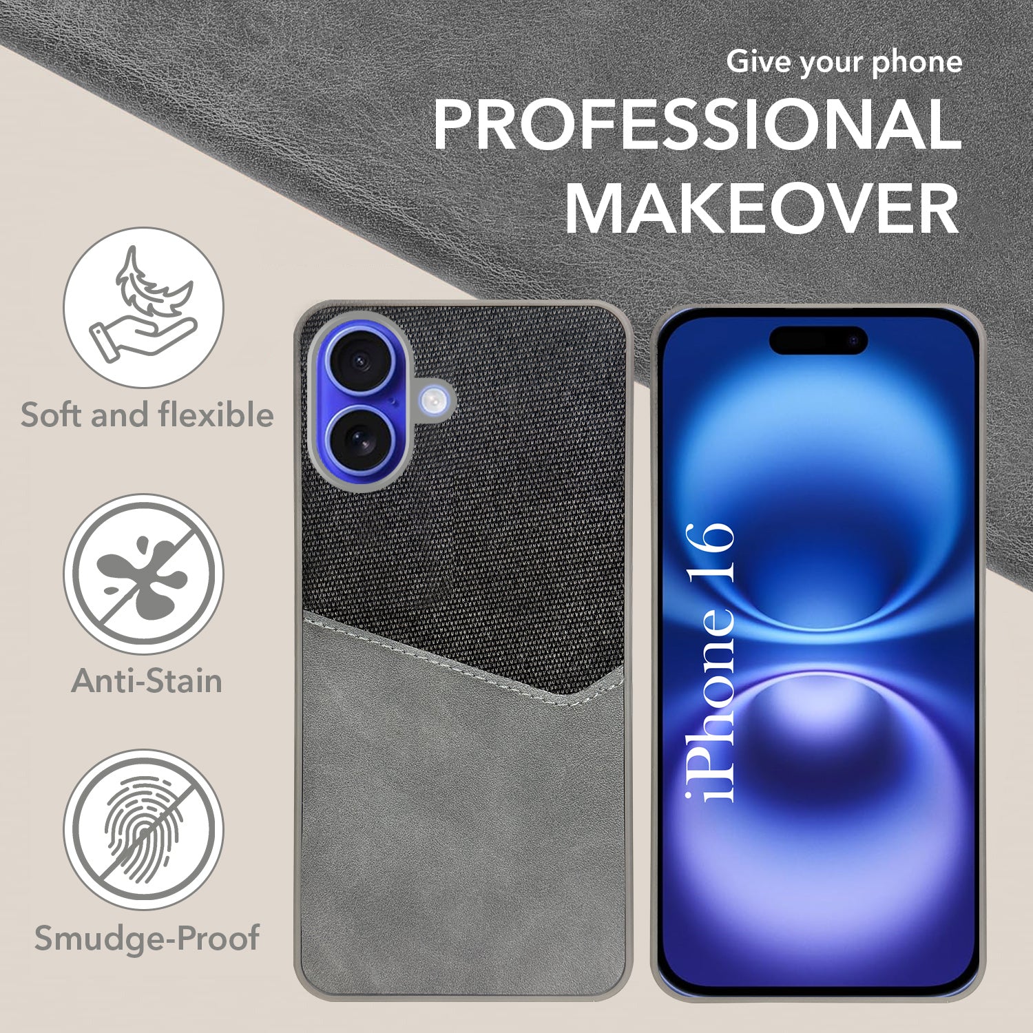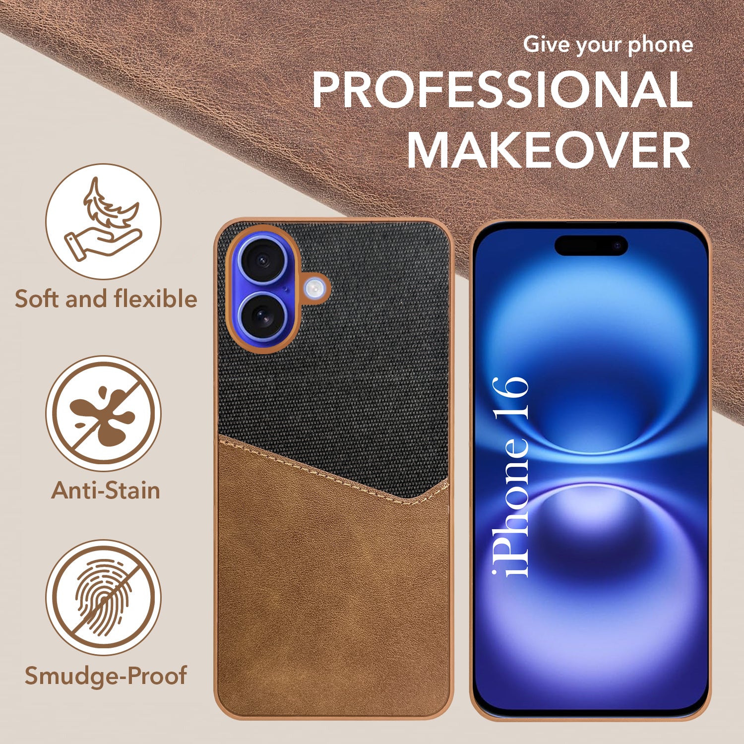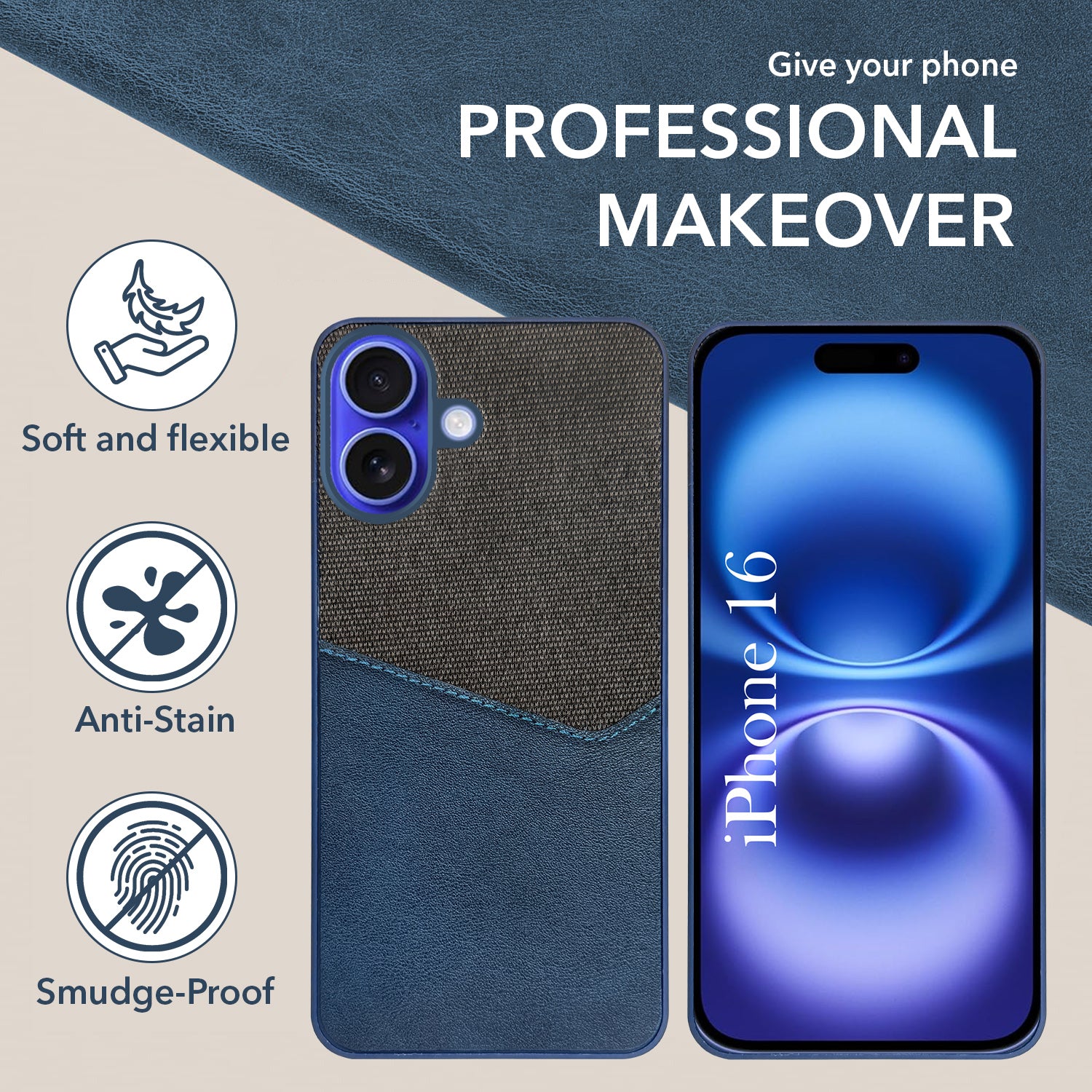For Apple iPhone 16 Back Cover Case (Dual PU Leather Stitch | Professional Minimalist | Soft and Flexible)