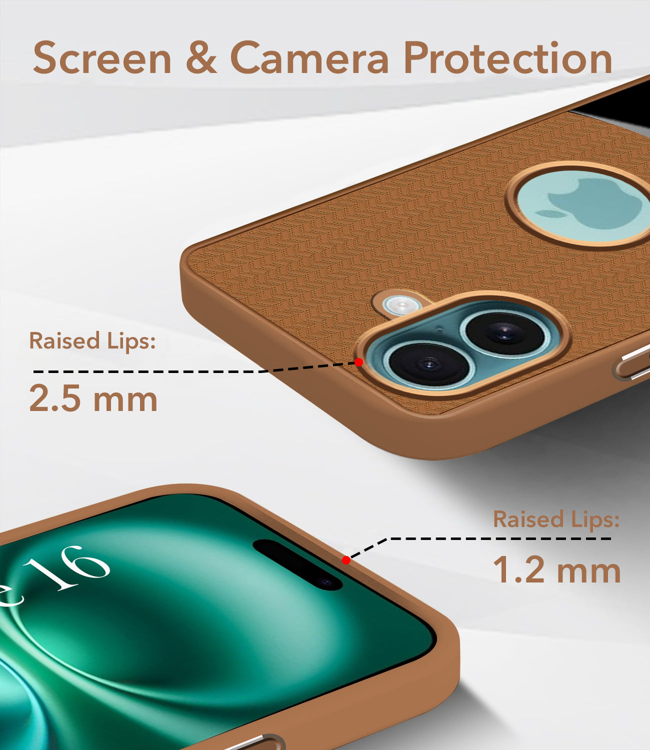 For Apple iPhone 16 Back Cover Case (Elegant PU Leather Finish | Premium Minimalist Professional | Camera Protection Bump)