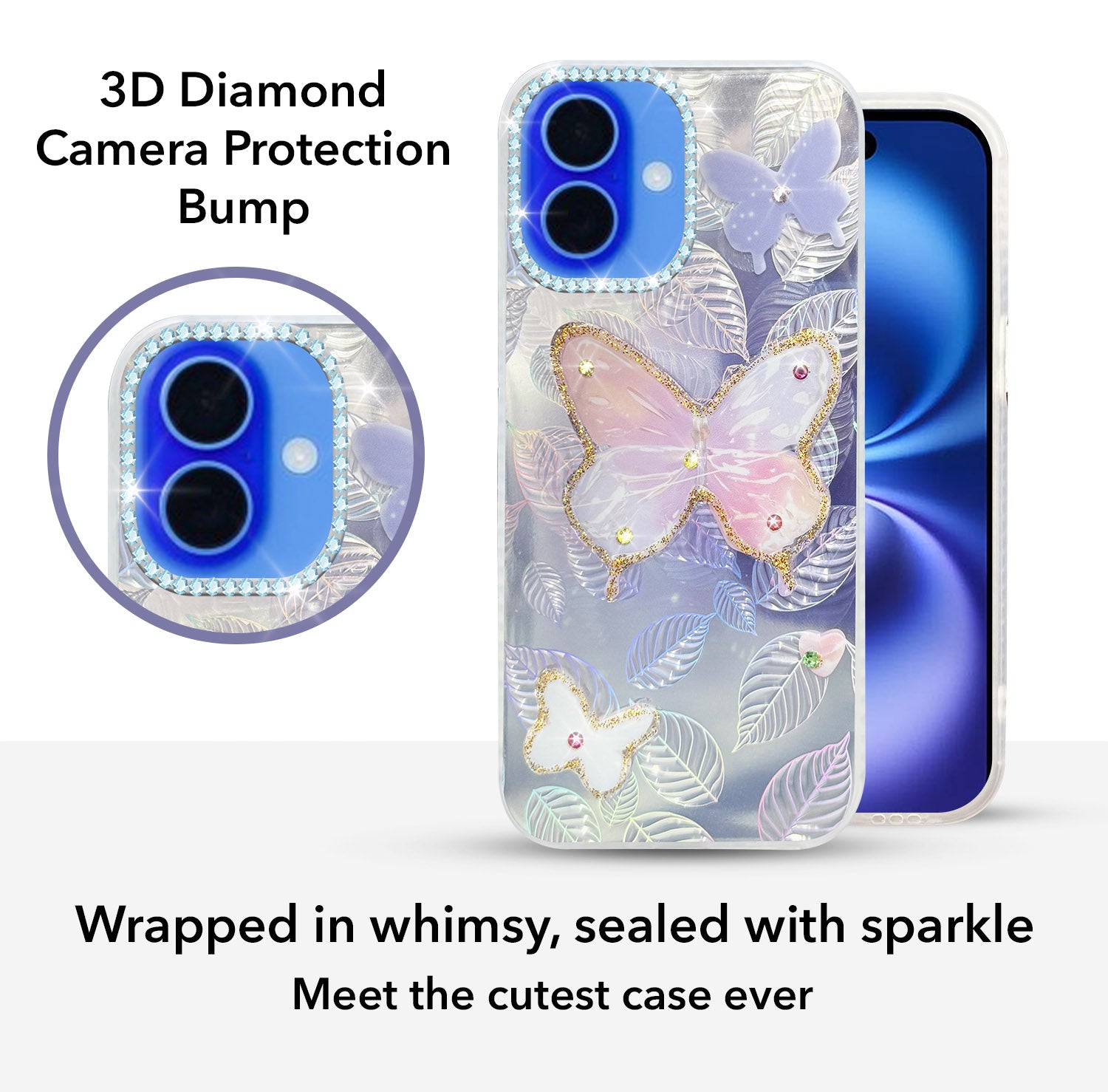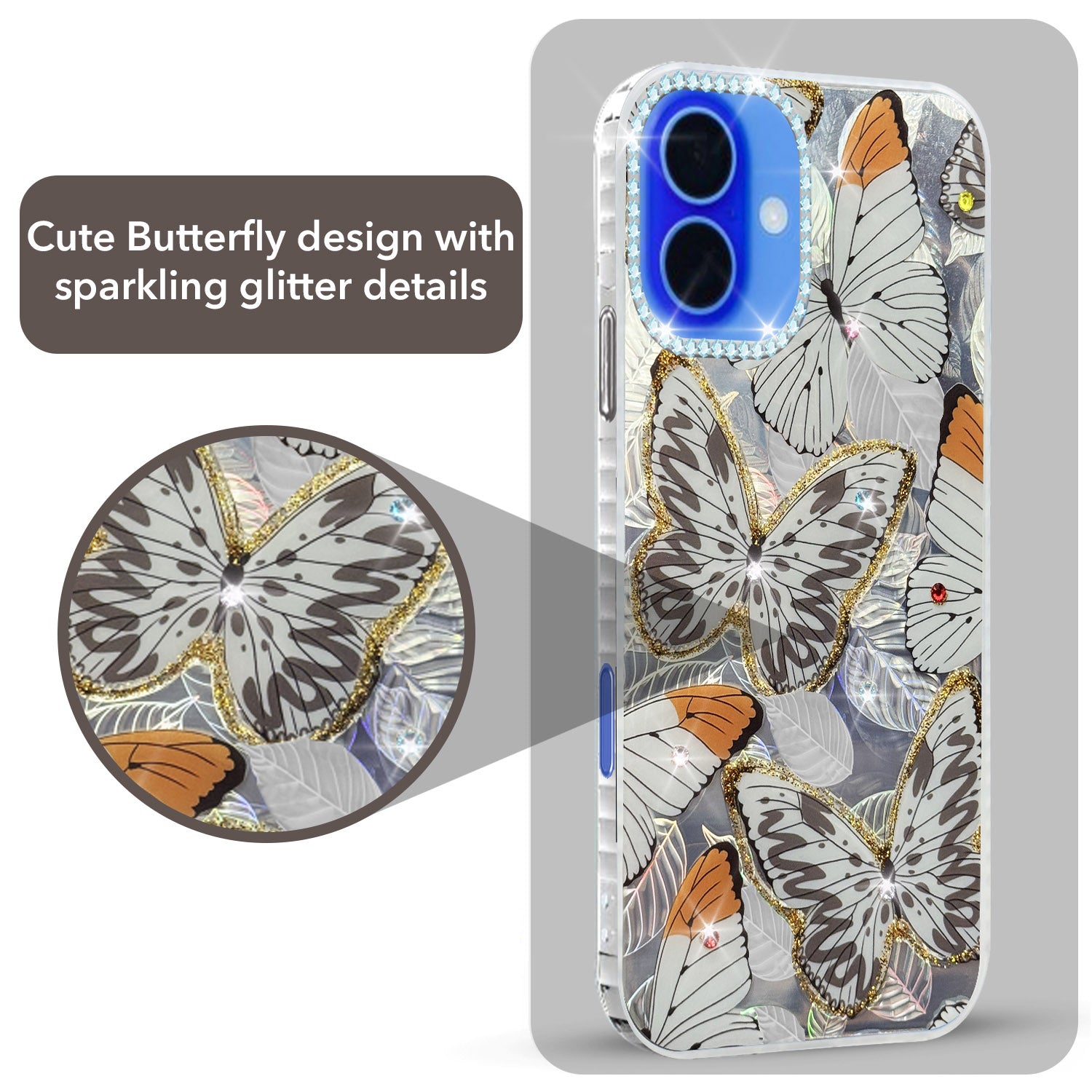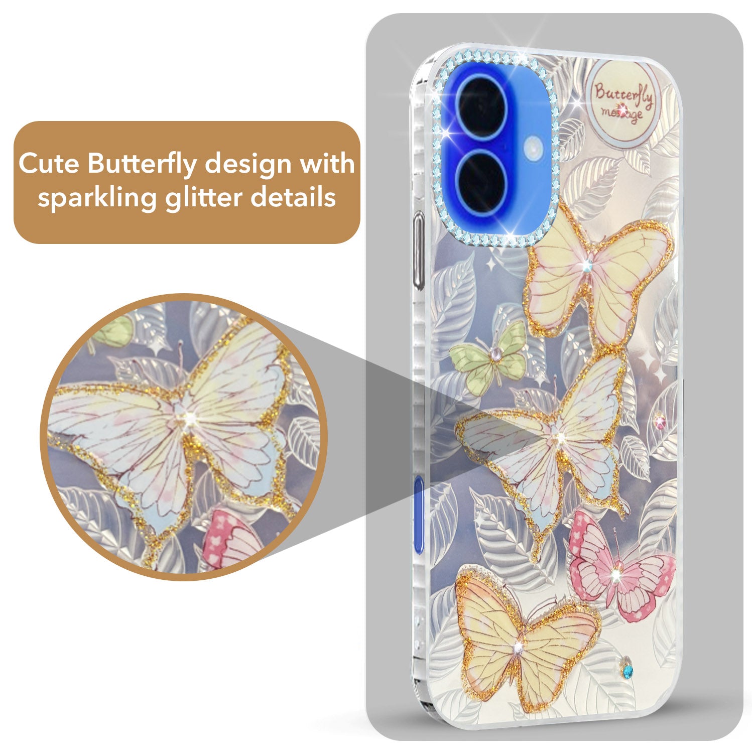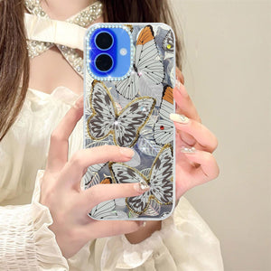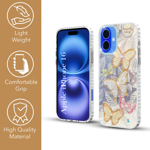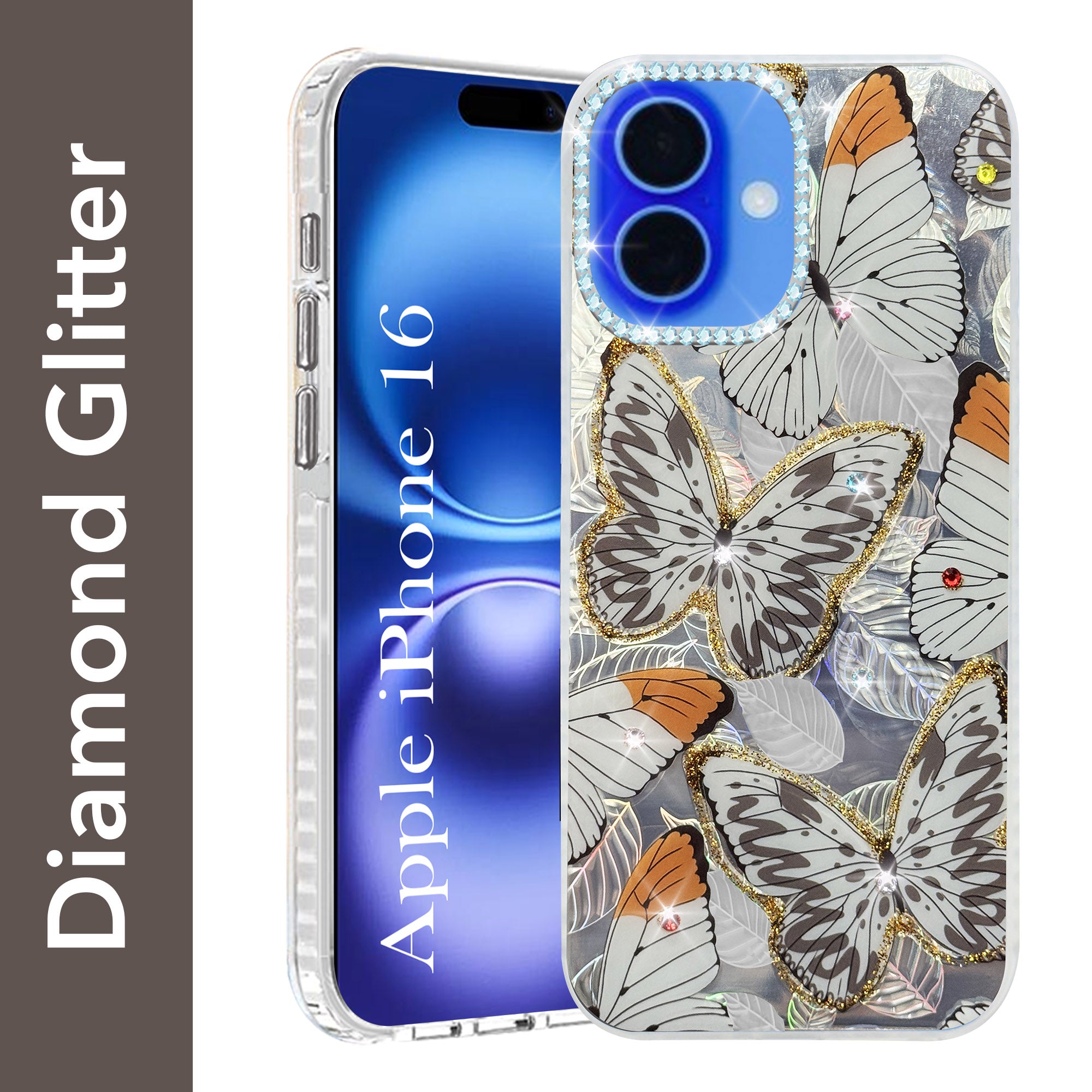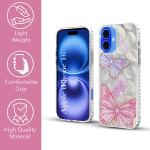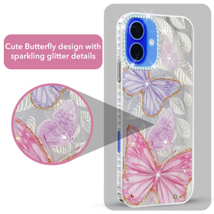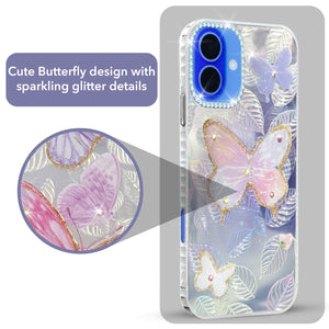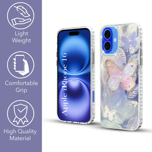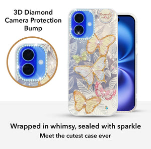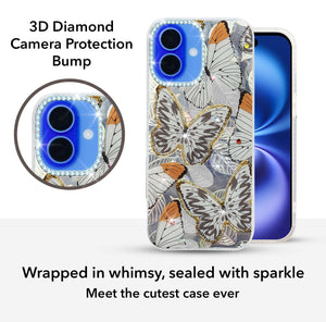For Apple iPhone 16 Back Cover Case (Luxury Floral Glitter Cute Butterfly | Diamond Studded Camera Bump | Girls & Women Design)