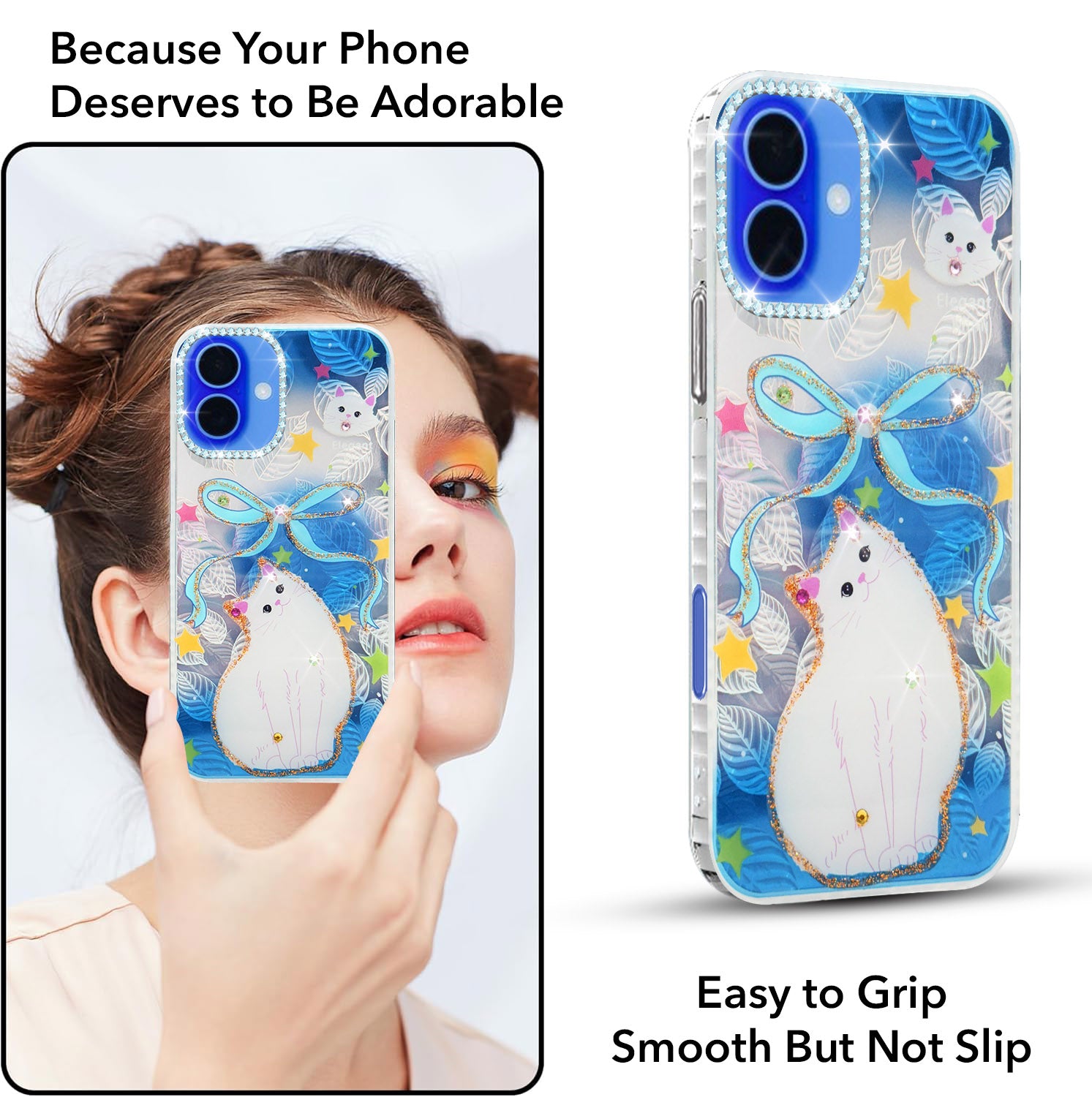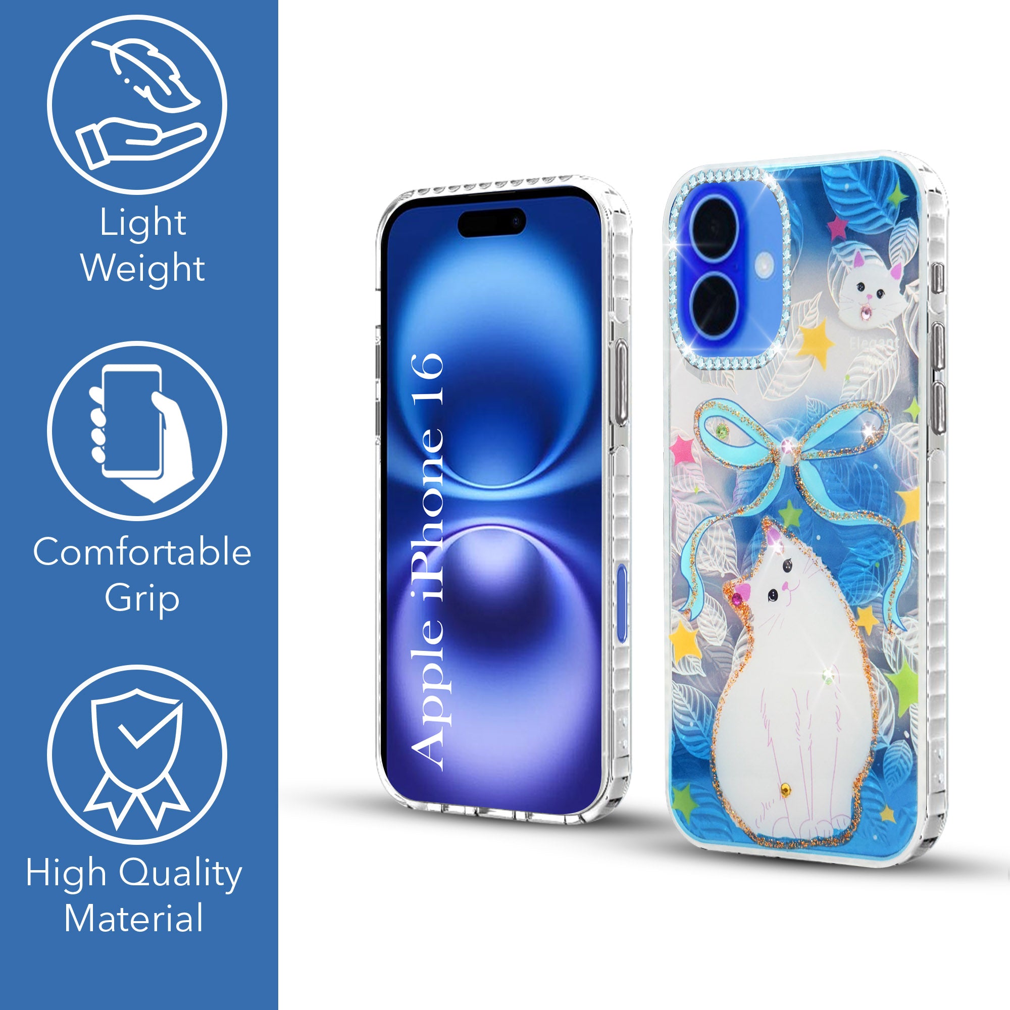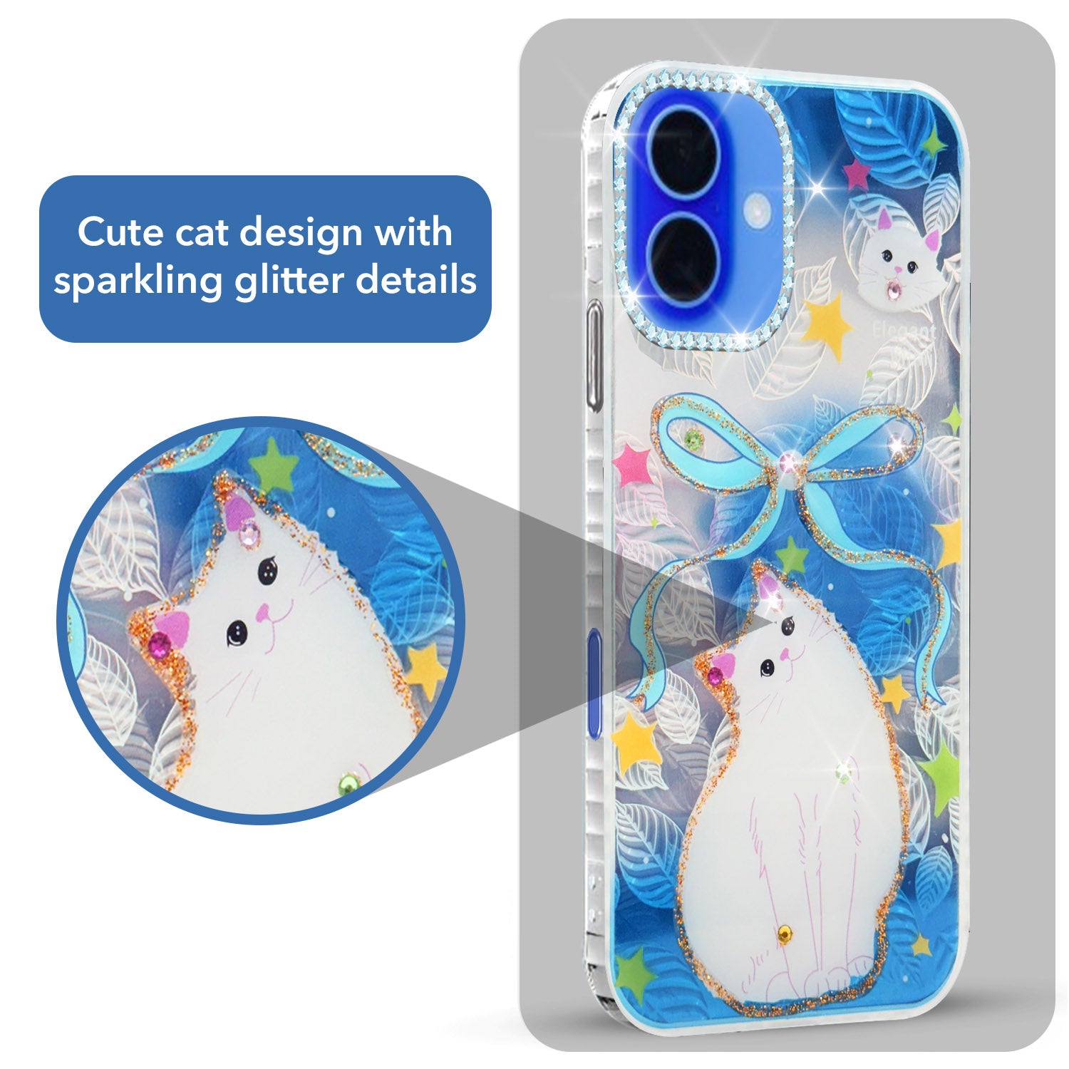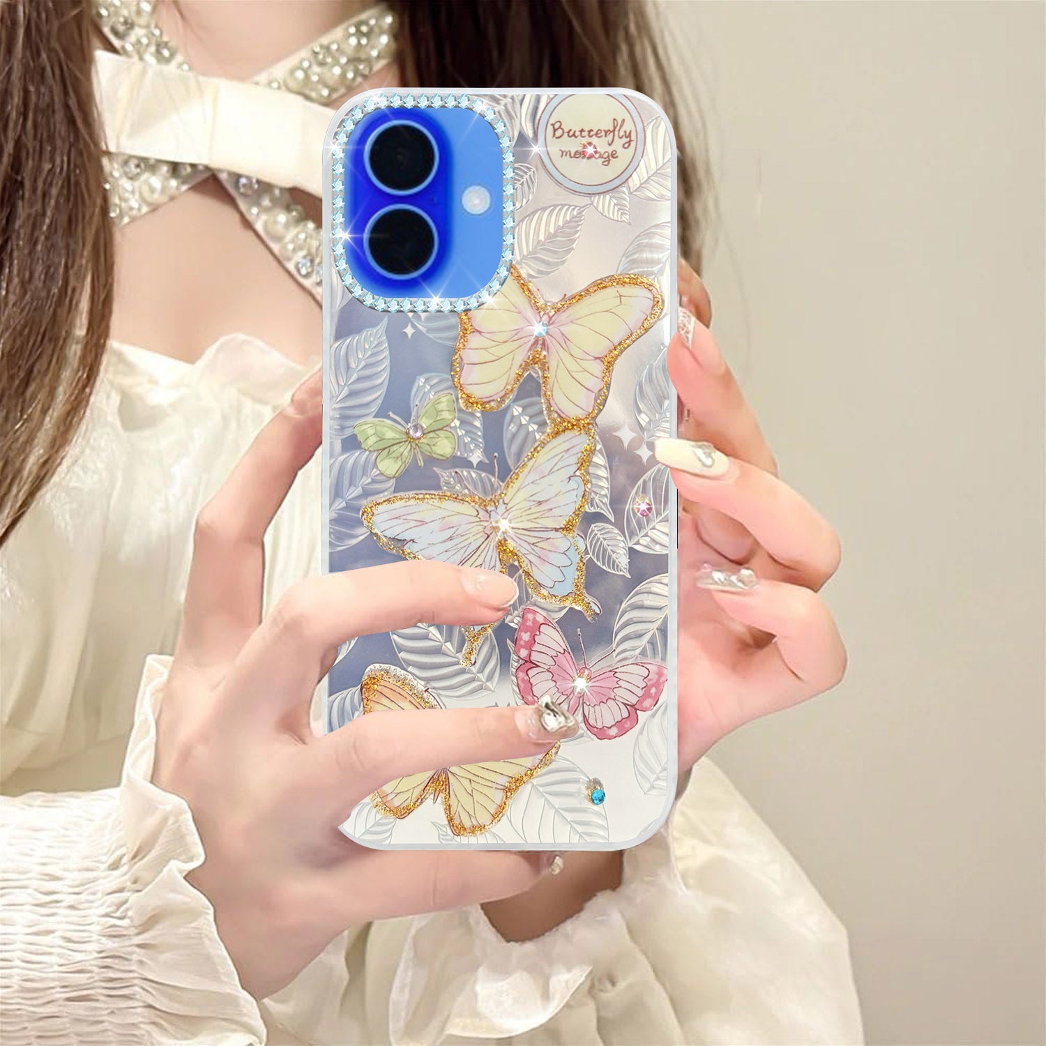 For Apple iPhone 16 Back Cover Case (Luxury Floral Glitter Cute Butterfly | Diamond Studded Camera Bump | Girls & Women Design)