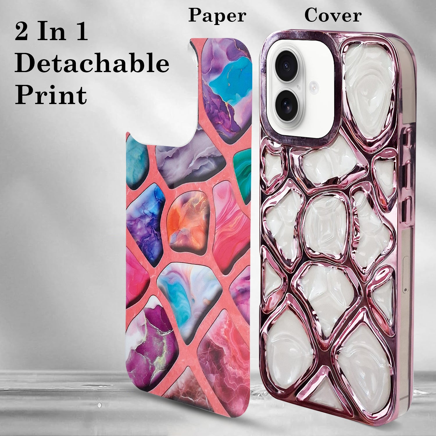 For Apple iPhone 16 Back Cover Case ( Dual Design Glitter Sparkle and Detachable Diamond Print Case | Soft and Flexible)