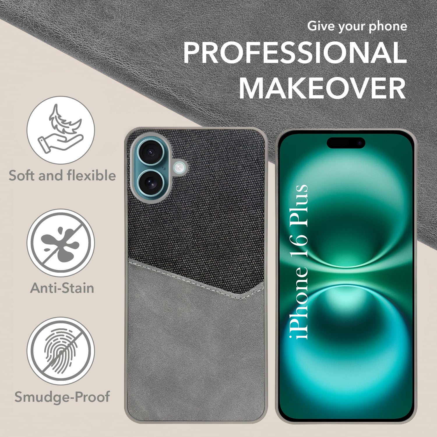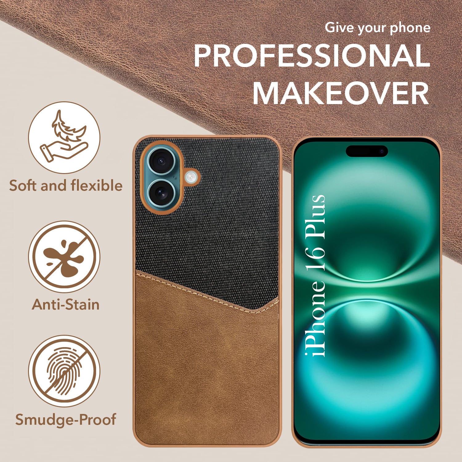 For Apple iPhone 16 Plus Back Cover Case (Dual PU Leather Stitch | Professional Minimalist | Soft and Flexible)