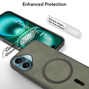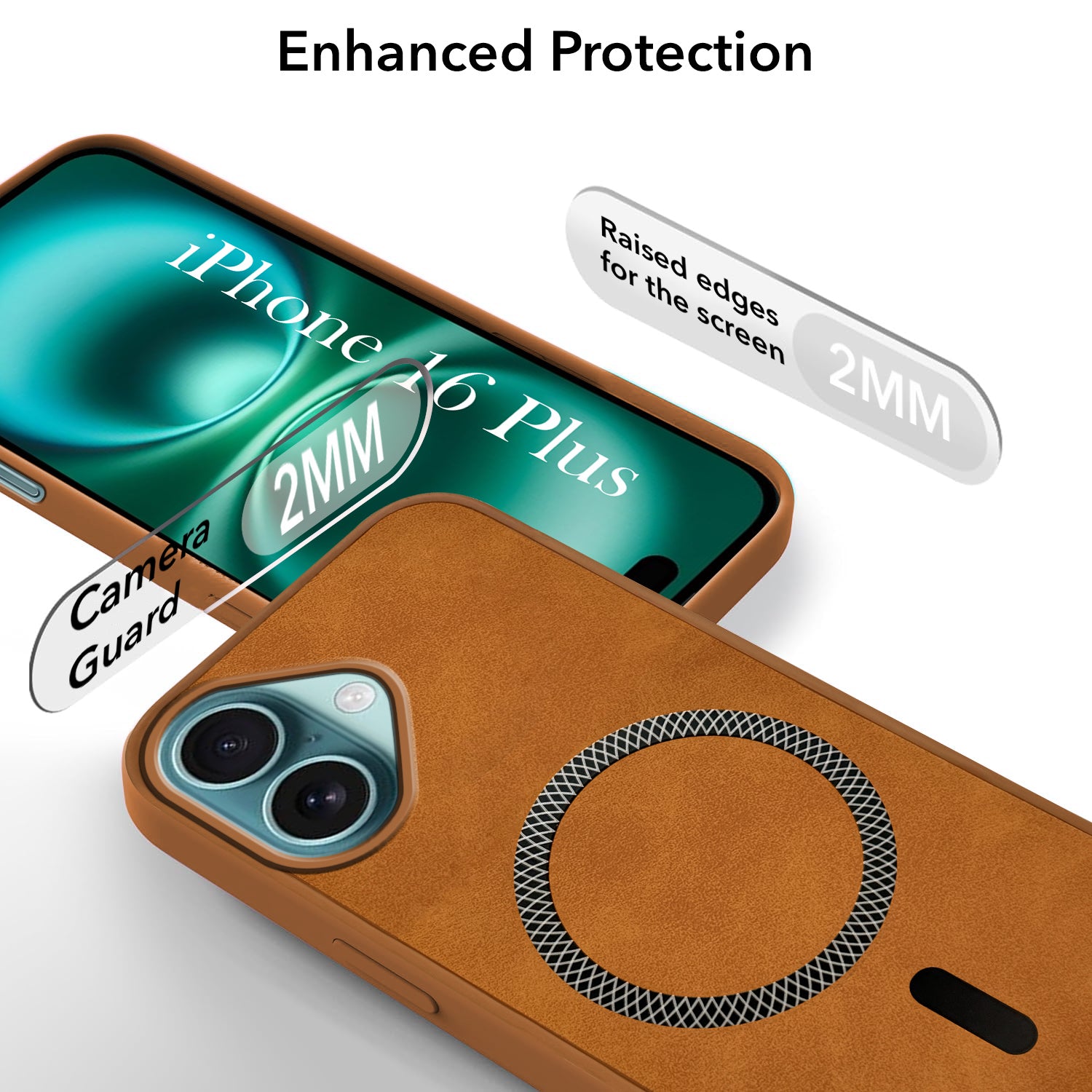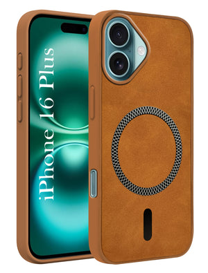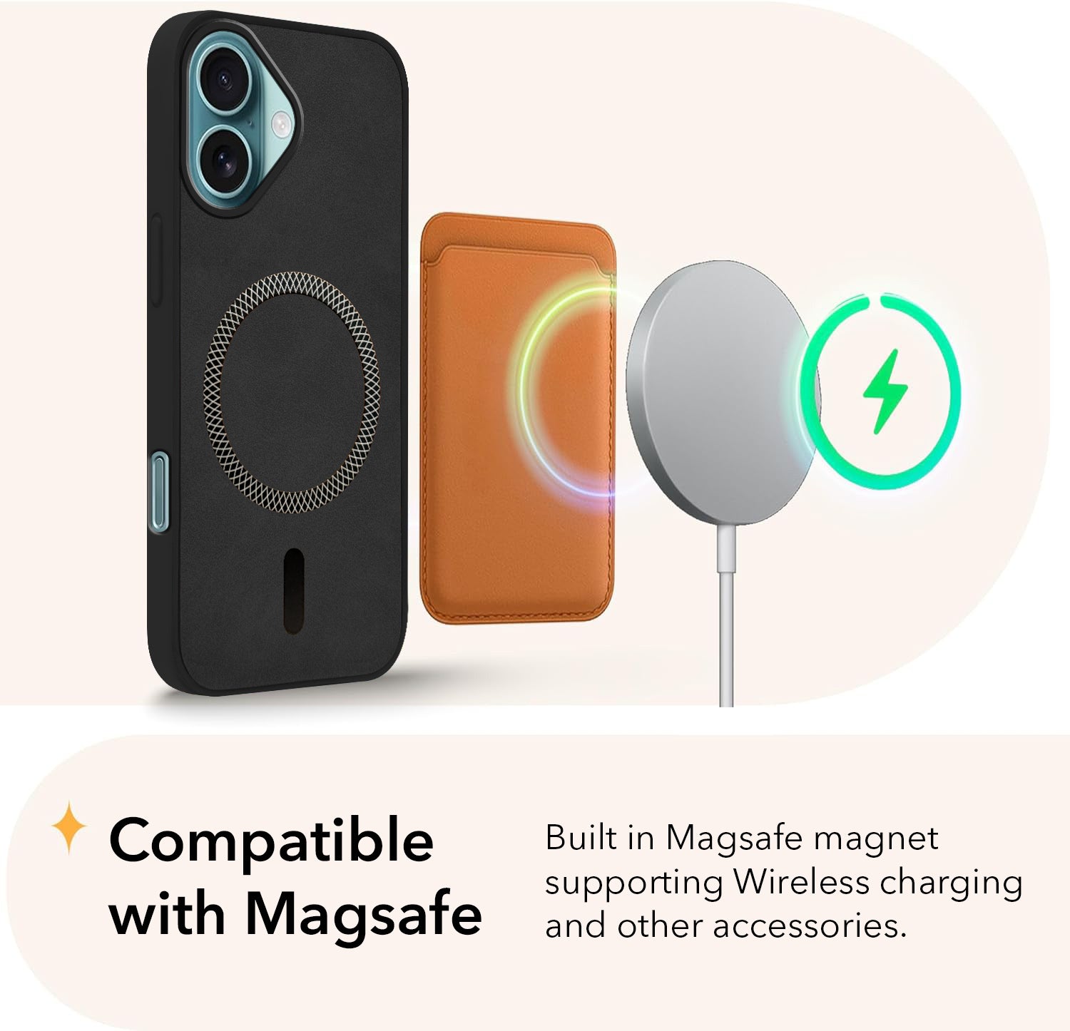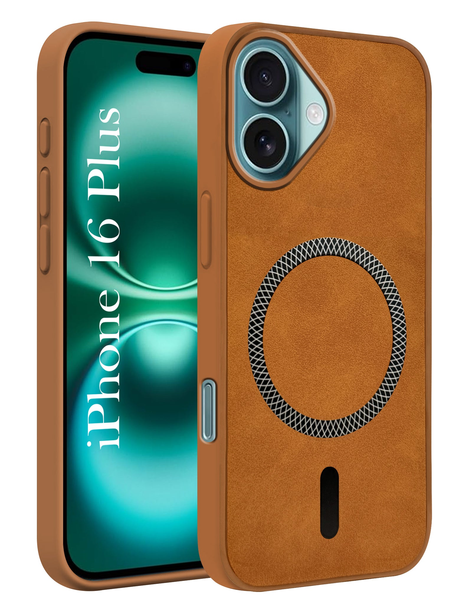 For Apple iPhone 16 Plus Back Cover Case (Sleek Leather Finish | MagSafe Compatible Wireless Charging | Camera Bump Protection)