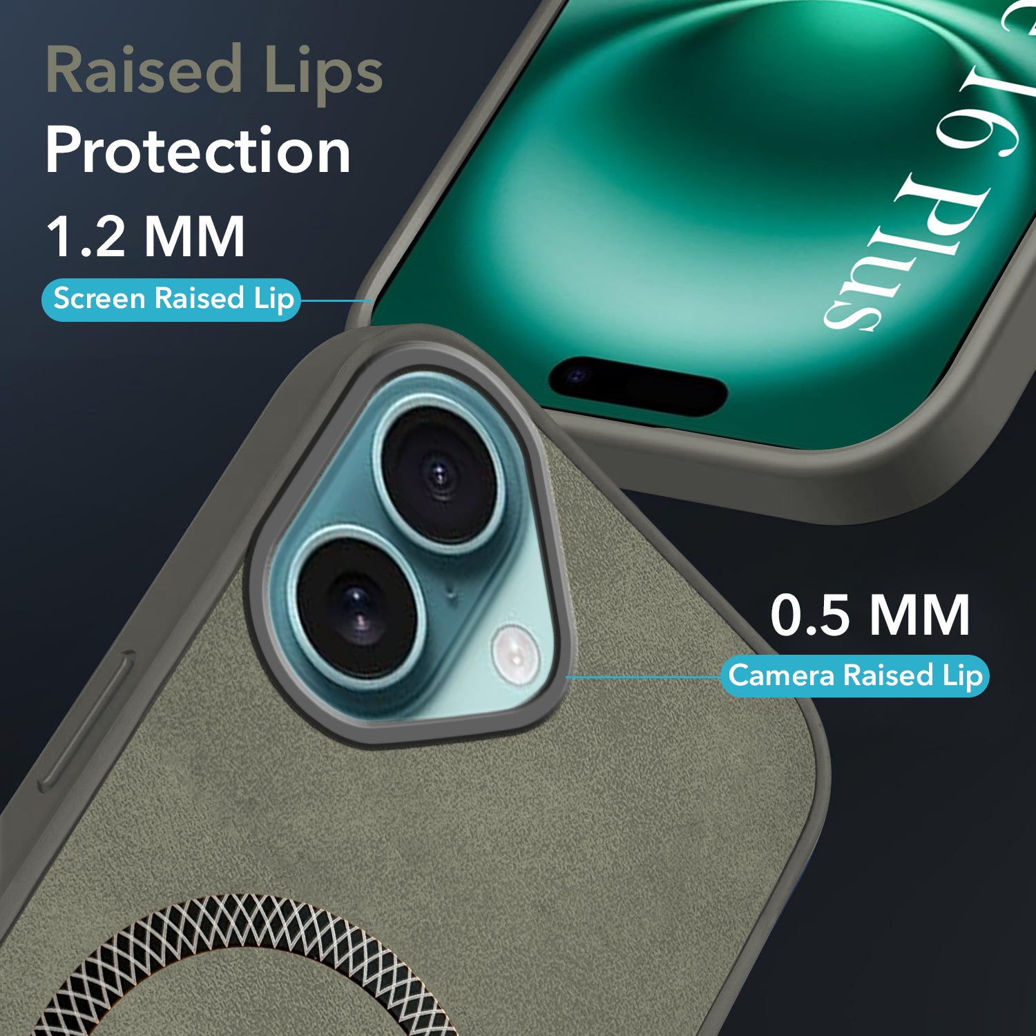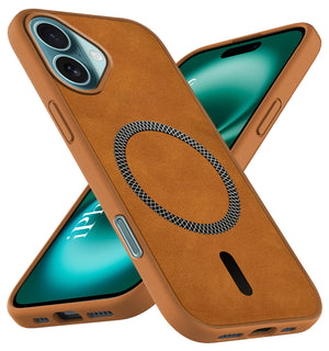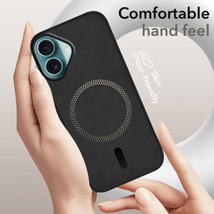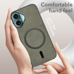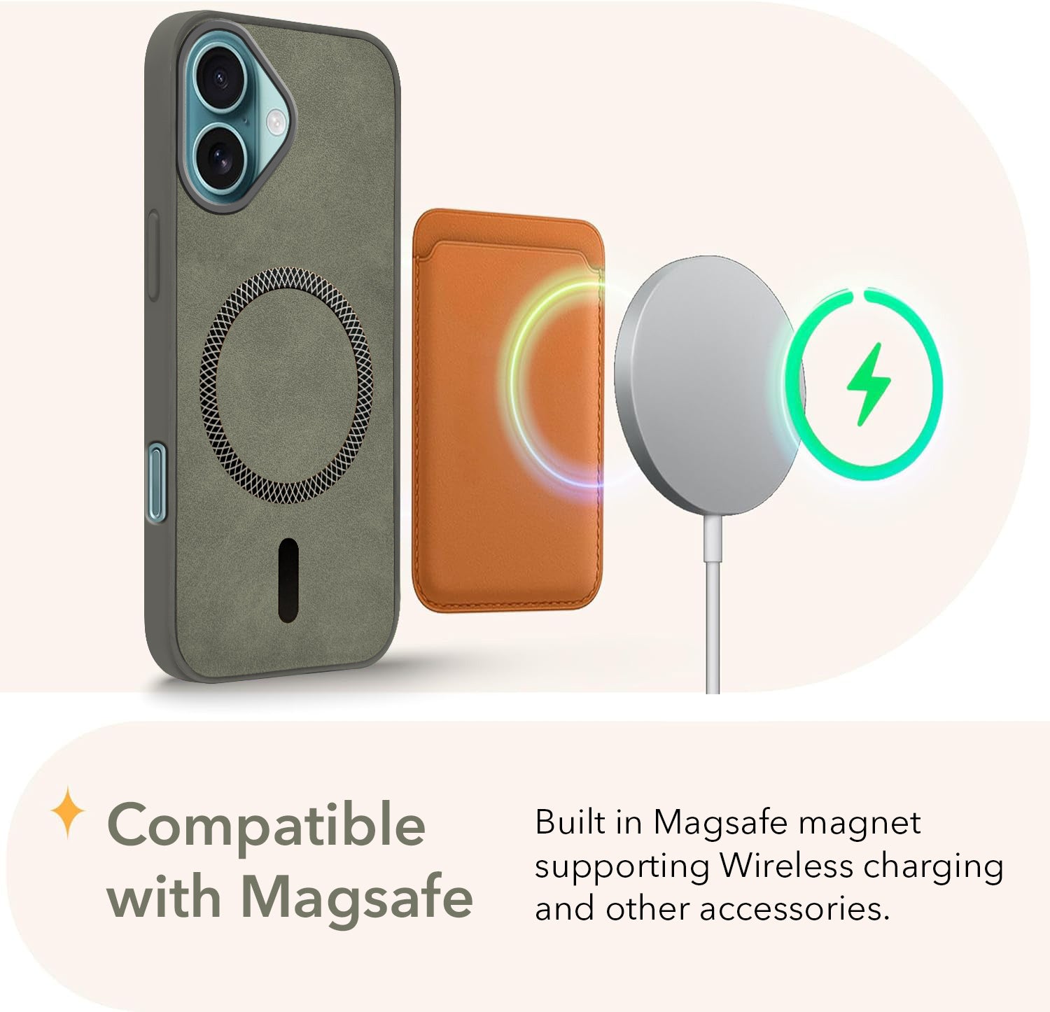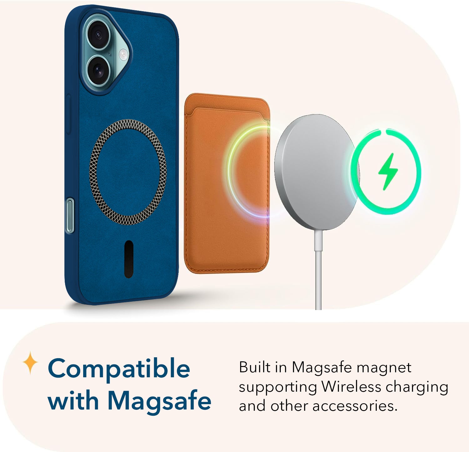 For Apple iPhone 16 Plus Back Cover Case (Sleek Leather Finish | MagSafe Compatible Wireless Charging | Camera Bump Protection)
