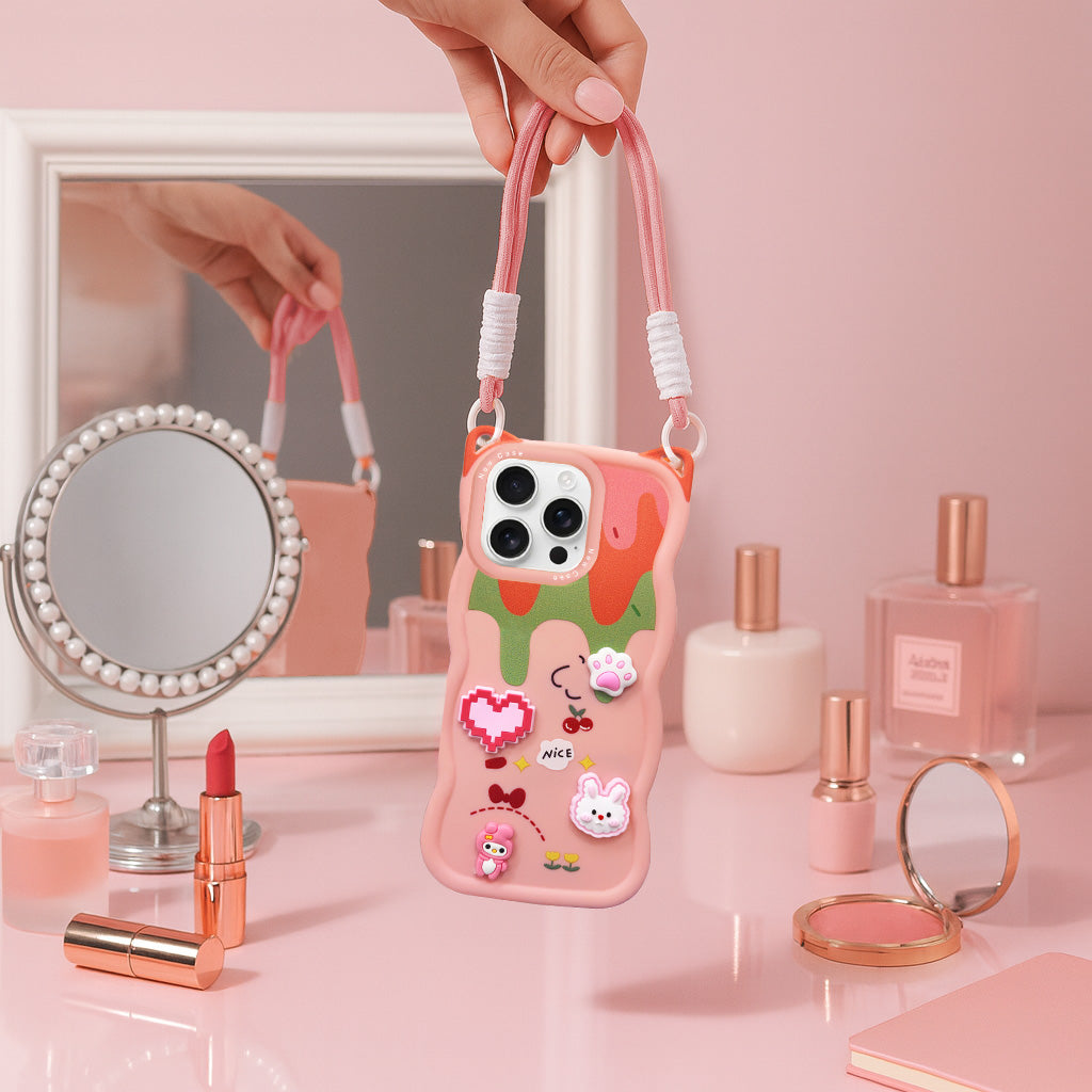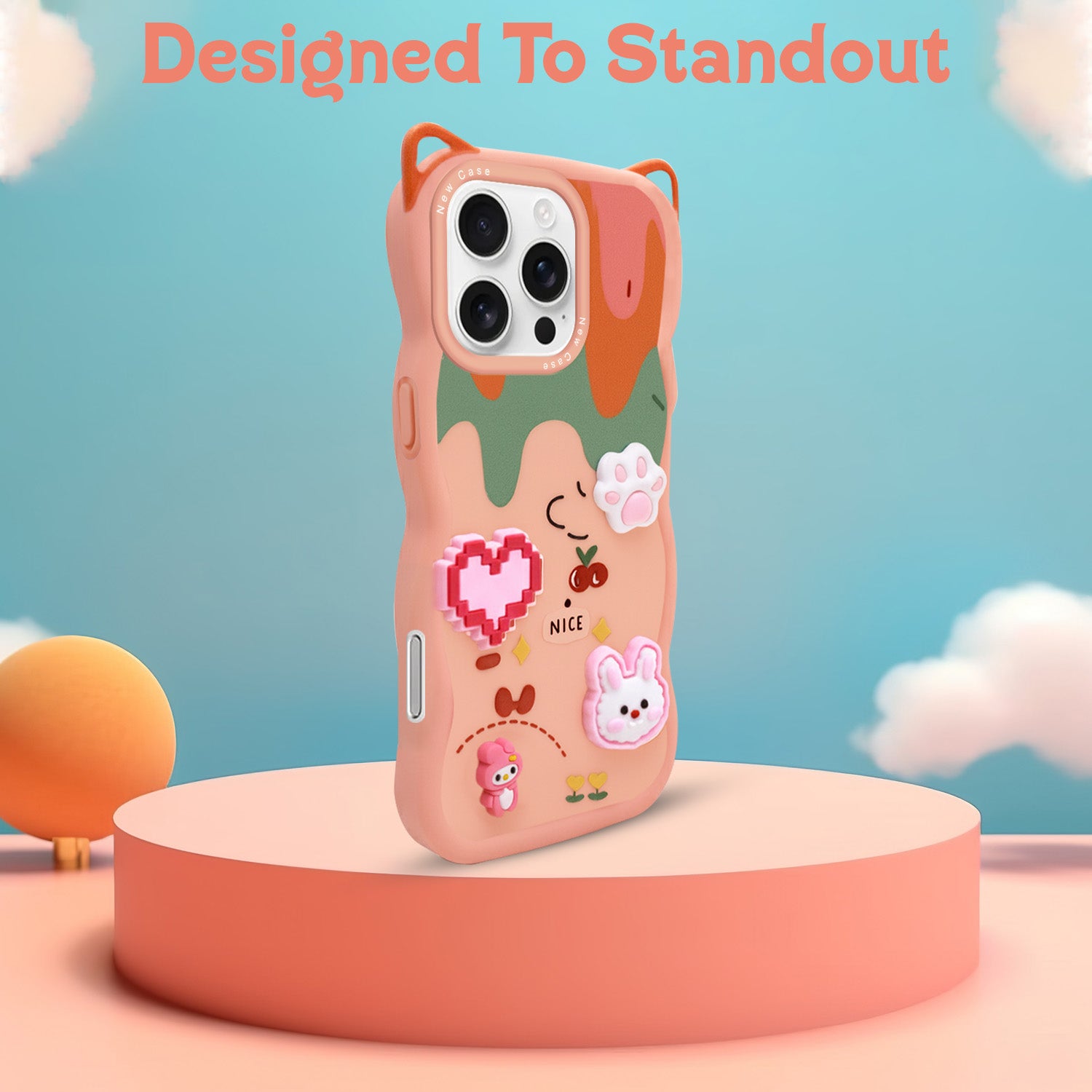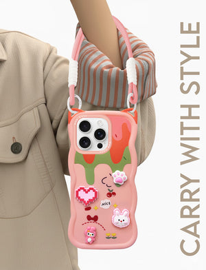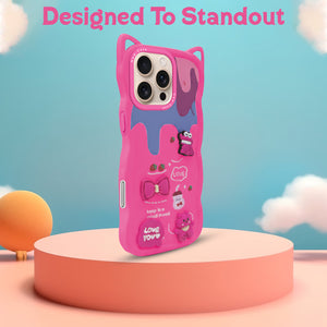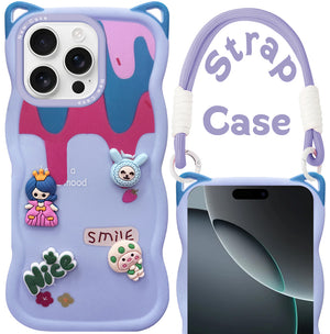 For Apple iPhone 16 Pro Max Back Case Cover Strap (3D Embossed Figures | Strap Holder | 360* Soft Cushion with Camera Bump)