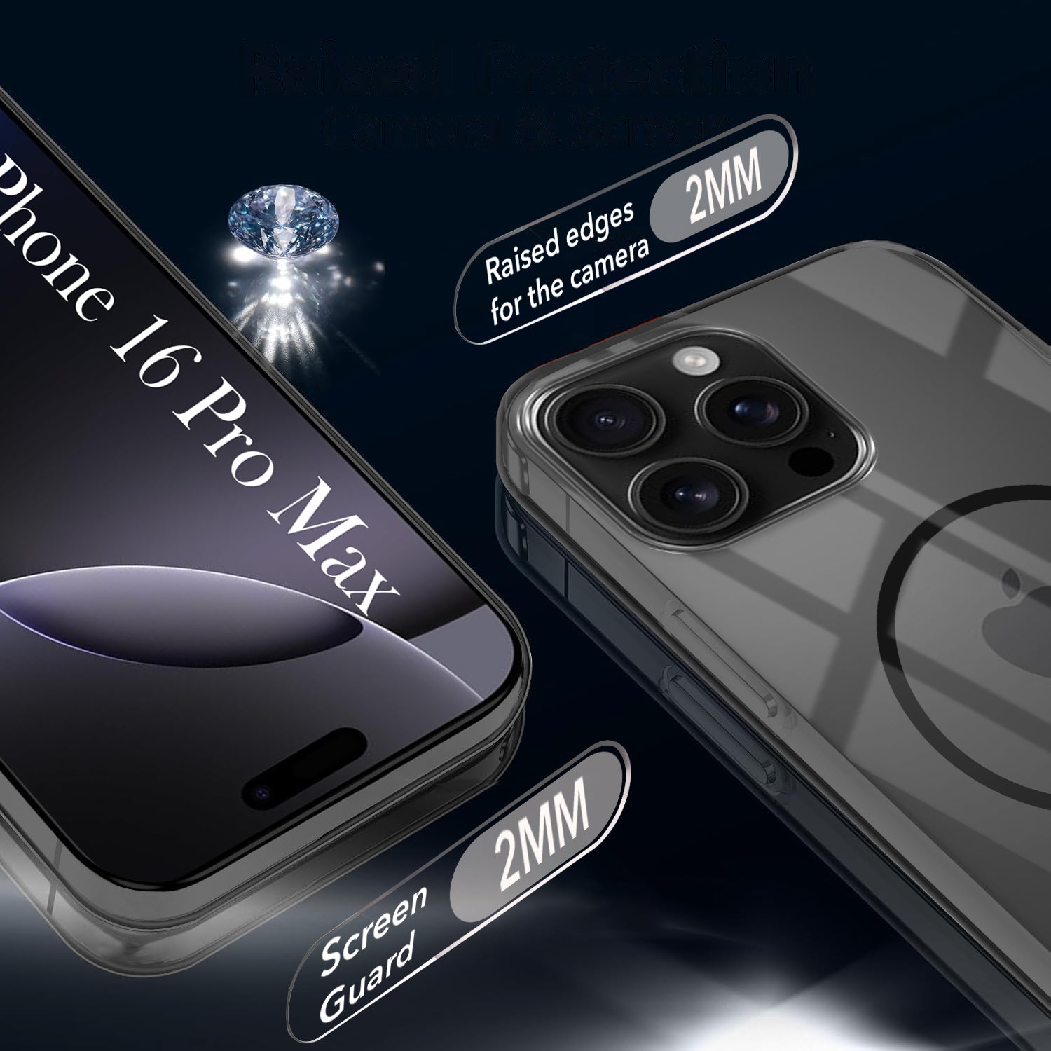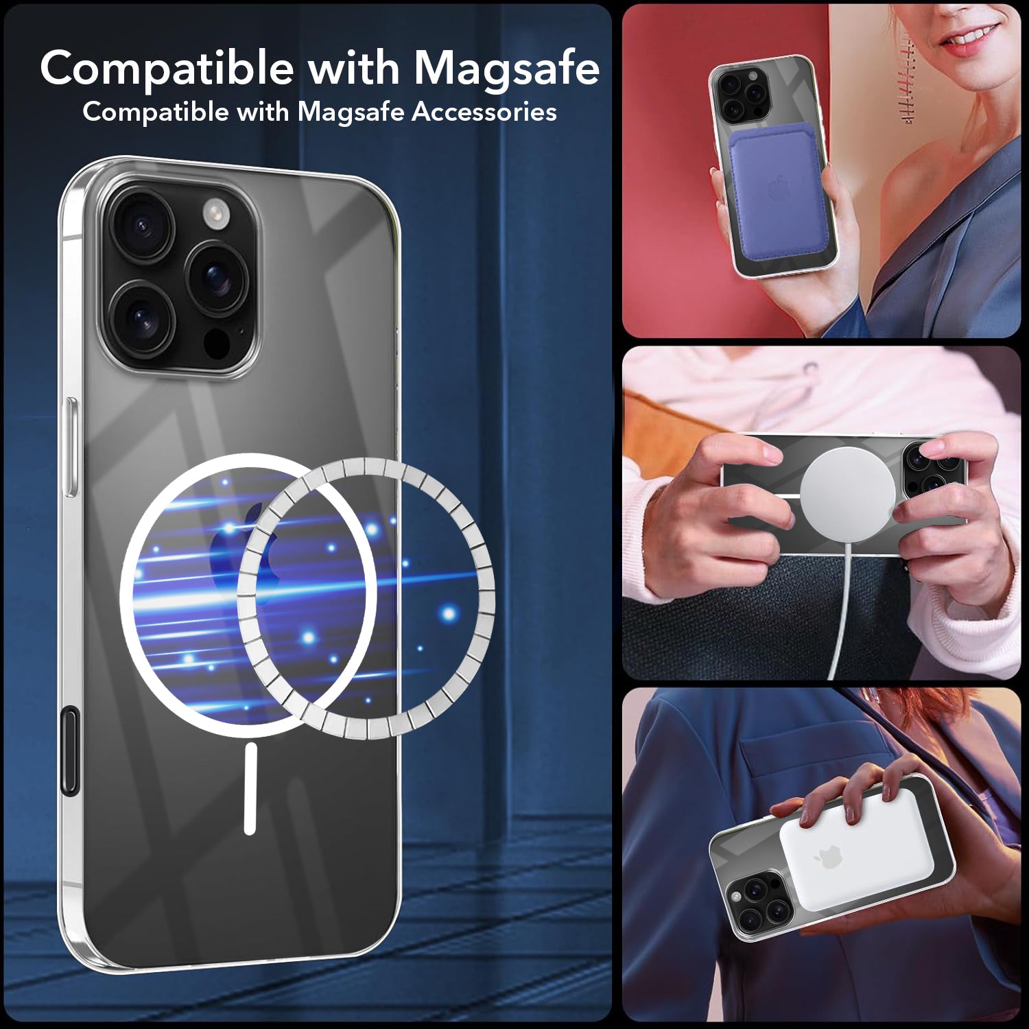 For Apple iPhone 16 Pro Max Back Cover Case (Crystal Clear Case | MagSafe Wireless Charging Support | Hard Anti Yellow | Camera Protection Bump)